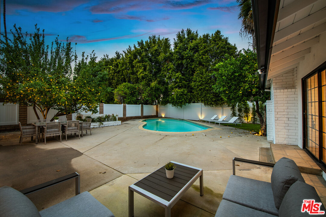 Welcome to 16517 Hartsook Street, a rare Encino offering where privacy, elegance, and modern luxury converge. Set behind gates on an expansive 9,790 sq ft lot, this tastefully redesigned single-story residence showcases 5 spacious bedrooms and 4 beautifully appointed bathrooms across 2,825 sq ft of thoughtfully designed living space. The expansive floor plan offers seamless flow, ideal for both everyday living and sophisticated entertaining. At the heart of the home is a gourmet chef's kitchen, designed to inspire culinary creativity with premium finishes and ample workspace. The formal dining room opens effortlessly to lush privacy hedges and the sparkling pool, creating a picturesque setting for memorable gatherings. An open-concept living area enhances the indoor-outdoor lifestyle, with direct access to the backyard retreat. Step outside to a serene, resort-style oasis featuring an inviting in-ground pool, expansive patio, built-in BBQ, and generous space for relaxation or entertainingall within a fully gated, exceptionally private setting. One of the largest lots in the neighborhood, this property is a true sanctuary while remaining conveniently located south of the 101 Freeway, close to premier shopping, dining, and top-rated schools. This is a rare opportunity to own a refined Encino home that perfectly balances luxury, comfort, and privacy.