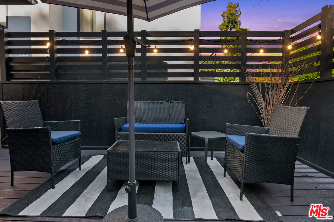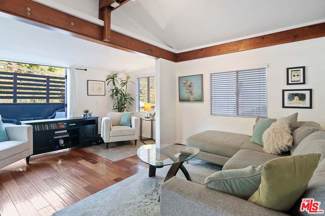 One-of-a-kind Beverly Glen boho-chic canyon retreat extensively redone by current owner and completed in 2023. Incredibly light and bright, 1 bed, 1.5 bath with an additional sleeping loft. High ceilings with skylights, new French doors open to wraparound decks for alfresco dining and cross canyon views. Brazilian Cherry natural engineered hardwood flooring throughout. Redesigned kitchen with new subway tile backsplash, skylight, storage and Bosch appliances. Redone baths with new tankless water heater, vanity, skylight, storage and mosaic tile flooring. Relocated washer-dryer from kitchen to guest bath. All new roof, new exterior siding in a distressed wood finish, new Trex stairway and decking with lights, new front gate and railings with motion sensor lighting. Separate designer "She-shed" with electrical, natural light and reclaimed stained glass windows at backyard with new retaining wall. One-car garage newly reinforced and cemented with storage plus one additional off-street space. Perfect investment property or owner's canyon mini-compound. The assessor lists this as a 2-bedroom, 1-bathroom property. This sale includes additional parcel APN# 4371-007-017 (Lots 56 and 57) to the rear for an additional 5,807 sq ft of land. New turf, security gates and fencing on hillside with steps for easy access. Minutes to UCLA, Westside, Beverly Glen Centre and the Valley. Warner Elementary.