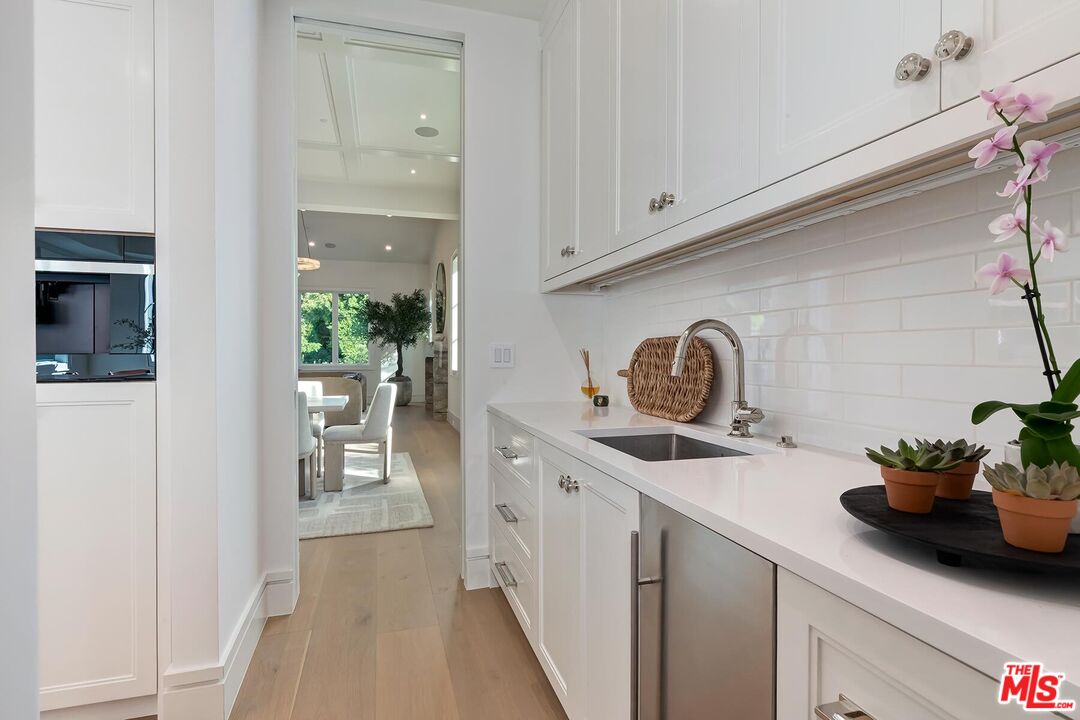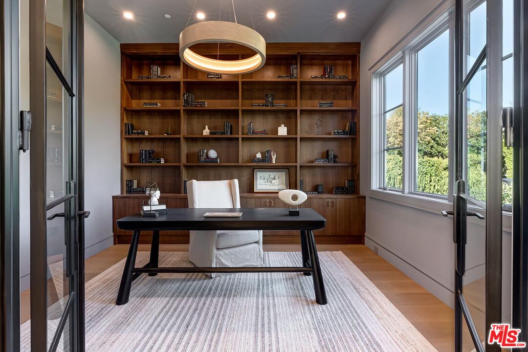 Brand new Hamptons-style traditional home located in the prestigious Upper Riviera, one of the Westside's most coveted addresses. Spanning approximately 7,850+/- sq. ft., this residence offers 6 bedrooms inclusive of a main floor guest suite with sitting room and kitchenette. The home is designed with the finest finishes, combining timeless elegance with modern conveniences. The entry leads to a floating staircase, and opens to a grand living room and formal dining room area. There is also an office/study with floor-to-ceiling walnut cabinetry. The gourmet kitchen features a full Subzero/Wolf suite of appliances, oversized island, butler's pantry, and a large walk-in pantry. The kitchen opens to a breakfast area and spacious family room with oak built-in cabinetry, and expansive La Cantina glass doors leading to the backyard. The home is finished with white oak floors throughout, a multiple-zone HVAC system, and full smart wiring adaptable to any owner's needs. There is a Lutron lighting system, security system with multiple cameras, and Waterworks fixtures throughout. The upper level has a primary bedroom with fireplace, balcony, and spa-like marble bathroom featuring dual vanities, makeup area, oversized dual shower with multiple sprayers, two separate water closets both with Toto Washlet toilets, and a spacious walk-in closet. Three additional en-suite bedrooms with walk-in closets complete this level. The lower level is designed for entertaining with a state-of-the-art theater, large great room with bar, wine room, gym, guest/maid's suite, and abundant storage. An elevator services all three floors. Mature landscaping ensures privacy while the salt-water pool, spa, and outdoor BBQ create a relaxing retreat. Additional amenities include a full three-car garage with two EV chargers. A rare offering in the Riviera, this special home blends traditional craftsmanship with contemporary luxury in one of Los Angeles' most exclusive neighborhoods.