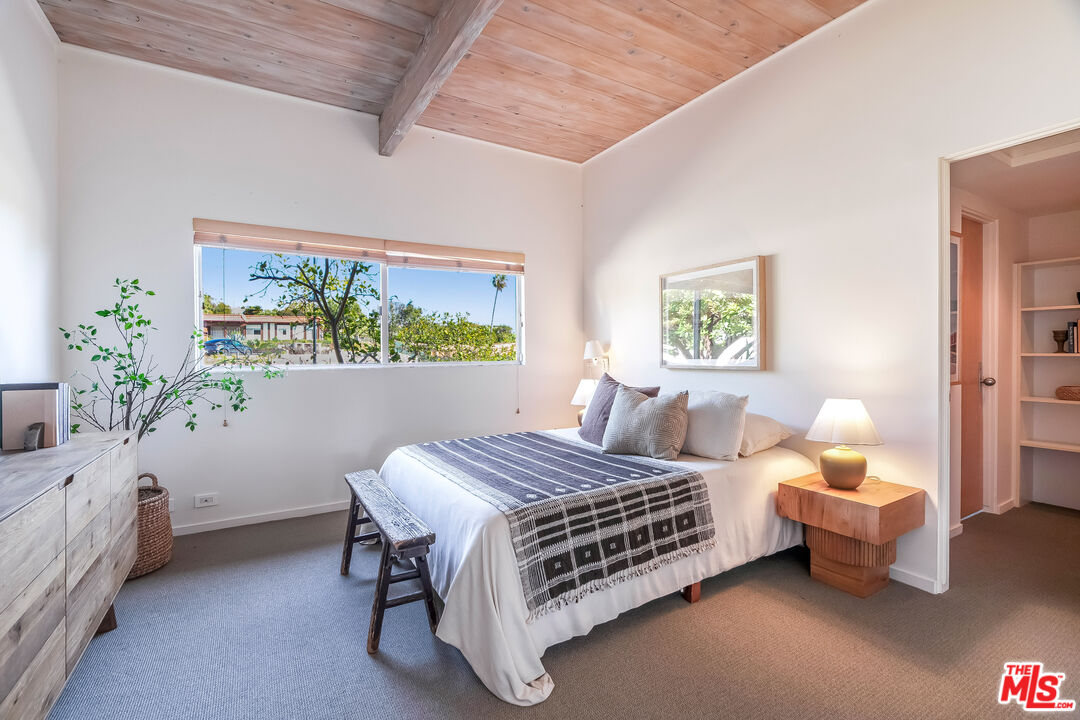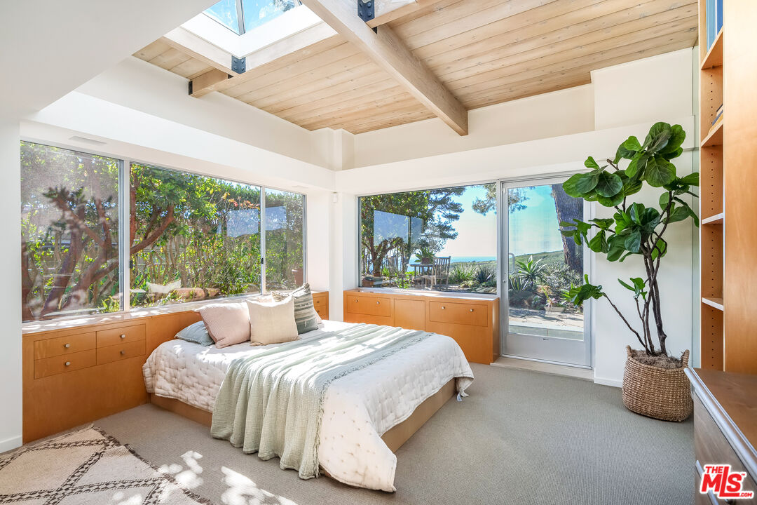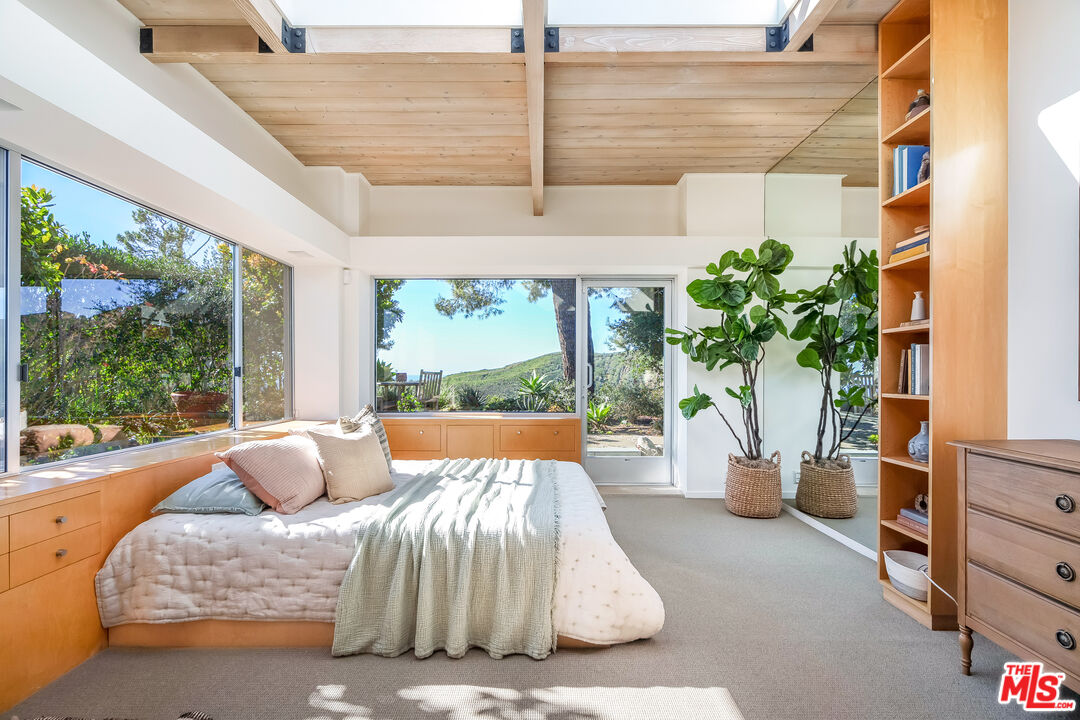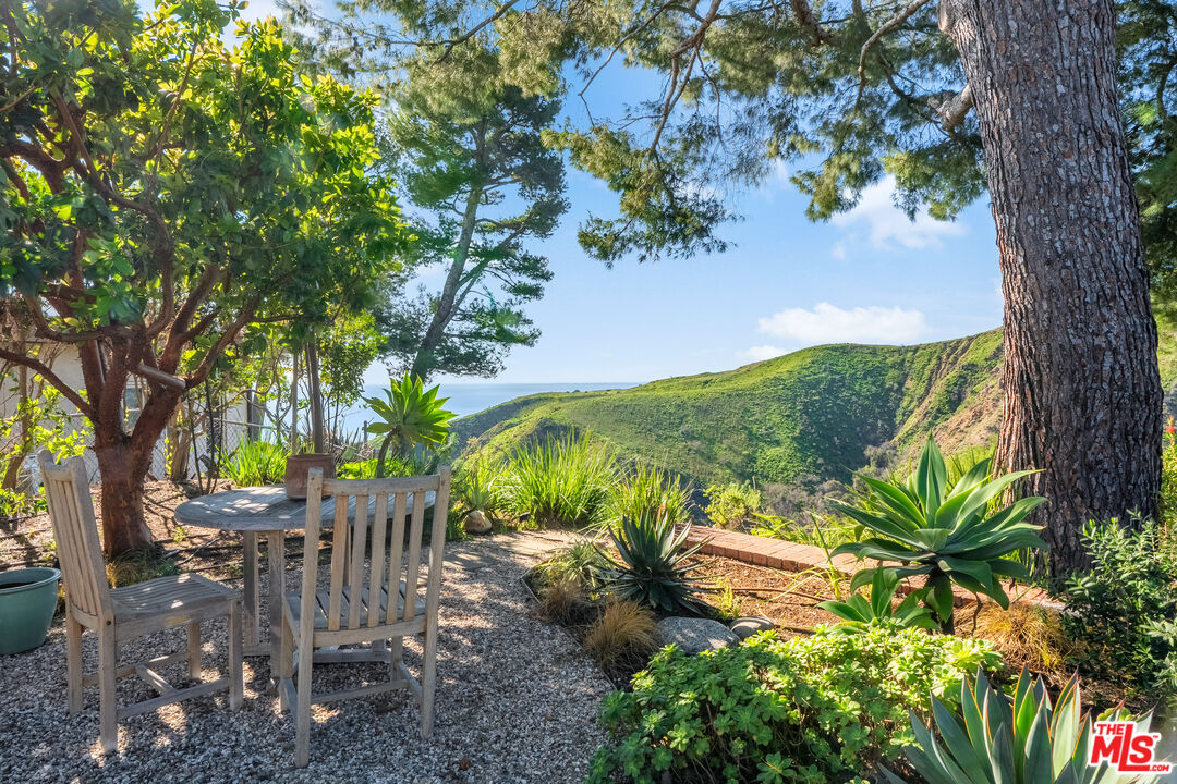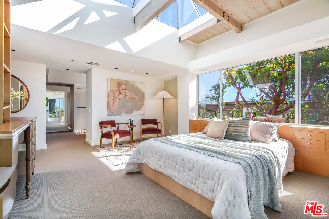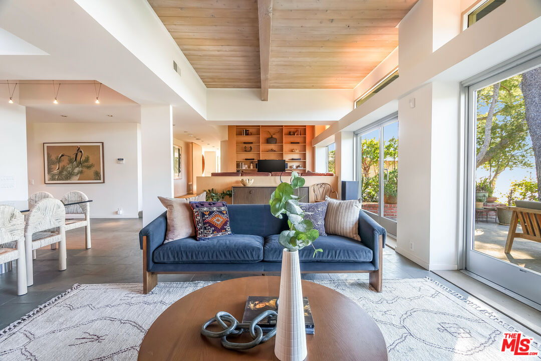 Stunning ocean views from this move-in ready single-story residence in the highly desirable Marquez Knolls. Incredible opportunity - the lowest priced home to come to market on Charmel in over 10 years. Mid-Century architectural features, walls of glass, luxury built-ins, skylights and unreal mountain and ocean views define this home. The spacious living room with large glass doors, clerestory windows, wood-beamed ceiling and chic fireplace opens to a dining area and beautiful kitchen on one side. On the other side, the living room opens to an inviting tv lounge that could be converted back to a third bedroom if necessary. The bedrooms are ensuite, both with remodeled bathrooms and ample closets, including a huge primary closet with space to also serve as a private city view office. The home is light and bright throughout and feels like a special retreat with stone patio and green garden. Easy parking in the area and a direct-access two-car garage. Great local public and private schools. Ideal for a full-time residence or gorgeous pied-a-terre.