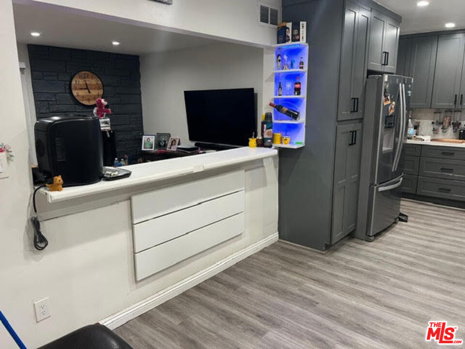 Welcome to this beautifully reimagined Granada Hills residence offering impressive curb appeal with lush landscaping, wrought-iron fencing, and classic brick pillars. Step through elegant double doors into a bright, open interior featuring modern laminate wood floors, recessed lighting, and crisp, white finishes. Enjoy effortless indoor-outdoor living with newer triple-pane windows and 10-ft glass sliders that fill the home with natural light. The inviting living room centers around a striking stone fireplace, perfect for relaxing or entertaining. The remodeled kitchen is a showstopper highlighted by sleek gray cabinetry, gleaming quartz countertops, and premium stainless steel appliances. Both bathrooms have been tastefully upgraded with designer finishes, while ceiling fans enhance comfort in all bedrooms. Unwind in your private backyard surrounded by mature orange and avocado trees. The new 15'x10' aluminum-covered patio offers the perfect space for gatherings or quiet evenings outdoors. Additional features include an updated electrical system, tankless water heater, and a dedicated laundry room with extra storage. Conveniently located within the highly sought-after Granada Hills Charter School District, this move-in ready home truly has it all!