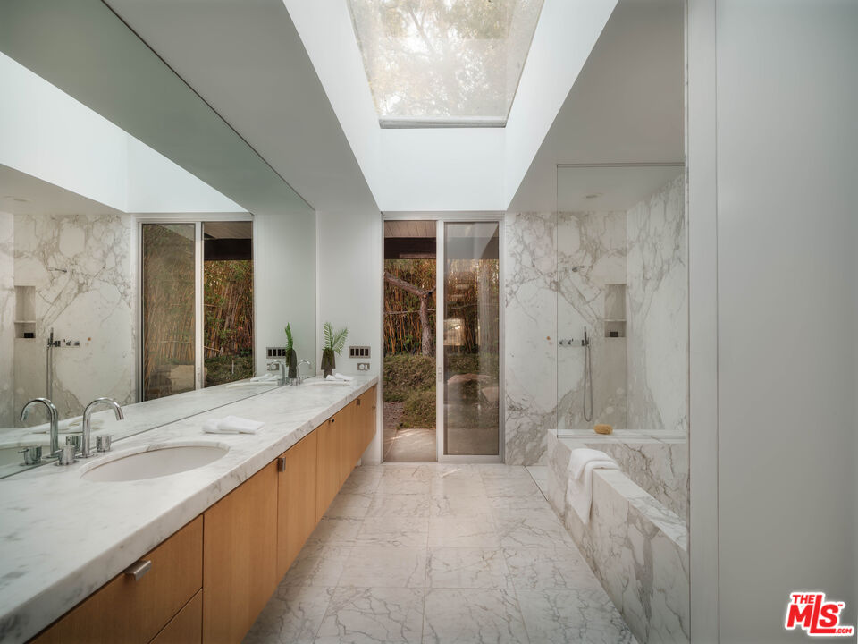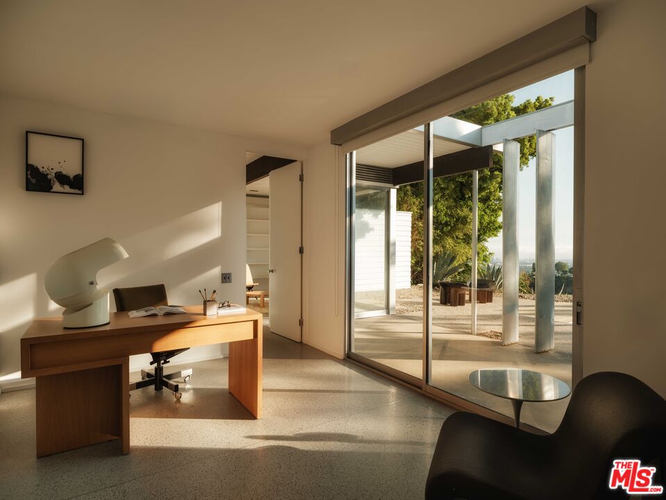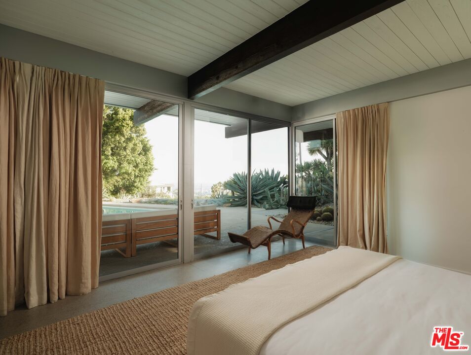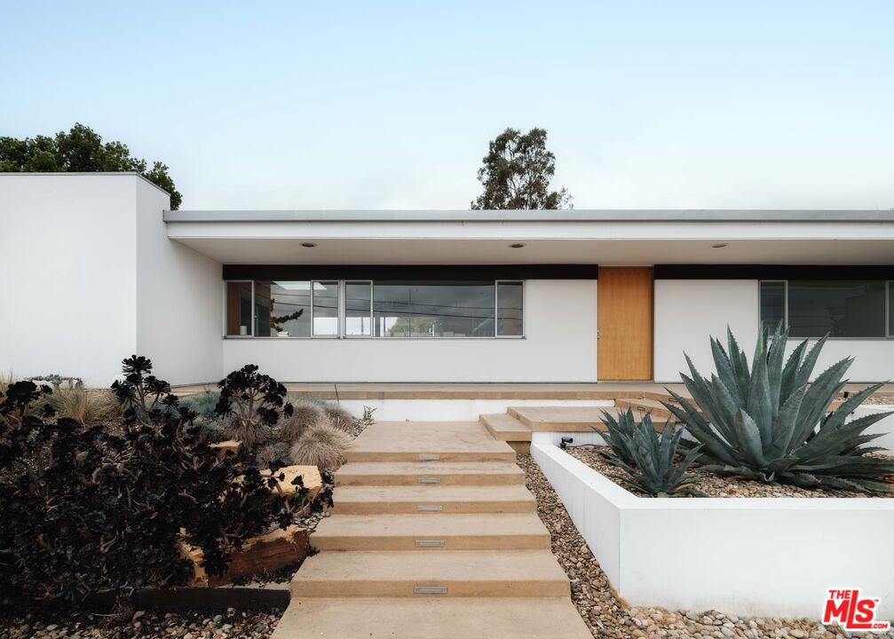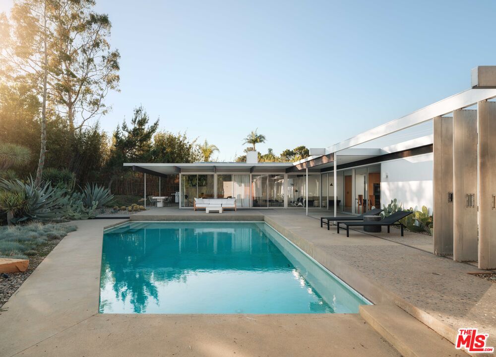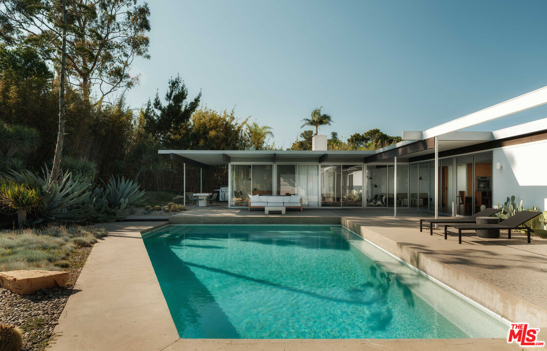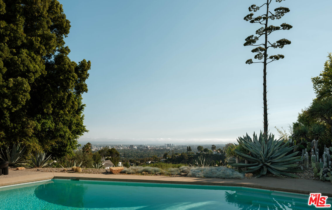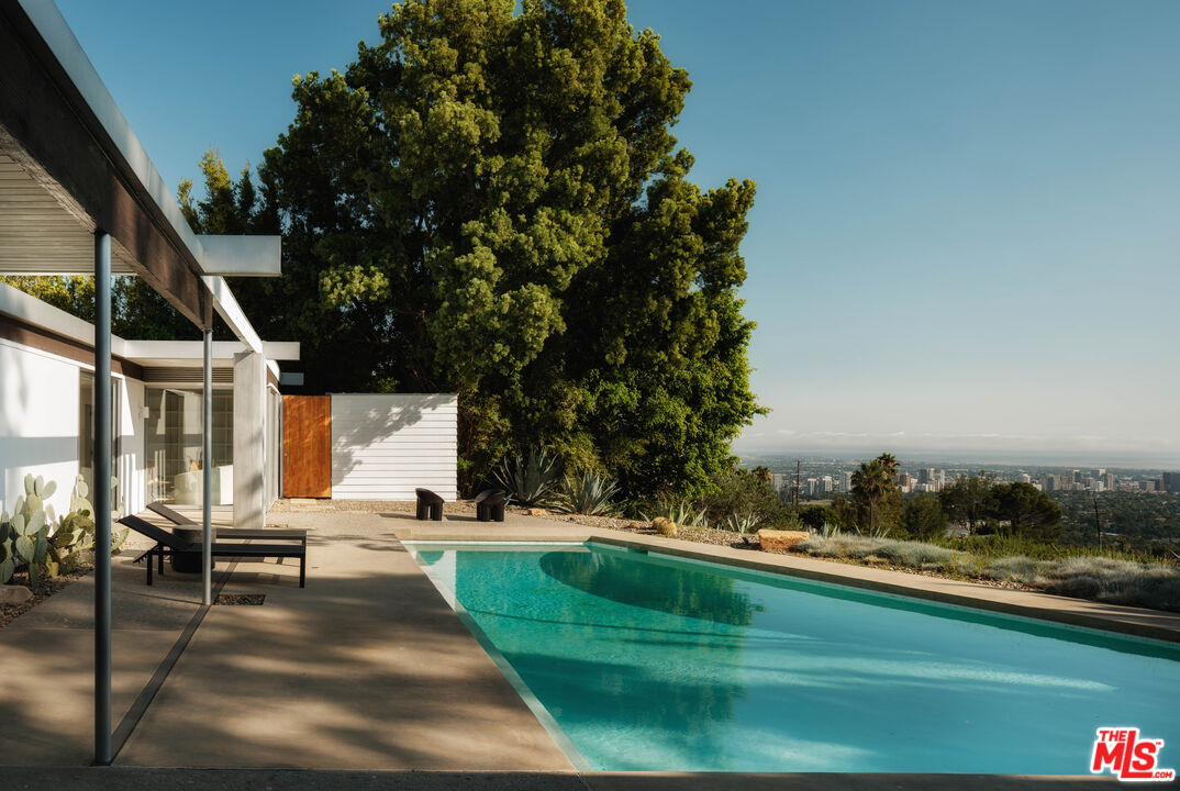 The "William H. Levit House" by Richard Neutra is a quintessential expression of California modernism, framing uninterrupted views from the Pacific Ocean to downtown Los Angeles and the San Gabriel Mountains. Originally completed in 1961, the residence has undergone a series of thoughtful enhancements, first by Marmol Radziner, then a comprehensive renovation by Ronnie Sassoon in 2012 honoring Neutra's original vision while introducing a restrained, contemporary sensibility. Concealed behind gates, the property offers a sense of seclusion and serenity, featuring an attached two-car garage, a sculptural cactus garden, and a pool with jetliner views. Inside, the architecture embraces clarity and function: a refined kitchen, four Carrara marble-clad bathrooms, and three bedrooms, including two generously proportioned suites with dual-sink baths. A rare opportunity to acquire a masterfully preserved Neutra residence, meticulously preserved and just moments from the heart of Beverly Hills.