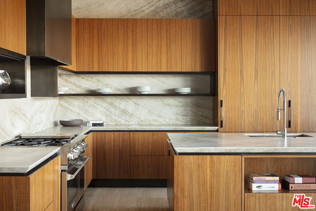 The Ultimate in California Lifestyle. Exceptional Modern Jewel in the heart of prime Pacific Palisades Riviera. Recently built by Tyler Construction using the highest quality materials, executed to a standard that is on par with world class museums. Wood, steel, stone come together in a warm and timeless design. Interiors by James Magni and architecture by Russell Shubin. Over 7,700sqft of impeccable detail. Elements include: floating walnut staircase, limestone throughout and slatted Afromosia wood. 5 bedrooms, 7 baths. Primary suite is a world apart. Screening room with full bar. Incredible Gourmet kitchen adjacent to vast great room walls of glass open to infinity edge pool and beyond. Detached gym/guest suite with en suite, kitchenette and separate entrance. A rare offering. Shown only to prequalified buyers.