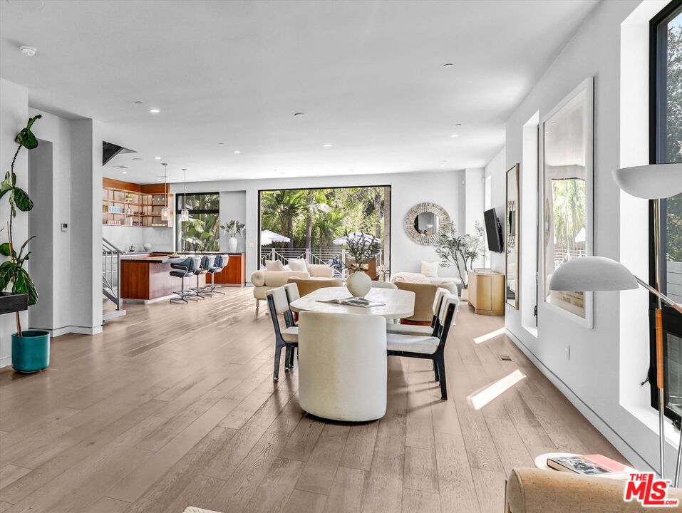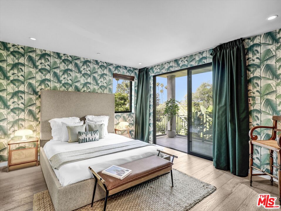 Tucked behind private gates, welcome to an oasis offering the quintessential Los Angeles lifestyle. Surrounded by lush greenery, the property exudes a sense of tranquility and seclusion while embracing a distinctly modern, indoor-outdoor design. The main living space is a stunning showcase of scale, light, and effortless flow. Wide-plank wood floors run throughout an expansive open-concept layout, anchored by a sophisticated yet inviting living room. Clean lines, curated finishes and oversized windows frame greenery from every angle, while recessed lighting adds a warm, modern ambiance. The designer kitchen blends seamlessly into the space, featuring sleek custom cabinetry, built-in appliances, a large island with seating and open shelving--perfect for entertaining. Expansive sliding glass doors fully retract, creating a seamless flow between interior living spaces and the resort-style backyard. Designed for both relaxation and entertaining, the outdoor area showcases a sparkling pool and jacuzzi framed by vibrant landscaping, evoking a timeless Beverly Hills Hotel-inspired ambiance. Adding versatility to the property is a detached studio overlooking the pool, perfect as a private gym, guest suite or creative workspace . The airy primary suite is a true retreat, complete with an oversized, custom walk-in closet and a luxurious spa-like bathroom featuring a soaking jacuzzi tub and oversized steam shower. Each bedroom is thoughtfully designed with its own unique style and theme, adding character and individuality throughout the home. A great opportunity to own a turnkey, modern tranquil enclave in one of LA's most desirable and centrally located pockets, with close proximity to Sunset Strip dining, shopping and nightlife.