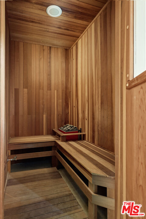 Completely reimagined for modern living by Maverick Design, this 1970s Ranch-style home in Encino blends timeless character with contemporary luxury on an expansive 17,022-square-foot lot just moments from vibrant Ventura Blvd. The single-story, 5,032-square-foot layout unfolds with effortless ease, grounded by wide-plank oak floors, designer lighting, oversized picture windows, and a refined palette of modern finishes. Enter through double doors to the dramatic entry foyer that sets the tone for the home's beautifully connected living spaces. The formal living room, accented by soaring vaulted ceilings and a built-in bar, invites stylish entertaining, while the family room's striking stone fireplace creates a relaxed gathering place that opens directly to the gourmet kitchen. Designed as the heart of the home, the kitchen is appointed with Perla Venata leathered stone countertops and backsplash, premium appliances including an oversized double-oven range, and a generous walk-in pantry. Nearby, the formal dining room provides an elegant setting for dinner parties, and an expansive recreation room, with an in-home wooden sauna and direct access to the backyard, offers a versatile space to unwind. Four spacious bedrooms are thoughtfully positioned, including a serene primary suite with dual walk-in closets, a cozy sitting area, and a stone-clad ensuite featuring a dual vanity and a glass-enclosed wet room with a shower and soaking tub. A dedicated office, gym, laundry room, and attached three-car garage meet the demands of modern living with ease. Outside, discover a true resort-style sanctuary. Multiple outdoor lounge areas wrap around a sparkling pool and spa, complemented by a detached pool bar and bathroom, mature trees, a manicured lawn, and a private sport court, creating the ultimate backdrop for both intimate gatherings and large-scale entertaining. Set in a prime Encino neighborhood near renowned restaurants, top-rated schools, parks, and the El Caballero Country Club, this meticulously renovated home offers a rare blend of sophistication, comfort, and California living at its finest.
