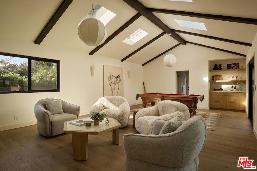 - Interior Features: High Ceilings (9 Feet+), Beamed Ceiling(s), Cathedral-Vaulted Ceilings, Built-Ins, Bar, Recessed Lighting, Turnkey, Trey Ceiling(s)