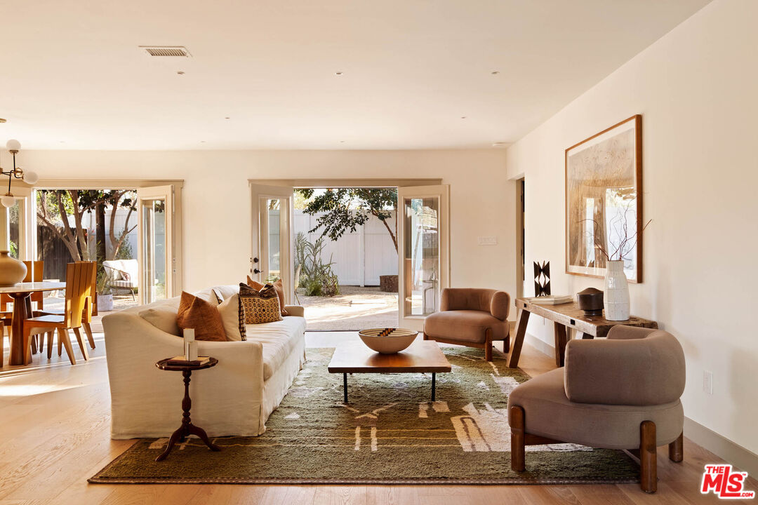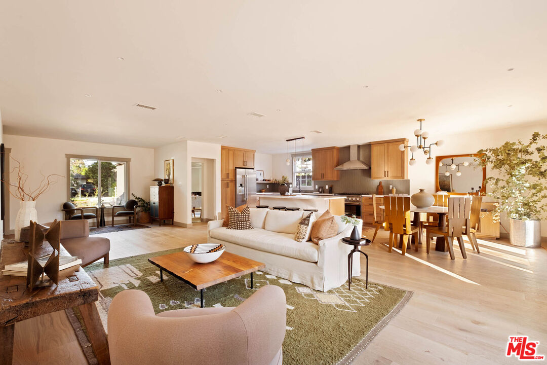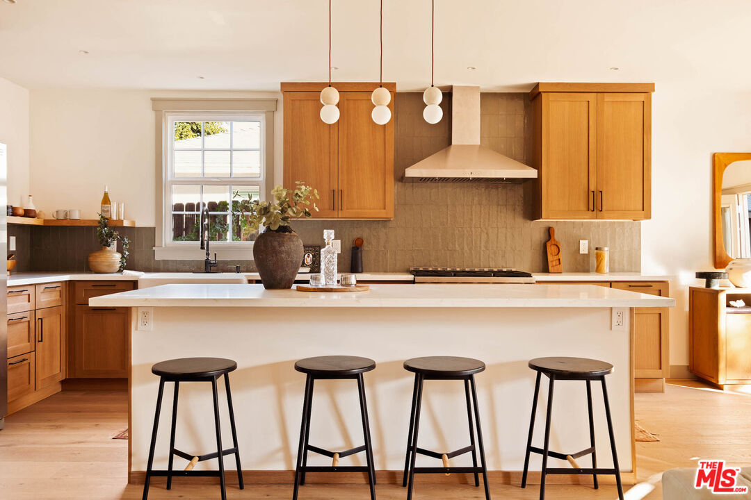 Modern Outback Ranch in the heart of Lake Balboa. A thoughtful, comprehensive renovation that starts with smart functionality and layers on warmth, character, and design. This three-bedroom home includes a bonus media space and two full baths, anchored by expansive open living areas with high ceilings, smooth-coat walls, gallery-style recessed lighting, and French doors that open to the deck and backyard. Natural light pours in, creating an effortless indoor/outdoor flow that defines Southern California living. The entertainer's kitchen is a standout, featuring a large storage-rich island, a 36" industrial gas range with statement hood, custom pale oak cabinetry, open shelving, and beautiful rustic tile that brings texture and depth. The primary retreat impresses in both scale and comfort, with vaulted beamed ceilings, a decorative fireplace, and a spa-like en suite bath offering a dual vanity and oversized walk-in shower. The suite also opens directly to the rear entertaining areas, creating a rare wraparound flow for the neighborhood and price point. The converted garage (not included in the square footage) provides flexible additional living space ideal for a home office, media room, or creative studio. Outback-inspired landscape completes the experience, blending drought-tolerant Australian natives, olive trees, and a clean modern look. A grassy yard area offers space for play and pets. Lake Balboa's growing popularity comes as no surprise, with its generous lot sizes, quiet streets, proximity to major parks and recreation, and easy access to the Westside making it a neighborhood well-positioned for both lifestyle and long-term growth.