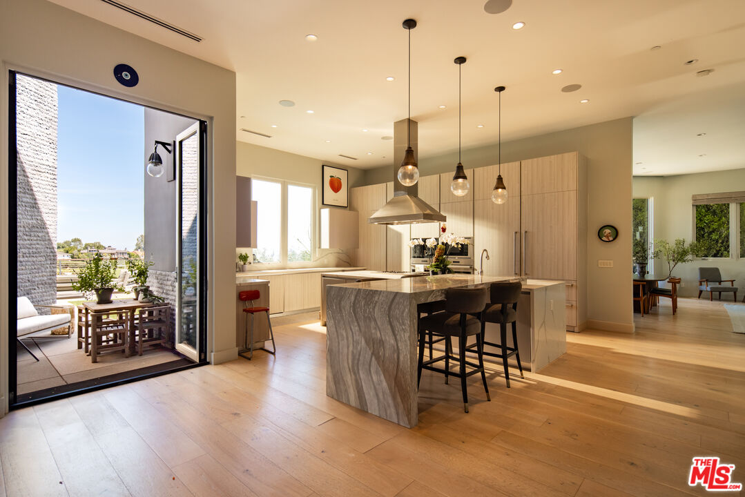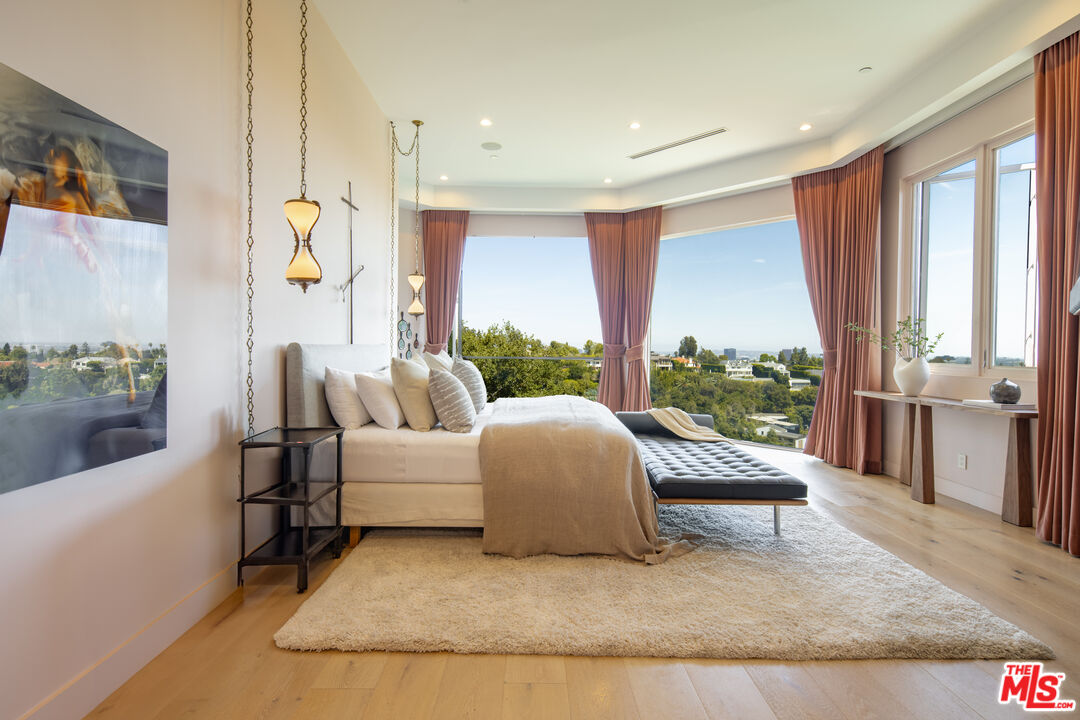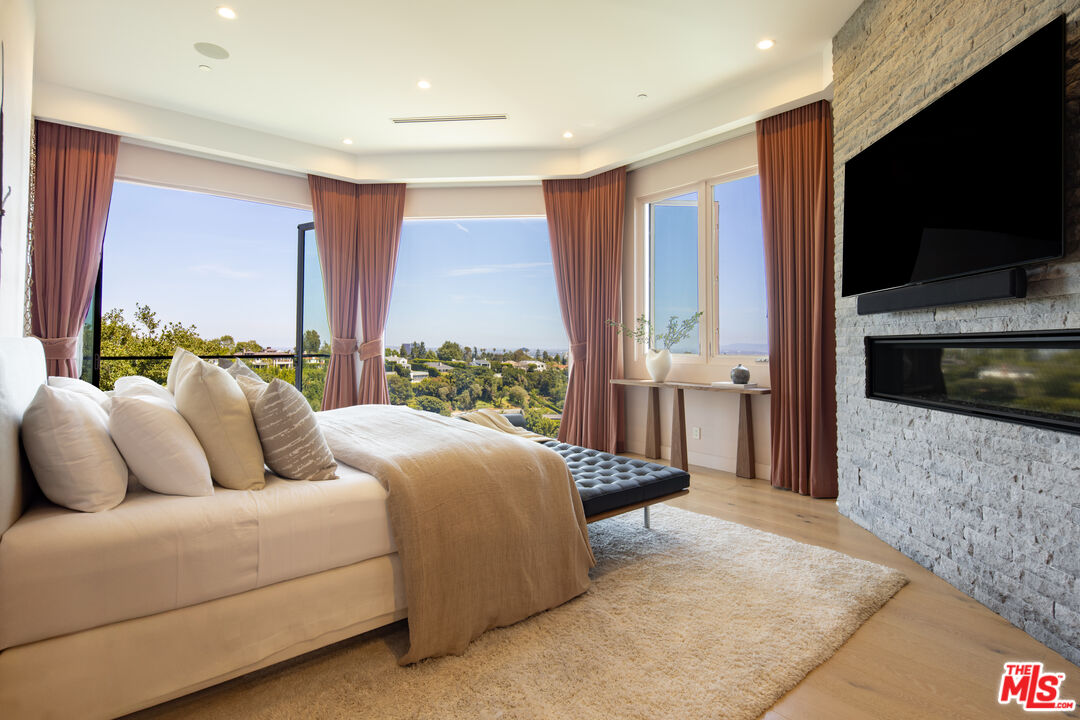 Positioned along lower Westridge Rd just moments away from Sunset Boulevard, this immaculate modern view home offers timeless design, exceptional privacy, rare 8+ car parking, and breathtaking vistas of the Los Angeles coastline and Catalina Island. Upon entry, a striking double-height foyer with a show-stopping chandelier leads to a sophisticated bar area, complete with seating, a wine cooler, and a dedicated lounge framed by elegant glass doors and panoramic views. The formal living room, serves as the heart of the home, boasting soaring 12-foot ceilings, expansive windows that frame captivating views, and a seamless indoor-outdoor flow, perfectly designed for both relaxed living and elevated entertaining. The gourmet kitchen, equipped with an oversized L-shaped island, top-of-the-line Wolf appliances, and a sleek waterfall breakfast bar, flows effortlessly into the expansive outdoor patiooffering panoramic ocean and city views, alfresco dining, and ample space for entertaining. Upstairs, the luxurious primary suite awaits, showcasing captivating ocean views and impeccable finishes crafted for unparalleled comfort and style. The primary is complete with a fireplace, spacious spa-inspired bath with dual vanities, and an expansive boutique-style walk-in closet. This property's exceptional design is complimented by its sought-after location in the heart of Brentwood, just moments to the Westside's top-rated school districts, dining, shopping, and entertainment. This home is a rare opportunity to experience the epitome of Westside living, one you won't want to miss.