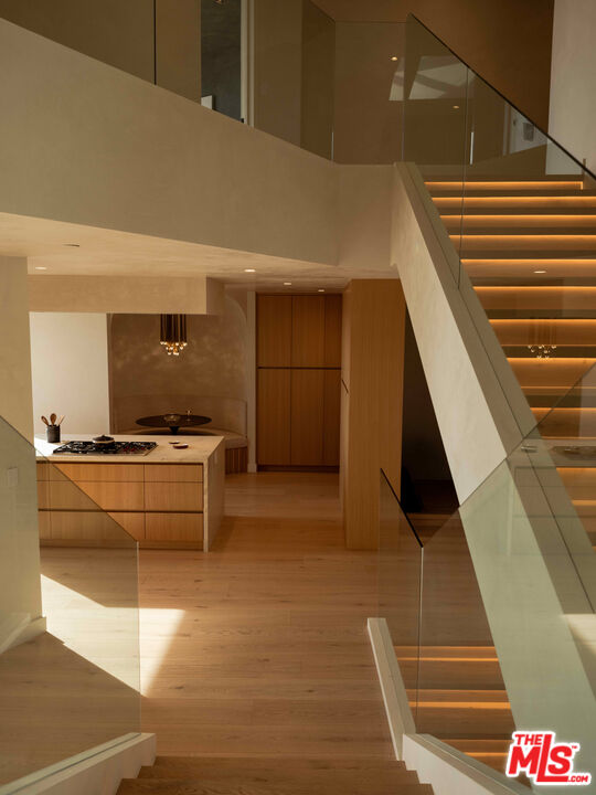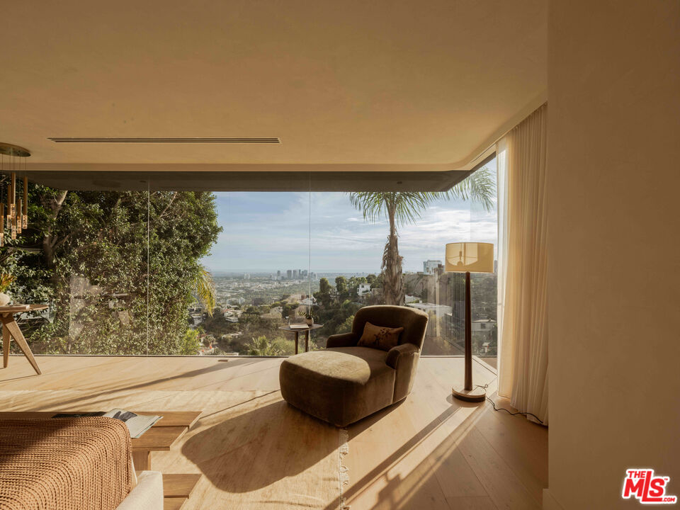 Perched above the Sunset Strip within one of the area's only gated and secure enclaves, 1778 Viewmont stands as the crown jewel of this private, controlled-access community. Positioned at the end of a quiet cul-de-sac, this approximately 6,300-square-foot modern masterpiece is the largest of only six residences behind the gates, offering a rare level of discretion and security alongside unobstructed jetliner views stretching from the city skyline to the Pacific Ocean. Recently reimagined from the ground up, the residence showcases a refined contemporary aesthetic defined by clean lines, warm textures, and sophisticated materials. Inside, expansive open living spaces are framed by floor-to-ceiling glass, flooding the home with natural light while maintaining a true sense of seclusion an ideal retreat from the city below. White oak floors run throughout, complemented by smooth plaster walls, custom millwork, and designer accent lighting that creates a gallery-like ambiance day and night. The chef's kitchen is anchored by travertine stone countertops, integrated Wolf and Sub-Zero appliances, and sleek European cabinetry perfectly suited for both everyday living and large-scale entertaining. Seamless indoor-outdoor living connects the main living areas to an expansive terrace featuring a zero-edge pool and spa, lush landscaping, built-in grill, and grassy yard, all oriented toward the panoramic skyline while remaining thoughtfully shielded within this gated setting. Four ensuite bedrooms, including a serene primary suite with fireplace, oversized walk-in closet, and spa-like bath, provide exceptional comfort and privacy. Additional amenities include a state-of-the-art home theater, world-class gym, and spacious den and bar area that open directly to the pool.Offering a rare combination of privacy, security, and exceptional design, 1778 Viewmont Dr is tailored for those who value discretion without compromise. Securely tucked behind gates, yet just moments from the world-class dining, shopping, and entertainment of the Sunset Strip and Beverly Hills.