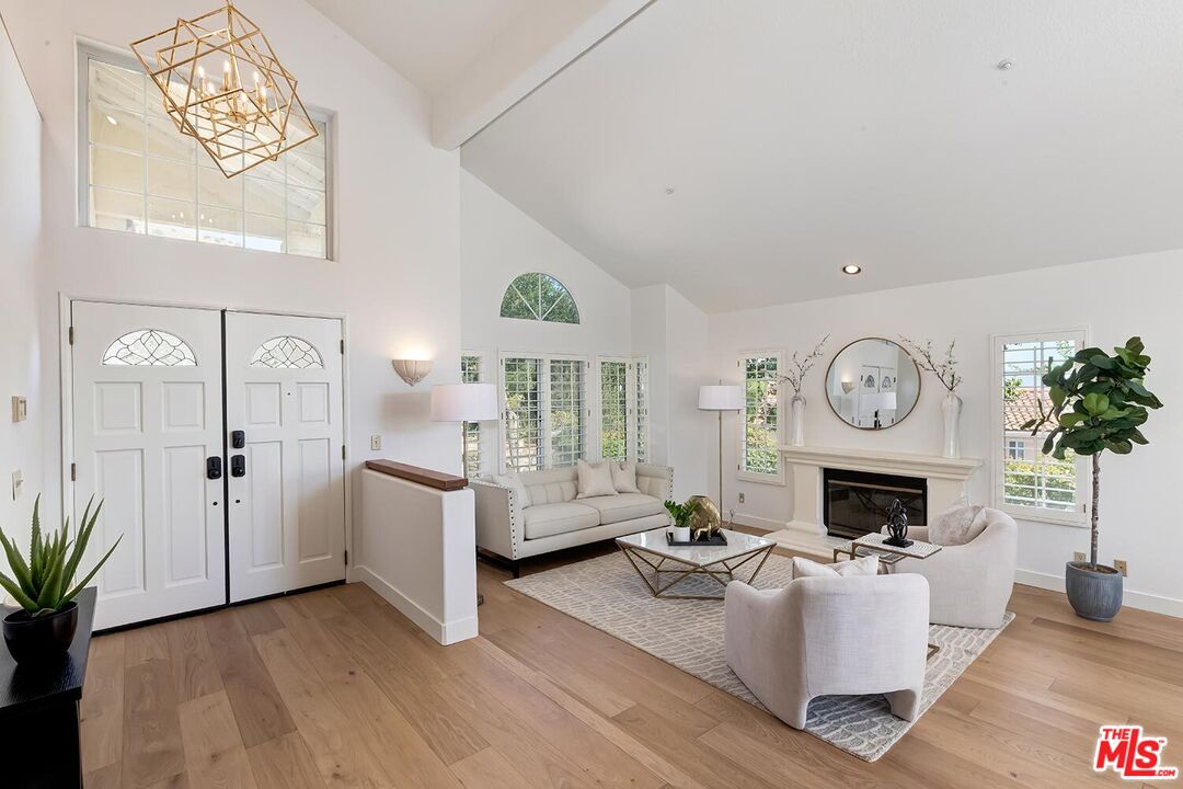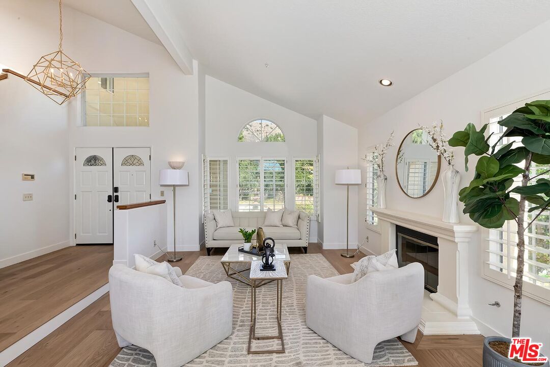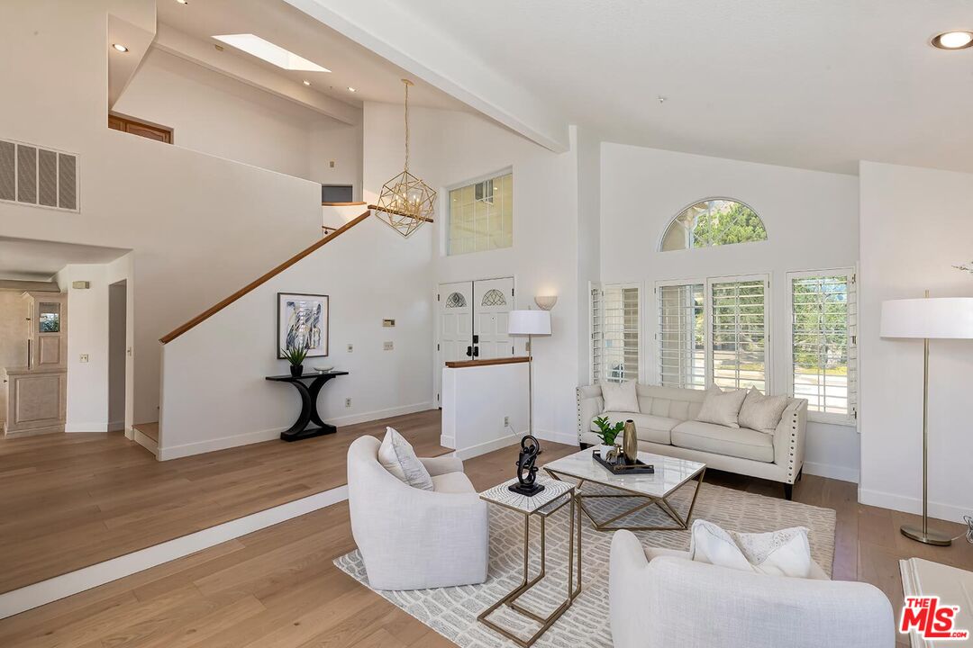 Come for the view. Stay for the quiet. Poised on a gated 0.72-acre knoll on a cul-de-sac in coveted Canyon Crest, this light-filled residence captures sweeping panoramas of the San Fernando Valley. Inside, 2,669 sq ft of freshly painted living space showcases brand-new French oak wood floors, a dramatic skylit foyer, and soaring vaulted ceilings in both the living room and the primary suite. Plantation-shuttered windows and French doors bathe the formal living and dining areas in natural light and invite seamless flow to the patio. The spacious kitchen is ready for gatherings with newer stainless-steel appliances, a center-island cooktop, and an airy breakfast nook, all open to the family room - complete with classic fireplace, built-in entertainment center, and wet bar. Up the curved staircase, double doors reveal a retreat-style primary suite where sunrise vistas greet you each morning. The ensuite bath offers large walk-in closet, dual sinks, a glass shower, and a soaking tub framed by treetop, mountain, and city-light views. Two additional bedrooms and full bath are upstairs, one bedroom and bath down, providing flexible space for family, guests, or home office needs. Outdoors, you can stroll the expansive 31,218 sq ft lot. through serene, nature-inspired settings as well as patios overlooking the valley - offering room for al-fresco dining, gardening, a future pool, or maybe a horse. A three-car garage includes a sound-insulated, climate-controlled studio ideal for music production, media editing, or a quiet office. All of this is nestled north of Rinaldi and west of Balboa, moments from top schools, horse trails, hiking trails, and freeway access. Located just one block from the private Canyon Crest area and only minutes from O'Melveny and Bee Canyon Parks, the home is ideally situated for outdoor enthusiasts. Rarely does a property marry privacy, scale, and views like this - come experience Lone Oak Drive for yourself.