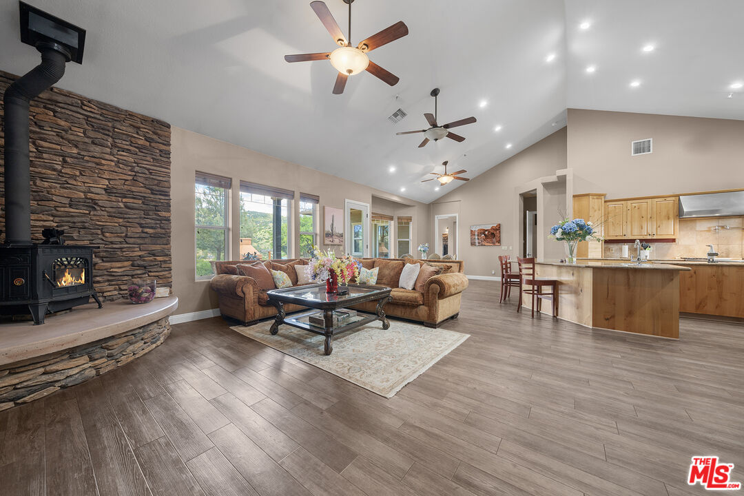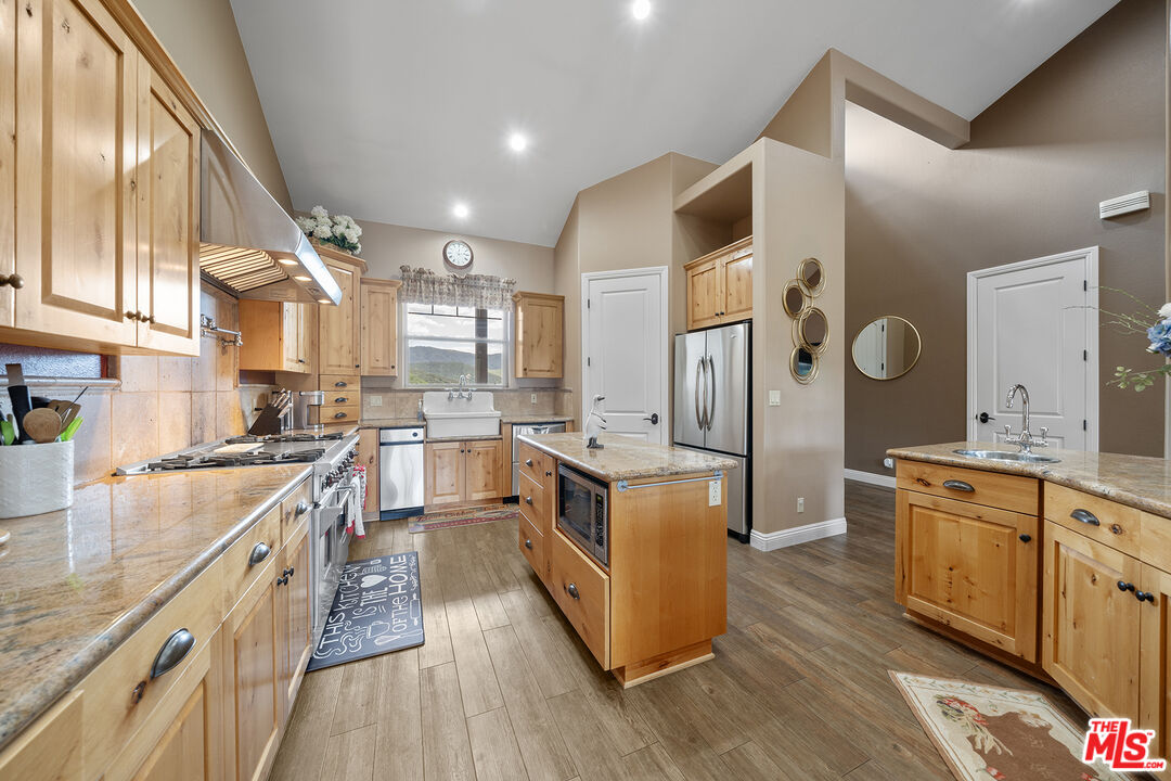Tranquil Retreat with Modern Comfort in Lake Hughes. Nestled in the peaceful natural surroundings of Lake Hughes, this beautifully maintained custom home offers an exceptional blend of privacy, space, and comfort. Situated on an expansive lot of approximately 16,862 sq ft (approx. 1 acre total), the property captures scenic mountain views and a serene setting ideal for both full-time living and weekend retreats.This thoughtfully designed 4-bedroom, 3-bathroom residence offers approximately 2,118 square feet of living space, featuring an open-concept floor plan, vaulted ceilings, and abundant natural light throughout. A charming wrap-around porch enhances the home's character, while the seamless layout provides both comfort and functionality for everyday living and entertaining.The spacious living area is centered around a stone fireplace, creating a warm and inviting atmosphere. The custom kitchen is well-appointed with knotty alder wood cabinetry, stainless steel appliances, granite countertops, a center island, breakfast bar, walk-in pantry, pot filler, and a stone travertine backsplash.The primary suite offers a private retreat with a fireplace, walk-in closet, and an en-suite bathroom featuring a clawfoot tub and separate stone shower. Additional features include a secondary bathroom with a jetted tub, a 2-car attached garage with workspace, fiber cement siding, water filtration system, tankless water heater, and fire sprinkler system.Outdoor spaces provide an opportunity to enjoy fresh air, natural surroundings, and nearby trails, while still being conveniently located near Santa Clarita and the greater Los Angeles area.Whether you are seeking a primary residence, a second home, or an investment opportunity, this property offers a unique combination of lifestyle and value.Move-in ready and a great opportunity to own in one of Southern California's scenic communities.