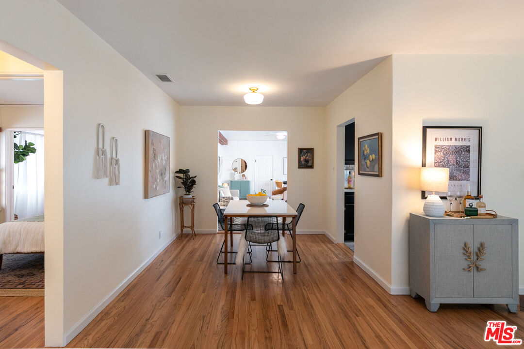 A true gem! Not to be missed! Surprisingly spacious and comfortable, and a perfect blend of open living space and indoor-outdoor flow...Nestled on a picturesque, tree-lined street, this spacious 4-bedroom, 2.5-bath residence offers a harmonious blend of comfort, style, and modern convenience. Thoughtfully designed indoor spaces flow seamlessly into the outdoors, creating an ideal setting for both everyday living and entertaining. Step inside to discover a generous living room and dining area with hardwood floors and fireplace. The open concept space leads to a bright family room with a high-pitched ceiling and giant slider doors to an inviting outdoor patio, lush gardens and SoCal living at its best. The primary suite is a serene retreat with its own en-suite bath and walk-in closet, while two well-sized bedrooms are at the front of the home and share the hall bathroom. A versatile fourth bedroom with its own half bath and laundry area provides flexibility for guests, an office, or creative use. A Garden Oasis: The exterior grounds are a true sanctuary. Stroll along meandering paths framed by lemon, persimmon, and pomegranate trees, complemented by grapevines and drought-tolerant landscaping. Discover three private patios, each offering its own unique ambiance for dining, entertaining, or simply unwinding. Modern Comforts include: Remodeled kitchen with dedicated storage space, Double-pane windows and dual HVAC system for efficiency, energy-saving 30-year cool roof, copper plumbing, updated electrical panel, hardwired Level 2 EV charger for eco-friendly living, single-car garage plus tandem driveway parking. This home offers not just a place to live, but a lifestyle blending modern amenities, timeless charm, and the beauty of nature. Fantastic Burbank schools.