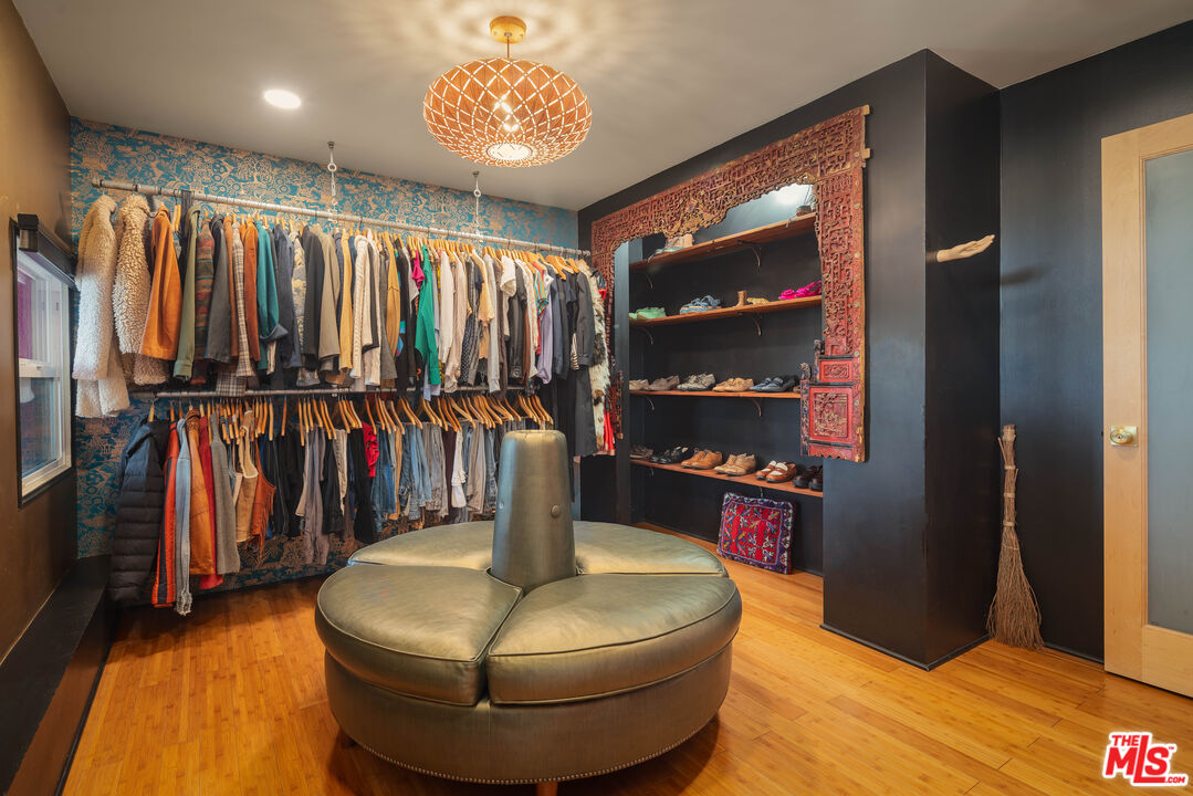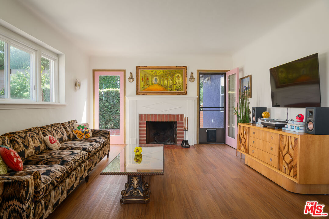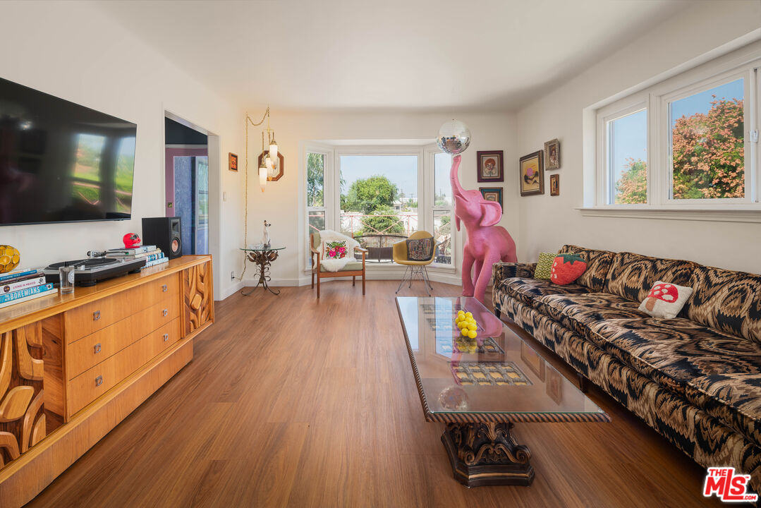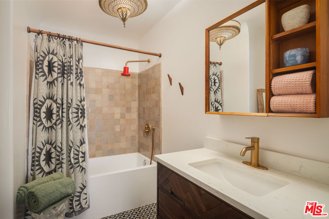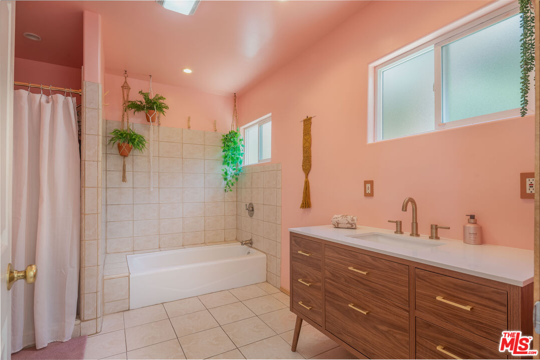 Hidden at the end of a quiet Mid-City cul-de-sac, 1812 S. Dunsmuir feels like an artist's retreat in the middle of Los Angeles. This cobalt-blue sanctuary offers 3 bedrooms, 4 baths, and over 2,300 square feet of effortlessly eclectic living where creativity, comfort, and design converge. Natural light fills the main level's airy living room, complete with high ceilings, fireplace, and city views that stretch into the distance. The eclectic dining room radiates sophistication, flowing into a remodeled kitchen with stainless steel cabinetry, new Smeg 5 burner Range with modern appliances and thoughtful details showcasing a love for cooking. Completing the upper floor are two en-suite bedrooms each framed with Shoji closet doors which provide serene symmetry, joined by a moody powder room with vintage inspired clawfoot tub and beautiful art deco wall paper. Downstairs, the expansive primary suite feels like your own hideaway, bold, bohemian, and tranquil with Moroccan-inspired textures and direct access from the garage. Outdoors, the property truly shines: dine beneath string lights on the private patio, unwind in the new jacuzzi under the stars, harvest herbs from your garden, or work in the most charming bonus office/workout space you'll ever see. And yes, on a clear night, you can even spot the Hollywood sign. Complete with new roof, flooring, jacuzzi, tankless water heater, HVAC and more, this home offers both style and substance. Located minutes from Culver City, the Westside, DTLA, and the beach, this home delivers the Eastside vibe you love, right in the heart of LA.