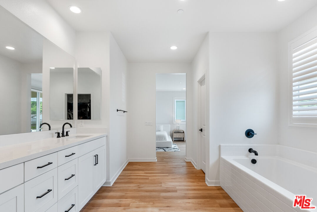 Welcome to 18130 Radiance Ln, a stunning 2024-built residence by Tri Pointe Homes, located within the highly desirable Skyline community in Santa Clarita. This thoughtfully upgraded home offers 5 bedrooms plus a dedicated office, 3 bathrooms, and 3,263 square feet of contemporary living space on a 5,121 SF private, fully fenced lot blending modern luxury with everyday functionality. The open-concept floor plan is enhanced by upgraded luxury vinyl flooring, upgraded appliances, a double oven, alkaline water, and a whole-home surround sound system, creating an ideal environment for both entertaining and comfortable daily living. The home also features fully paid-off solar panels and a dedicated EV charger, offering energy efficiency and long-term savings. The primary suite is a true retreat, featuring a private patio, a spacious walk-in closet, and a spa-inspired bathroom designed for relaxation and renewal. A dedicated home office provides flexibility for remote work, study, or creative use, while the bedroom layout accommodates family, guests, or multi-generational living. The private, fenced backyard offers a peaceful outdoor setting perfect for entertaining, relaxing, or personalization. Residents of the Skyline community enjoy access to resort-style amenities, including a clubhouse, pool and spa, parks, walking trails, and beautifully designed common areas. The community is also adding a new elementary school, further enhancing long-term convenience and neighborhood appeal. Ideally located near shopping, dining, and commuter routes, this home delivers new construction quality, premium upgrades, energy-efficient features, and future-focused community living.