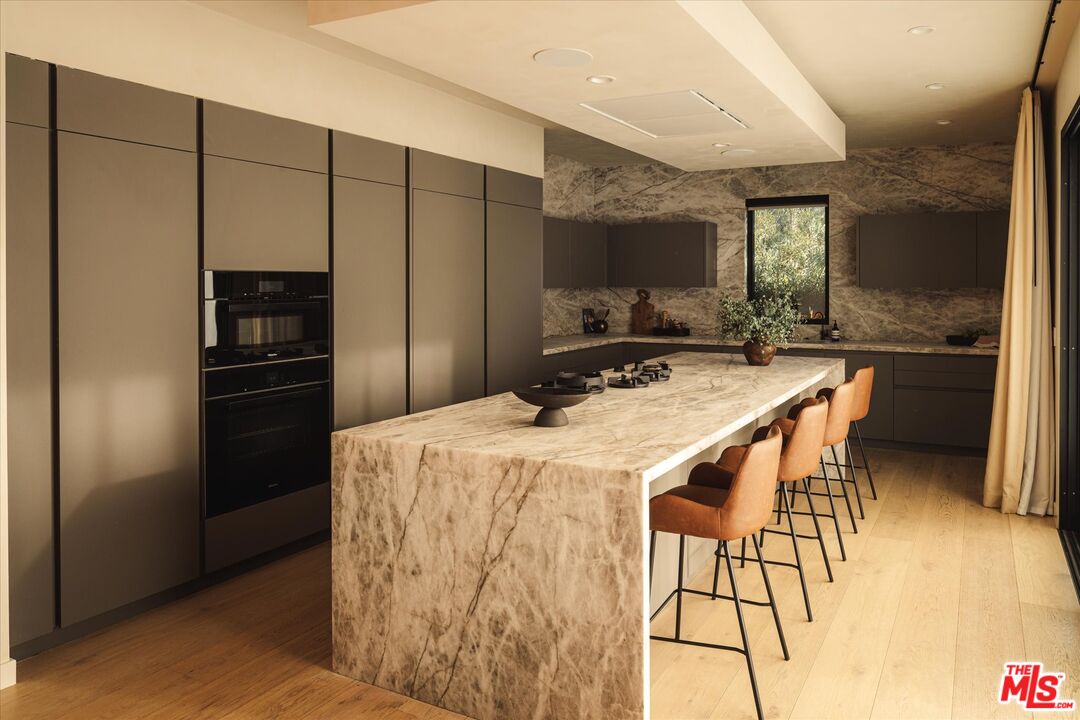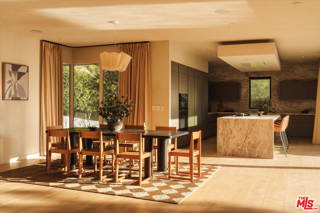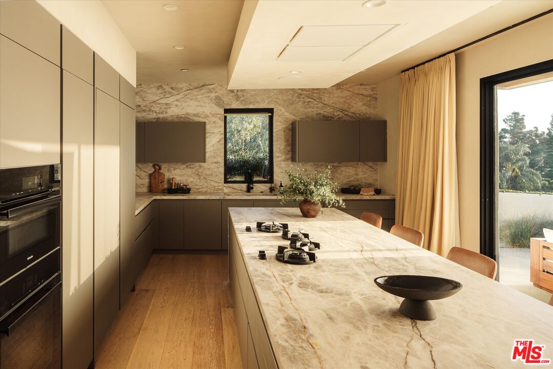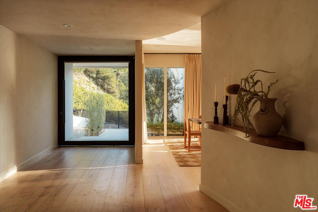 Privately positioned at the crest of the prestigious Rising Glen enclave, this refined hillside sanctuary commands sweeping views over Sunset Plaza, the cityscape, and the Pacific Ocean beyond, offering a rare sense of tranquility high above it all. Framed by lush natural surroundings and set well above the street, the residence enjoys a peaceful, elevated vantage point that feels worlds away while remaining moments from the iconic Sunset Strip. The home has been thoughtfully reimagined with a curated eye for timeless design, blending elevated finishes with warm, organic materials throughout. Sun-filled interiors are anchored by a bespoke chef's kitchen featuring custom cabinetry, integrated appliances, and a sculptural stone island that seamlessly connects to the living and dining spaces. Skylights and expansive walls of glass invite natural light from every angle, enhancing the home's open, airy atmosphere and drawing the outdoors in. Floor-to-ceiling sliding doors open to an expansive terrace designed for effortless indoor-outdoor living. A resort-style pool and multiple lounge areas create a private outdoor oasis ideal for entertaining or quiet moments of retreat, all set against a dramatic hillside, city, and ocean backdrop. Thoughtfully composed and exceptionally serene, 1820 Rising Glen offers an elevated living experience in one of 90069's most coveted hilltop settings overlooking Sunset Plaza.