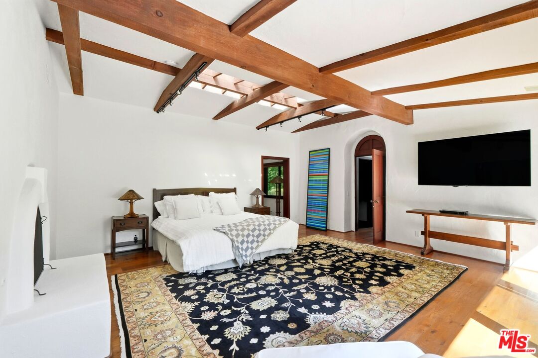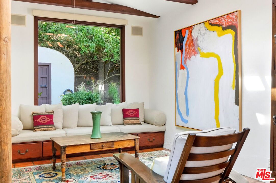 Welcome to a timeless celebrity owned retreat in Sullivan Canyon. Designed by Cliff May and reimagined by architect Peter Choate AIA, this single-story residence captures the essence of California living where light, nature, and architecture coexist in perfect harmony. With three bedrooms, a dedicated office or den, and three bathrooms, the home unfolds with effortless grace. Soaring ceilings, wide-plank wood floors, and thoughtfully placed skylights fill the interiors with natural light, dissolving the boundaries between indoors and out. Every room opens to lush gardens that envelop the property in privacy and tranquility. The kitchen and dining area flow into a spacious family room framed by Fleetwood doors, revealing a secluded pool and alfresco dining terrace, an ideal setting for relaxed gatherings. The private wing includes a sunlit office and a tranquil primary suite, offering a perfect work-from-home sanctuary. Zoned as a horse property and just moments from the Sullivan Canyon Community Equestrian Center, this enchanting estate also features a hidden wine cave and the unmistakable serenity of country living.