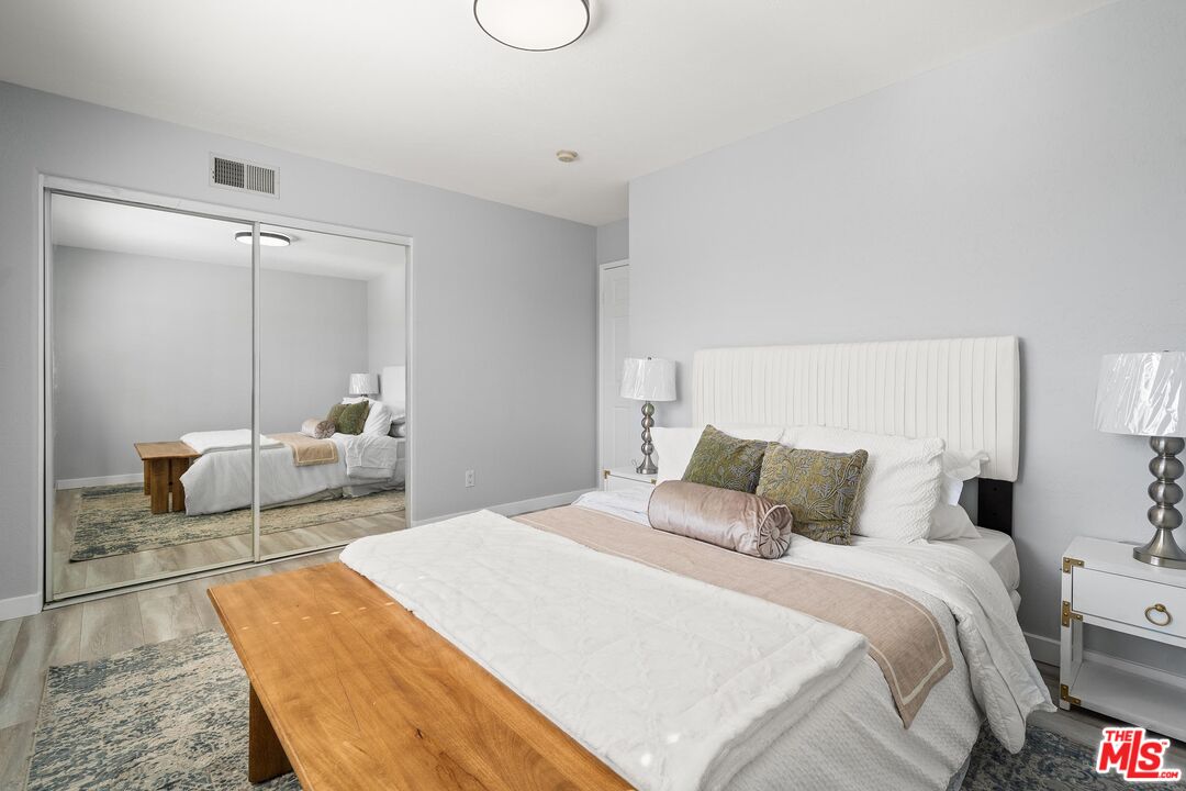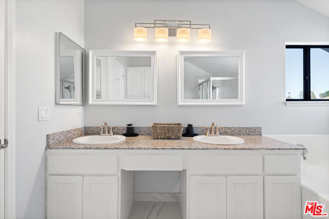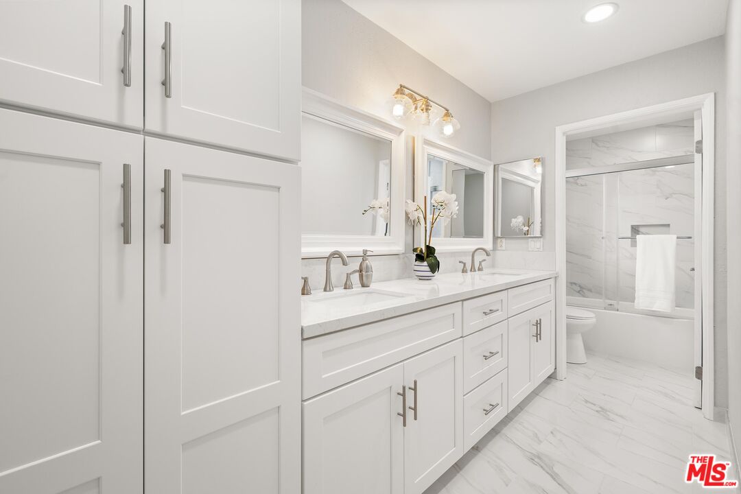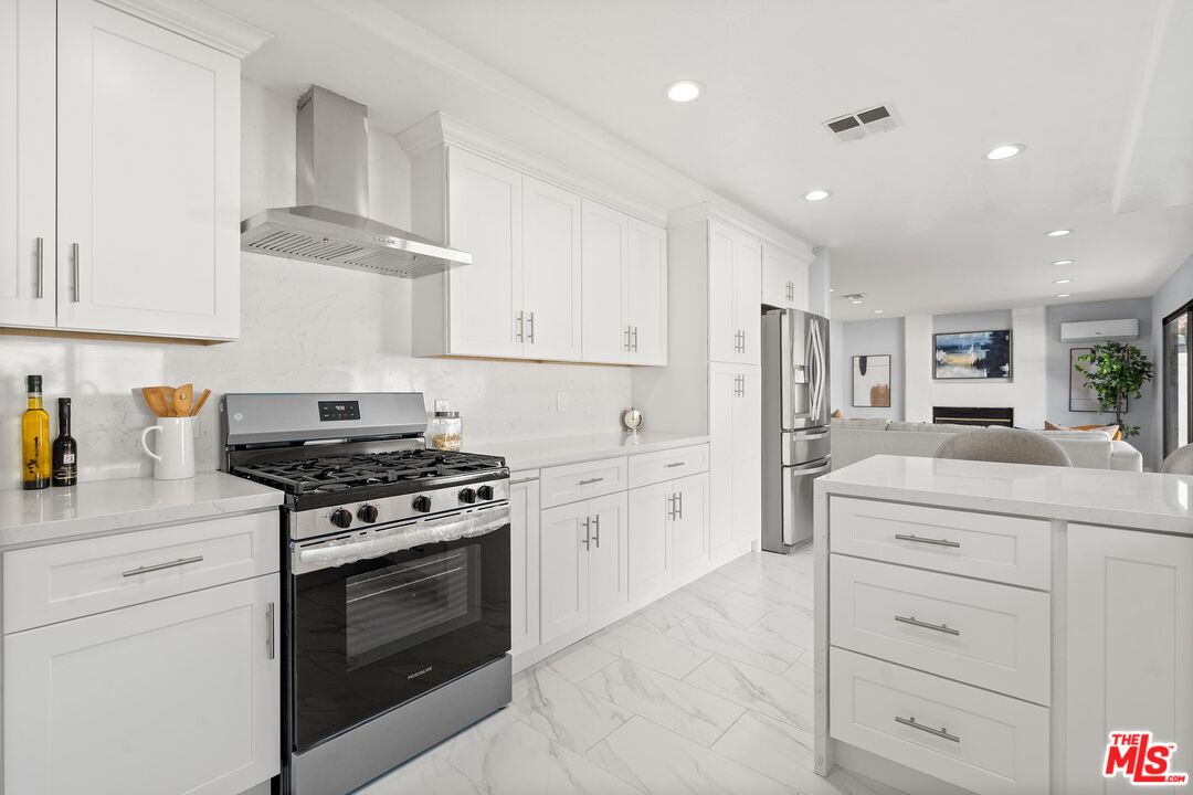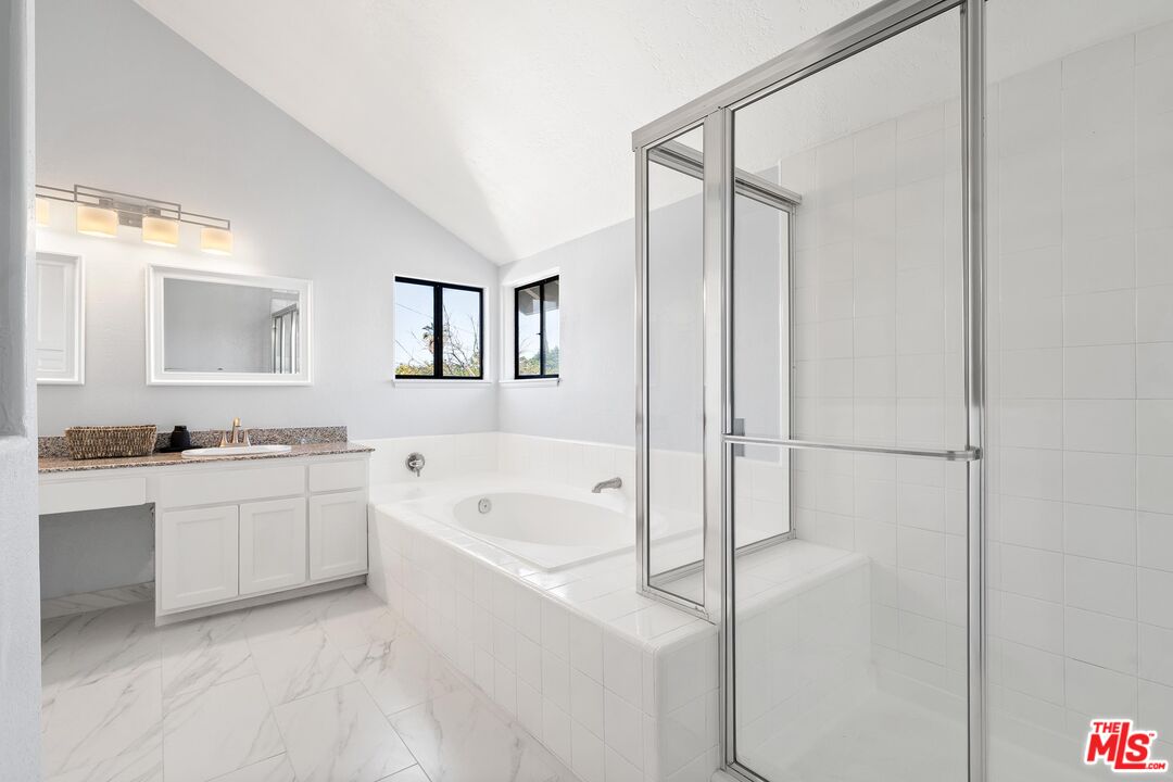This charming two-story home situated in the heart of Northridge has been thoughtfully remodeled with modern conveniences while retaining its inviting charm. Spanning 4BD/3BA, the home features soaring ceilings, wood-style flooring, and a generous backyard with room for a pool. The spacious living room opens to a formal dining area, creating an ideal setting for gathering with family and friends. The adjacent kitchen is bright and functional, offering stainless steel appliances, sleek countertops, bar seating, and direct access to the backyard. The kitchen flows into an additional living area with sliding glass doors and a charming fireplace, creating a comfortable space for everyday living and entertaining. A bedroom near the entry, well suited as a guest room or home office, sits across from a full bathroom, completing the main level. Upstairs, three additional bedrooms await, including the expansive primary suite with a walk-in closet, additional sliding-door closet space, and an ensuite bath featuring dual vanities, a soaking tub, and a step-in shower. The secondary bedrooms share a full bathroom with dual vanities and a shower-tub combination. Outside, the spacious backyard offers lush landscaping for added privacy and room for a pool. Additional highlights include a gated driveway and a two-car garage with direct access. Conveniently located near the Northridge Fashion Center, California State University, Northridge, dining, public transportation, and major commuter routes, this beautifully updated home offers an ideal combination of space, functionality, and location.