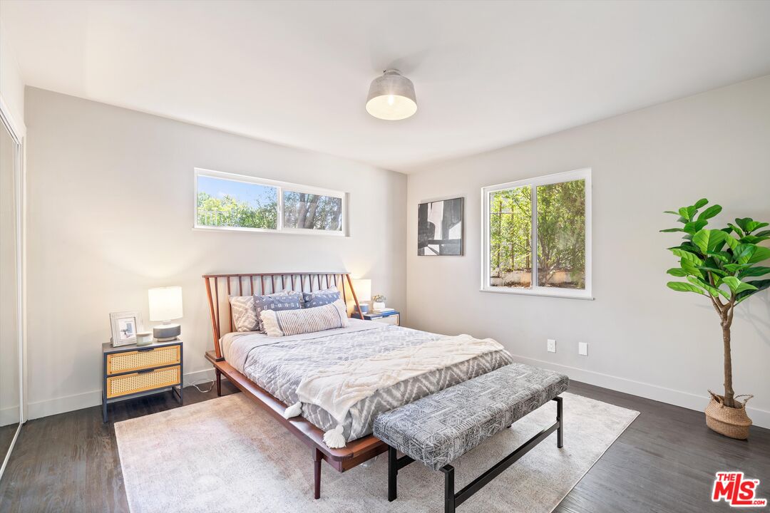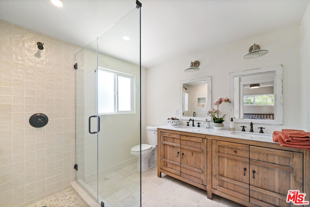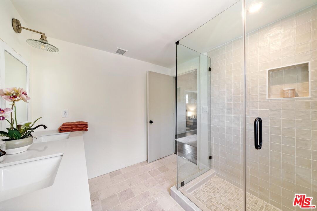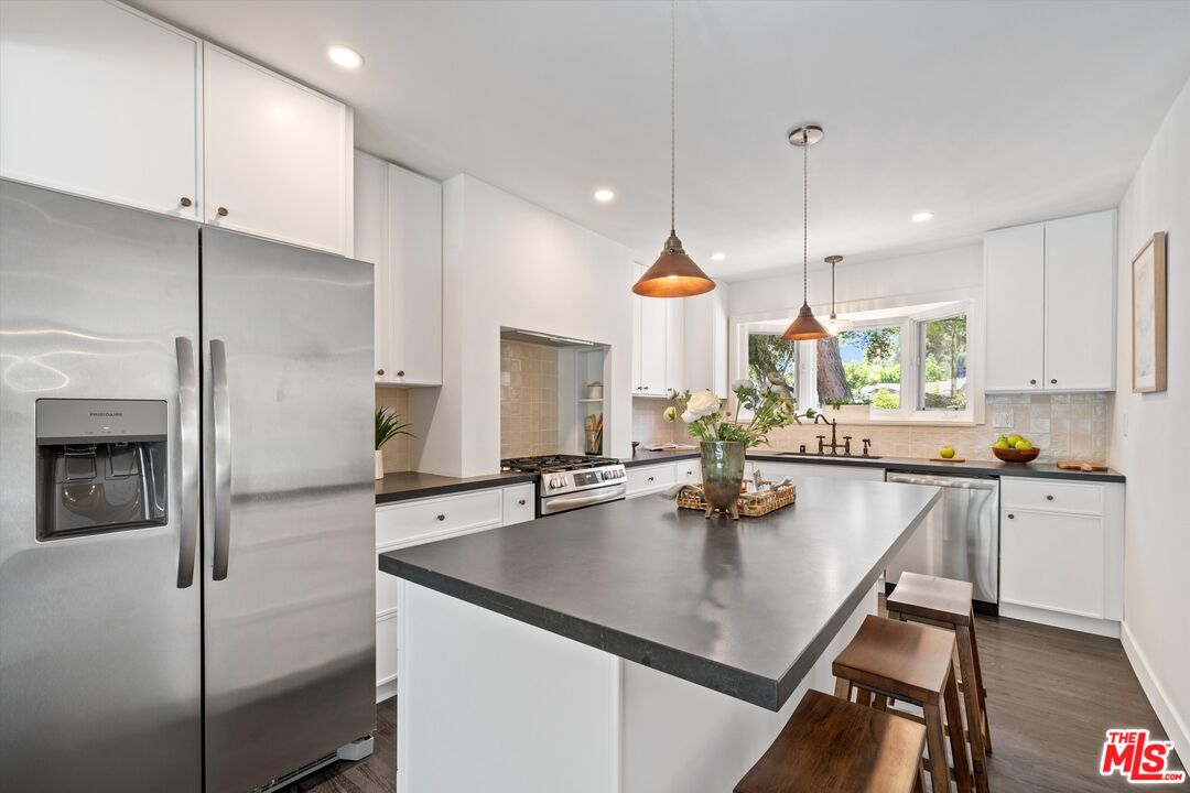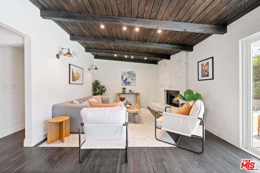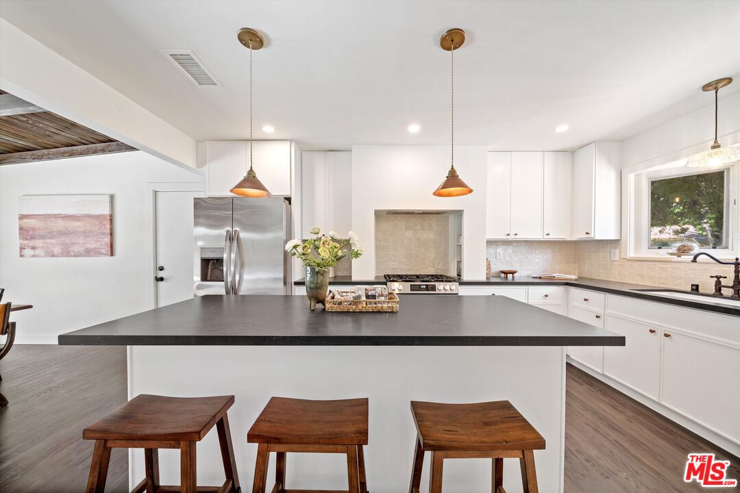 Beautifully remodeled ranch-style pool home on a picturesque corner lot in desirable Porter Ranch. This single-level residence blends timeless curb appeal with fresh, modern updates and an effortless indoor/outdoor flow. Inside, an airy great room showcases dramatic dark tongue-and-groove beamed ceilings, refinished wood flooring, and a whitewashed stone fireplace that anchors the space with character. Wide sliding glass doors usher in natural light and open directly to the backyard retreat. The dining area connects seamlessly to a showpiece, all-new chefs' kitchen crafted with sleek shaker cabinetry, richly hued quartz countertops, hand-set zellige-style backsplash, warm brass pendant lighting, a spacious island with seating and stainless appliances. The serene primary suite enjoys leafy views and a beautifully renovated en-suite bath featuring a double wood vanity, quartz counters, stylish sconces, and a large glass-enclosed shower lined with artisan tile. Two additional bedrooms are bright and generous, with ample closet space. Chic hallway bath echoes the home's curated palette with a long double vanity, matte black fixtures, and designer tile. Backyard features a sun-drenched sparkling pool, expansive patio for lounging and dining beneath an elegant white pergola, raised brick planters, mature landscaping, and tall hedges for exceptional privacy. All set on an expansive 11,000+ sq ft corner lot with multiple zones for play, gardening, and gatherings. A side decked gazebo adds another shaded nook, and the attached two-car garage plus driveway parking provide everyday convenience. Moments from parks, hiking trails, shopping, dining, this turnkey home delivers style, comfort, and charm in a prime location. THIS IS A MUST SEE!