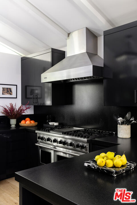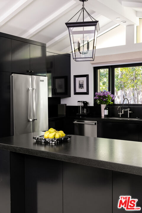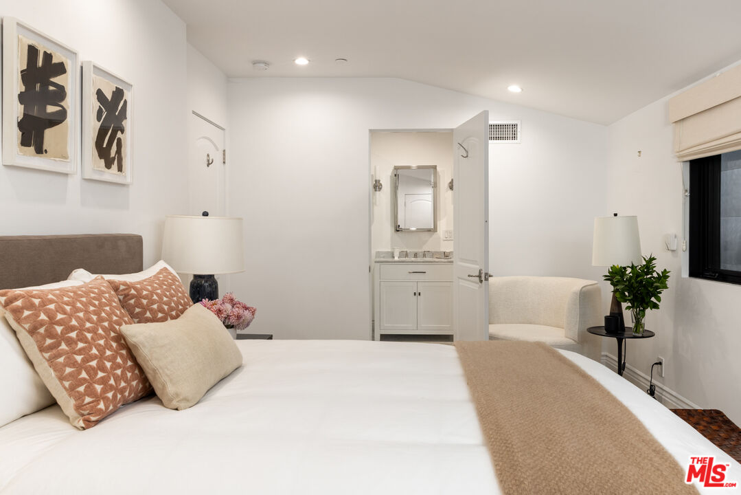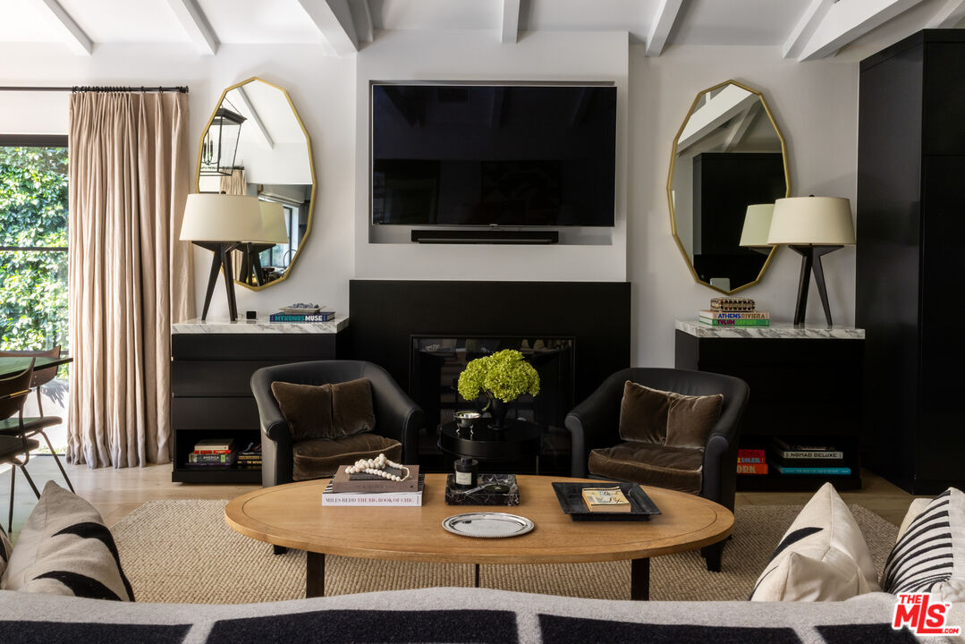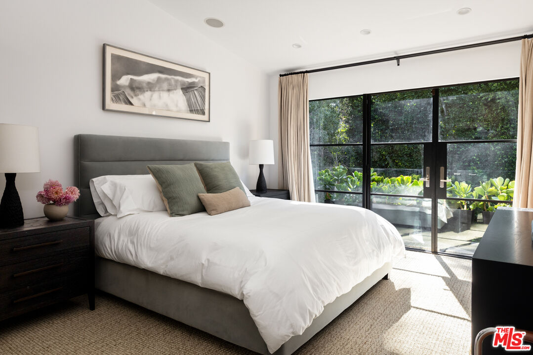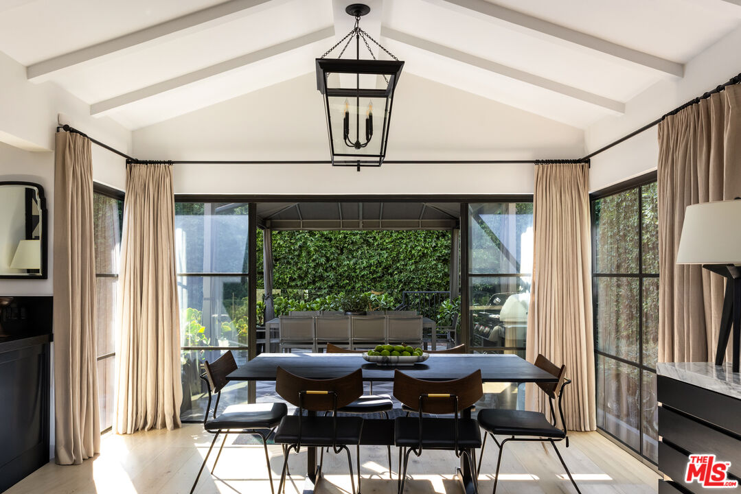 Expertly renovated and discreet Beverly Hills oasis offering high design, state-of-the-art amenities, and the serenity of canyon living. Private and peaceful, the 3 bedroom, 4.5 bathroom home sits at the top of Franklin Canyon, completely gated and landscaped to perfection, surrounded by mature plantings and hedging. With soaring vaulted ceilings, two covered patios, a home gym, and an awe-inspiring backyard with pool, firepit, and putting green, the property offers extensive amenities and effortless indoor/outdoor flow. Just a short distance from the iconic Beverly Hills Hotel and moments from Franklin Canyon Park's hiking trails, the home delivers a rare combination of privacy, nature, and proximity to the city's best offerings. Upon entry, the breathtaking open living space greets its entrants, with wide-plank oak flooring, vaulted ceilings, and gorgeous steel windows offering hillside views and abundant natural light. The airy living room is anchored by a sleek fireplace and flows seamlessly into the dining area and chef's kitchen. Outfitted with new top-of-the-line Viking appliances, custom cabinetry, and a generous peninsula with bar seating, the kitchen was designed for both culinary creativity and effortless entertaining. A wet bar features a Monogram wine/beverage refrigerator and additional storage with picture windows overlooking the striking backyard. Custom windowed French doors open to an upper covered patio, ideal for grilling and dining al fresco in the gorgeous hillside surroundings. Down the hall, find two upstairs bedrooms, including the luxurious primary suite, complete with a large, outfitted walk-in closet and a private balcony with windowed French doors overlooking the canyon. The perfectly appointed, spa-inspired bathroom features a striking marble dual-sink vanity, water closet, soaking tub, and large walk-in shower with dual showerheads. Descend to the lower level, where a second open-concept living space awaits, complete with a bar, corner office space, powder room, and a den with French doors leading to an intimate covered patio. The lower level is the ultimate space for recreation and relaxation, featuring an additional bedroom with an ensuite bathroom, laundry room, and gym. The gym and laundry room have the potential to be converted into an additional bedroom and bathroom, respectively - a flexible space to suit its next owner's needs. Outside, the landscaped backyard is a haven for entertaining and relaxation alike, surrounded by mature ficus hedging and expertly curated landscaping. A large pool and spa are complemented by a covered patio with an outdoor fireplace, an ideal space for relaxation and entertainment. For added leisure, enjoy a private putting green tucked among the greenery, with an adjacent seating area around a fire pit. Smart-home technologies include a built-in Sonos sound system, Nest thermostats, and robust security systems. Upgrades include whole-house alkaline water filtration and a HEPA-equipped HVAC system. Situated in one of Los Angeles' most coveted enclaves, the property is within minutes of Beverly Hills' best destinations, including Croft Alley, the Polo Lounge, Wally's, and Rodeo Drive's world-class shopping. Offering tranquility at home and excitement just beyond your doorstep, this Franklin Canyon escape is truly the best of both worlds.