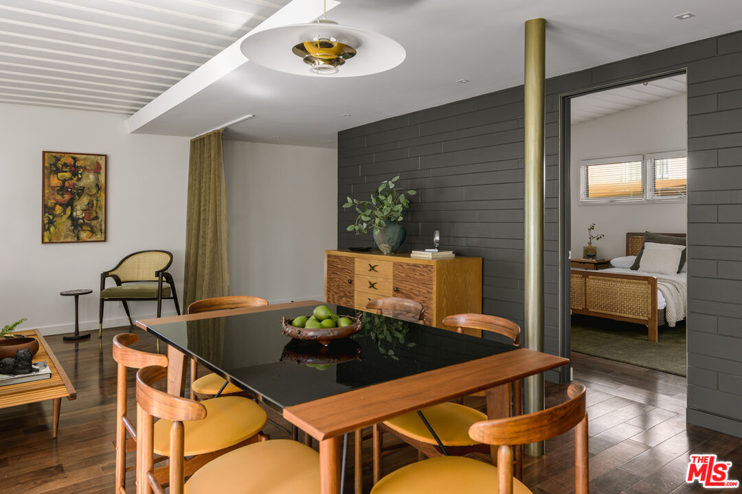 Step into a 1947 mid-century icon in Faircrest Heights, a masterful creation by architect Romeo Aristides Rodriquez that redefines sophisticated living. This single-story, architectural gem stuns with walls of glass and rich wood, blending sleek interiors with lush, manicured gardens. Clean lines, dramatic overhangs, and vaulted ceilings embody the essence of mid-century design, elevated by flawless craftsmanship and modern upgrades. The primary suite is a private oasis, featuring a dual-vanity bath and a skylit shower that commands relaxation. Open-concept living spaces seamlessly connect to the outdoors, perfect for entertaining or embracing the California lifestyle. The reimagined kitchen is a showpiece Calacatta marble counters, top-tier integrated appliances, and expansive Milgard windows that capture every angle of light. Spa-inspired bathrooms, complete with steam showers and a custom Cabuchon Calyx Japanese soaking tub, deliver unmatched luxury. Outside, a pristine pool and meticulously landscaped yard create an urban retreat for sun-soaked days. A private 2-car garage and solar panels add efficiency to elegance. Perfectly positioned minutes from downtown or the Westside, this is more than a home - it's a statement of style, prestige, and timeless appeal.
