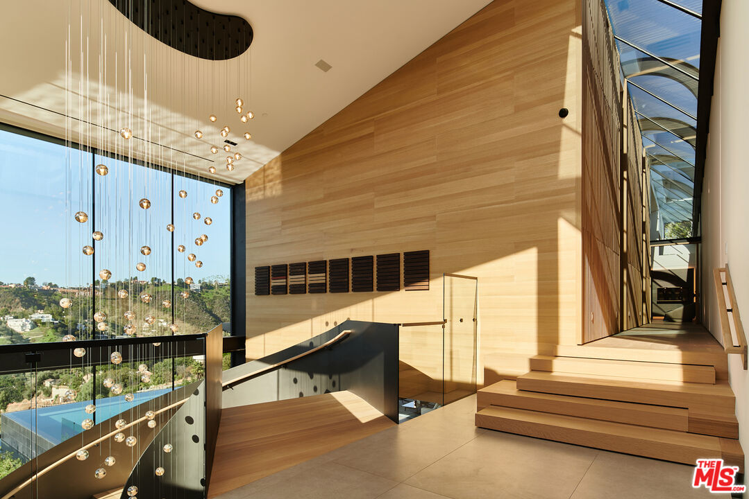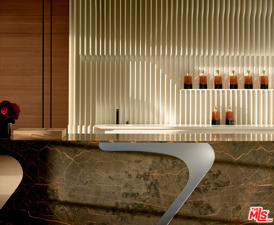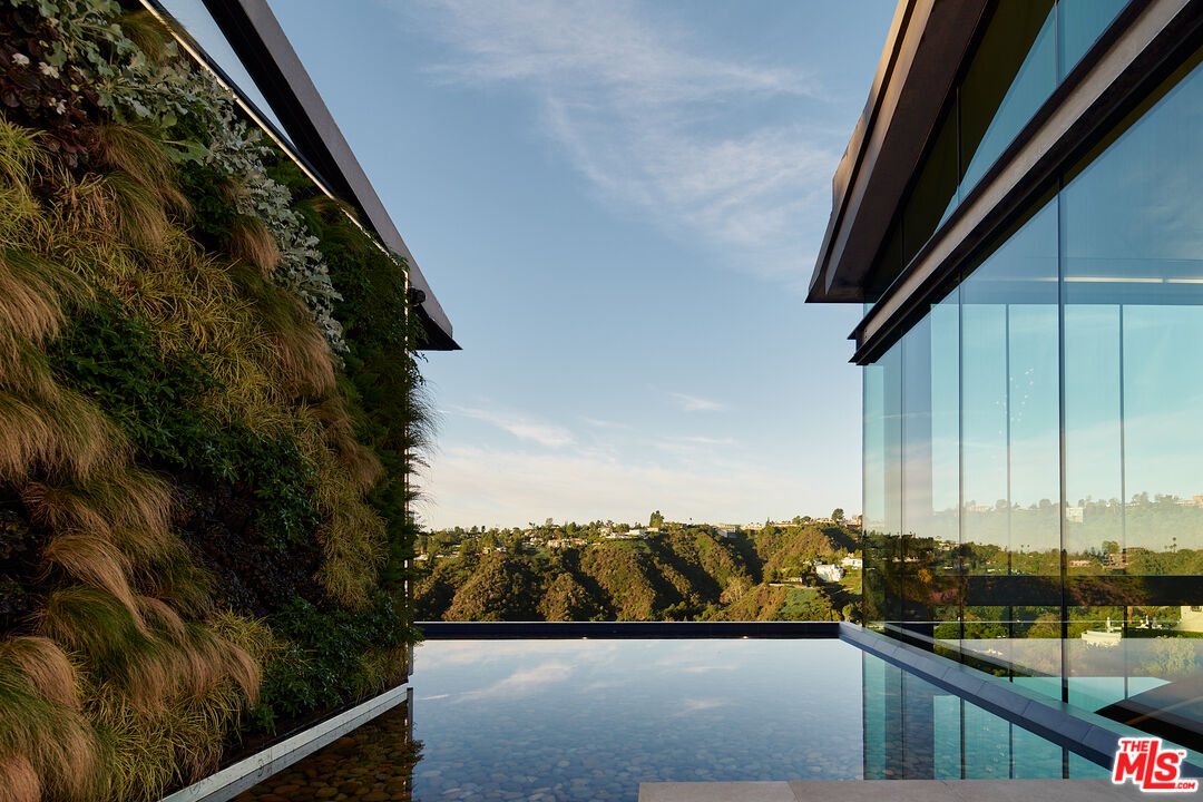 Enveloped in the lush landscape and bound by the masterful vision of icons in quality and thoughtful execution, award-winning architectural firm Tag Front and world-renowned interior designer Cesar Giraldo, 1857 Bel Air Road offers 20,000 square feet of venerable beauty and an artful abundance of sophistication. The sleek curvature of the exterior of the house is a work of art in itself, with clean lines, geometric shapes, and a contemporary design that exudes sophistication and elegance. An eco-green living wall and a manicured pathway above a striking water feature encompass the 350-foot width of frontage and lead to a moment of arrival, peering above the clouds and extending to the views of the ocean, Catalina Island, and the canyons from Bel Air. The grand, masterpiece spiral staircase connects two stories, appears suspended, and was carefully engineered with aluminum and steel, immediately immersing guests in the home's meticulous design. A free-flowing main level dialogues with the outdoor veranda from the sunken formal living room and intimate entertainment spaces, to the breakfast nook and Poliform chef's kitchen with a seamless caterer's preparation galley ideally hidden directly behind. Each statement room is designed with a subtle transition from the last, the architecture is modern yet the amenities are luxurious. The primary suite is a true oasis, with a fireplace, a sitting area, two walk-in closets, and a spa-like shower with tubs, steam shower, and dual vanities. Three-story walls of glass drape a bamboo cove exposing the incredible backyard scape totaling 1.4 acres with an outdoor lanai, a substantial infinity pool and spa, and an effortless flow over the canyon. The lower level allows an ultimate experience in leisure and wellness, complete with a playroom, theater, gym with signature TechnoGym equipment, a wine lounge for over 1,152 bottles, and additional bedrooms to complete the nine-bedroom, ten-bath, three-powder-room offering. One of the premier tri-level estates in Bel Air, a first and last of its kind, 1859 is a home of impeccable attention to detail, an unmistakable eye for global design, and one of the finest vast view lots in Los Angeles. All in all, this Bel Air modern masterpiece is a true gem, offering the ultimate in luxury living. With its stunning design, top-of-the-line finishes, and state-of-the-art amenities, this is the perfect home for one who wants the best of everything.