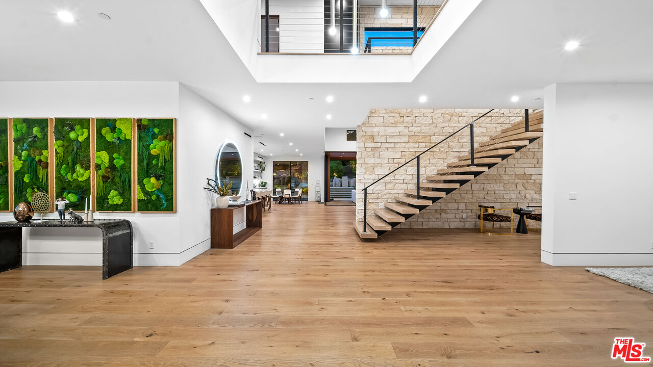 Experience exceptional living in this newly constructed modern farmhouse, located on a sprawling 1.6-acre flag lot in Tarzana. This extraordinary estate, designed for grand living and entertaining, is accessed through two private gates and a 400-foot driveway, leading you to a home that combines elegant design with practical features. The home epitomizes refined living and timeless luxury, offering 5 spacious bedrooms and abundant room for comfort and convenience. The expansive open-concept layout is perfect for both relaxation and entertaining, with seamless transitions between indoor and outdoor spaces. The custom chef's kitchen boasts state-of-the-art Miele appliances, a built-in coffee maker, wine cellar, butler's pantry, large pantry, and a massive center island with bar seating. The kitchen opens up to the large family room featuring a fireplace, aquarium, custom shelving and views of the meticulously landscaped grounds, creating a welcoming atmosphere for everyday meals and grand gatherings. A formal dining room, living room, lounge area, and an additional eating area complete the downstairs.The second level offers an additional family room, oversized ensuite bedrooms, and a laundry room. The luxurious primary retreat features beamed ceilings, a fireplace, custom shelves, an expansive balcony that overlooks the backyard, dual large closets with custom cabinetry, dual vanities, a soaking tub. and a large steam shower. The estate is designed with entertainment in mind, featuring a full-size tennis and basketball court, a resort-style pool with a water slide, waterfalls, a baja shelf, and a grotto. There's also a versatile pavilion with a bath and wet bar for hosting events, and a covered tennis pavilion. Enjoy cinematic experiences in the state-of-the-art home theater, or unwind in the private gym with direct access to the tennis and basketball court.Additional features include a main floor ensuite bedroom, a detached guest house for visitors or extended family, a three-car garage, a smart home and security system, and ample parking for multiple cars.