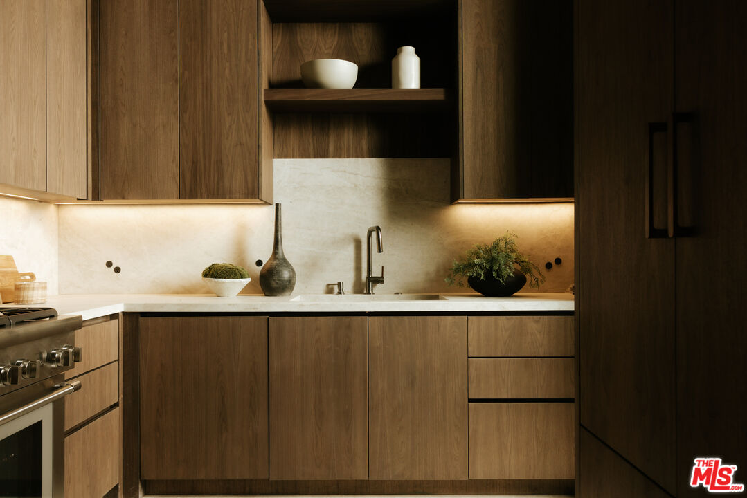 Fortaleza | A Private Architectural SanctuaryTucked away on a quiet cul-de-sac south of the blvd , Fortaleza is a striking new-construction estate inspired by the strength and bold design of a Brazilian coastal fortress. Surrounded by towering tropical trees and infused with rare, globally sourced materials, this residence is a true statement of craftsmanship, privacy, and modern luxury.The 6-bedroom main residence is thoughtfully designed for both grand entertaining and everyday living, featuring a private office, a fully appointed theater room, and seamless indoor-outdoor flow throughout. Complementing the main home is a separate 2-bedroom ADU, ideal for guests, extended family, or income potential.Inside, the home showcases distressed Japanese pine flooring paired with custom walnut cabinetry throughout, creating warmth and depth against the home's contemporary lines. The sculptural white oak staircase anchors the interior as both a functional and artistic centerpiece.Bathrooms are elevated to spa-level experiences with shower walls fused from multiple natural stones, while select spaces feature crystal countertops, including the powder room and downstairs guest suiteeach detail intentionally chosen to feel both rare and timeless.Designed for effortless living, Fortaleza is fully automated with a Control4 smart home system, offering whole-home control at the touch of a button.Outdoors, a dramatic infinity-edge pool with deep waterfall acoustics creates a resort-like escape. The pool is saltwater compatible and enhanced by a tranquil water-step feature, blending movement, sound, and design into a serene sensory experience.From the rare Brazilian hardwoodsunavailable anywhere else in Americato the fortress-inspired presence and lush natural surroundings, Fortaleza is not just a home, but a destination. A bold, one-of-a-kind property crafted for those who value privacy, design, and uncompromising quality.