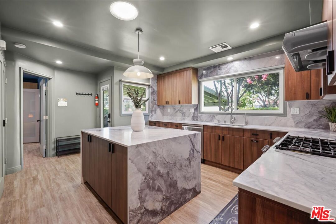 Charming and versatile Spanish-style single-family residence featuring a spacious 3-bedroom, 2-bath main home plus an attached bonus living area with its own entrance, kitchen, and bath perfect for guests, extended family, or flexible work-from-home use. (Buyer to verify all permits and square footage.) The main house offers a light-filled living room, formal dining area, and an updated kitchen with modern appliances. The primary suite features a wardrobe with a centered vanity and a private en-suite bath, while two additional bedrooms share a full hallway bath. A private backyard/verandah provides the perfect outdoor retreat for relaxing or entertaining.The bonus living area includes a private entry, full kitchen, in-unit laundry, and two additional rooms, offering excellent privacy and separation all while remaining connected to the main structure. (Some bonus area are unpermitted and not included in official square footage.) The entire property is fully fenced and surrounded by mature ficus hedges, creating a tranquil, private setting in the heart of Alhambra.Located in the Alhambra Unified School District, just minutes from Main Street, local parks, dining, and with convenient access to Downtown LA.