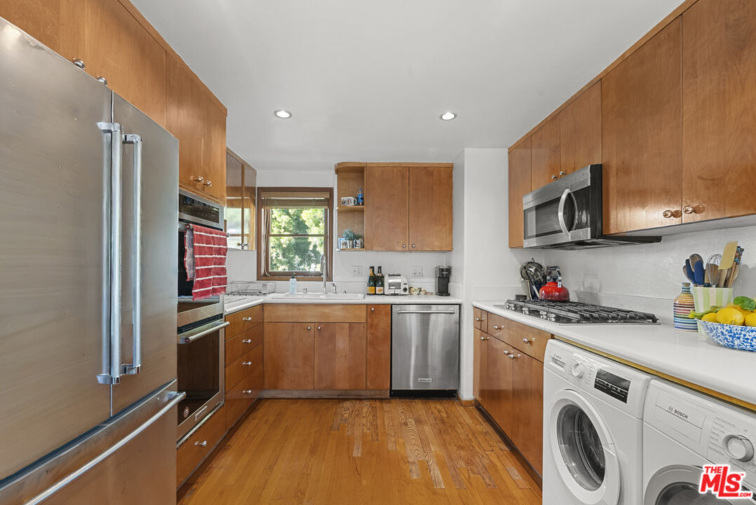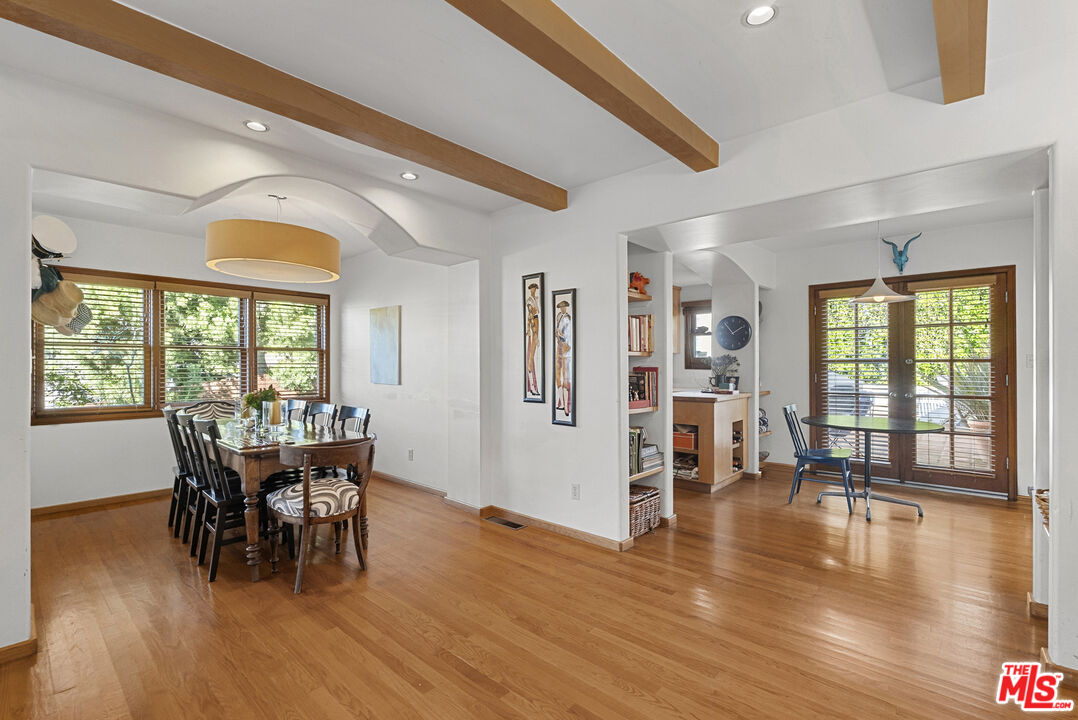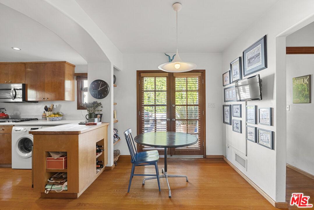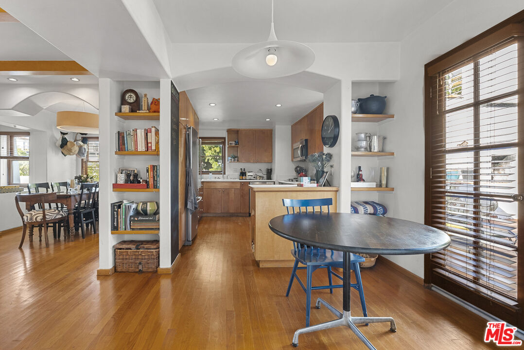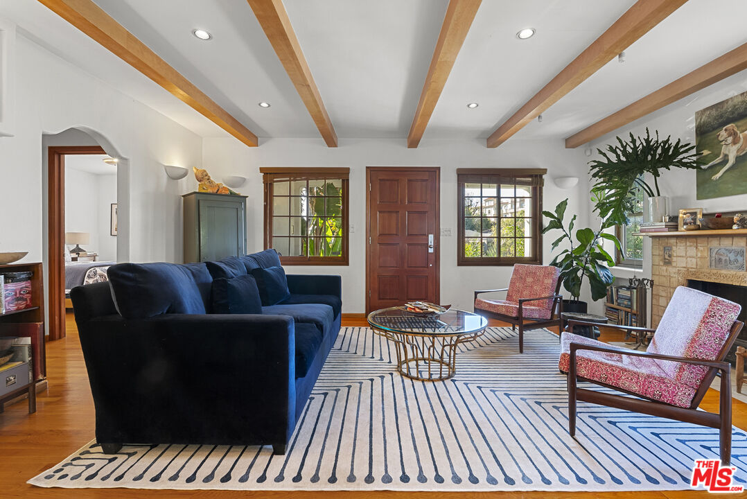 Set above the street offering exceptional privacy & light sits this pristine character-filled & remodeled Spanish gem. The main house offers 3 bedrooms, 1.75 baths, a dining area, remodeled kitchen & baths, lovely "Batchelder" wood burning fireplace in living room, gleaming hardwood floors throughout, security system, new heat & air conditioning, newer lighting & more! There is also a detached guest apartment or 4th bedroom w/ 3/4 bath, & kitchenette. Charming details throughout include arches, exposed beams, & French doors. Private garage at street is equipped with an automatic opener. Great WW location in Westwood Charter Elementary neighborhood!