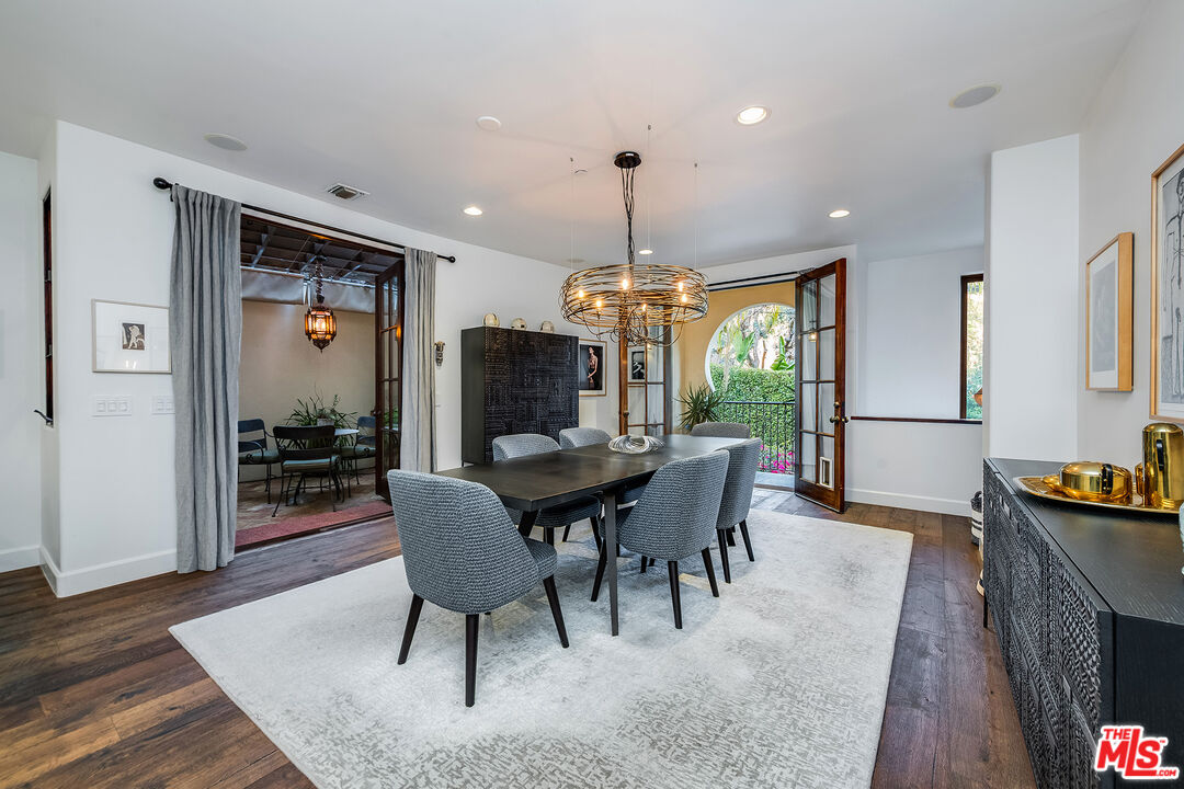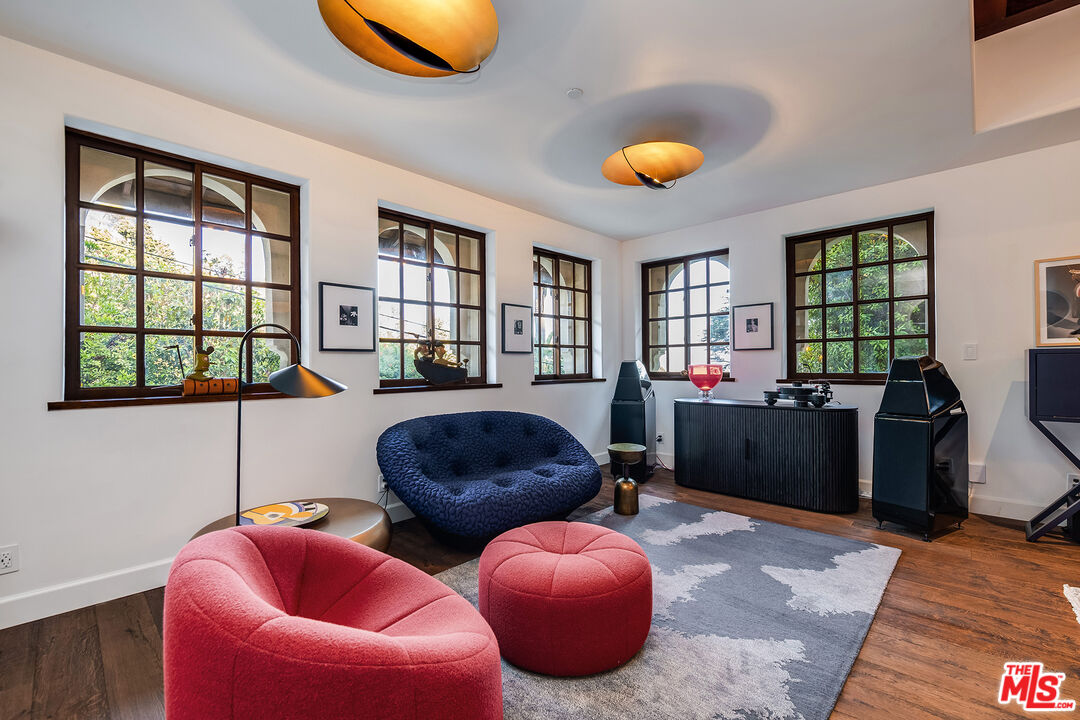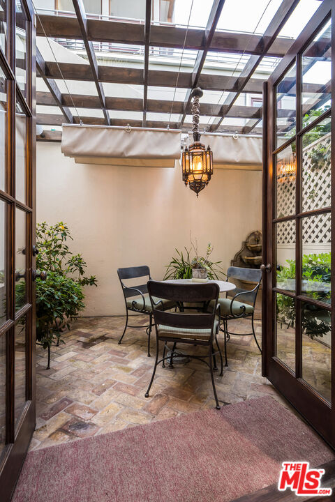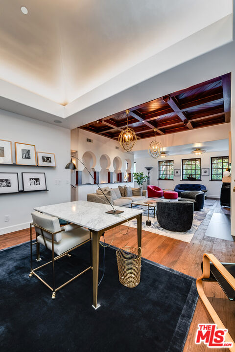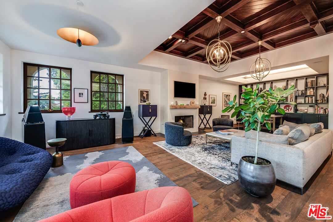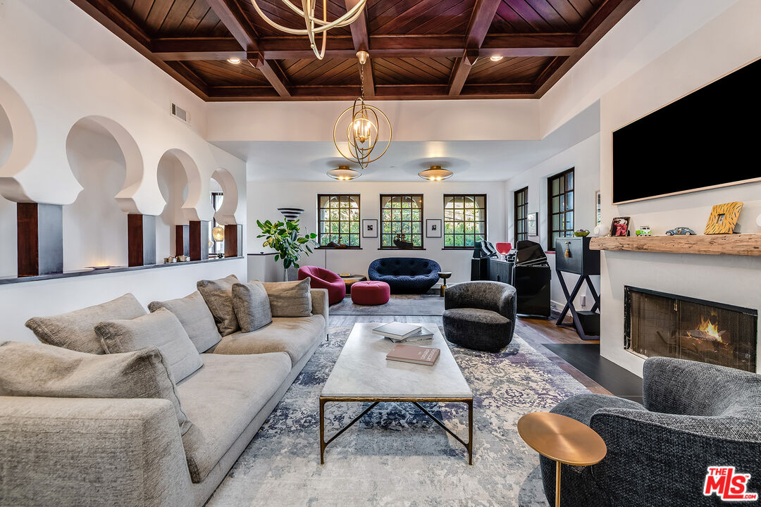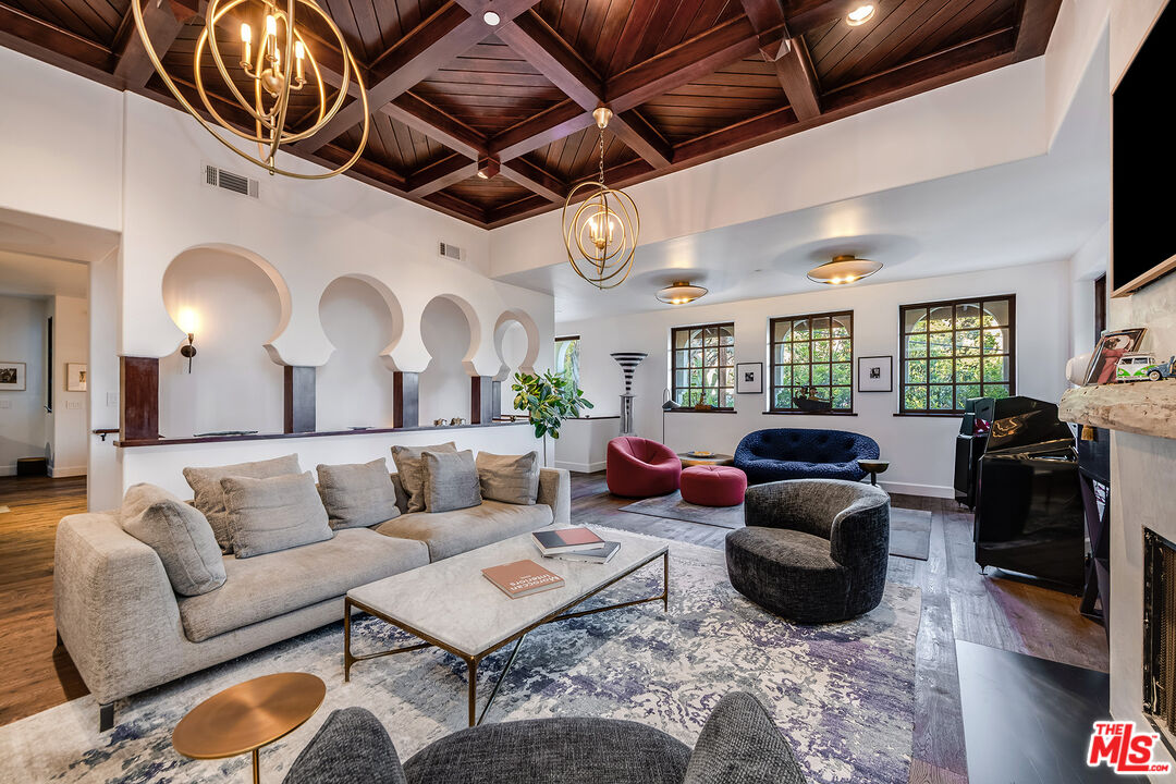 Featured in The Wall Street Journal this enchanting Villa in a premier Hollywood Hills location blends exotic elegancewith modern comfort just moments above the Sunset Strip. Enter through romantic archways into the dramatic "Grande Salon," where soaring 10-foot coffered ceilings, rich oak finishes, and ironwork evoke the atmosphere of a luxurious global retreat. The open-concept gourmet kitchen flows into a spacious dining area, with French doors that lead to outdoor terraces, ideal for sunset entertaining or quiet stargazing. With approximately 3,800 sqft of indoor-outdoor living, this home is designed for both grand gatherings and intimate escapes, featuring a fireplace patio, multiple view terraces, and a fully outfitted outdoor kitchen with dishwasher, stainless sink, and full-size refrigerator. A built-in water filtration system ensures high-quality water throughout the home, while an integrated fire sprinkler system provides discreet, state-of-the-art fire suppression for enhanced safety. An infrared sauna on the patio adds an indulgent spa-like touch to the outdoor experience. The primary suite offers its own fireplace, while two additional bedrooms with en-suite baths open to magical outdoor spaces. A private in-law unit with separate entrance, kitchenette, bath, and off-street parking offers added flexibility. Distinctive details include custom tile, hardwood floors, hanging lanterns, five sets of French doors, and a full solar panel system (owned) for energy efficiencyall echoing the timeless craftsmanship of an old-world villa. Just minutes from Runyon Canyon, Wattles Mansion, Sunset Strip, The Grove, and the Hollywood Bowl, this one-of-a-kind residence offers a rare blend of global romance and modern ease.