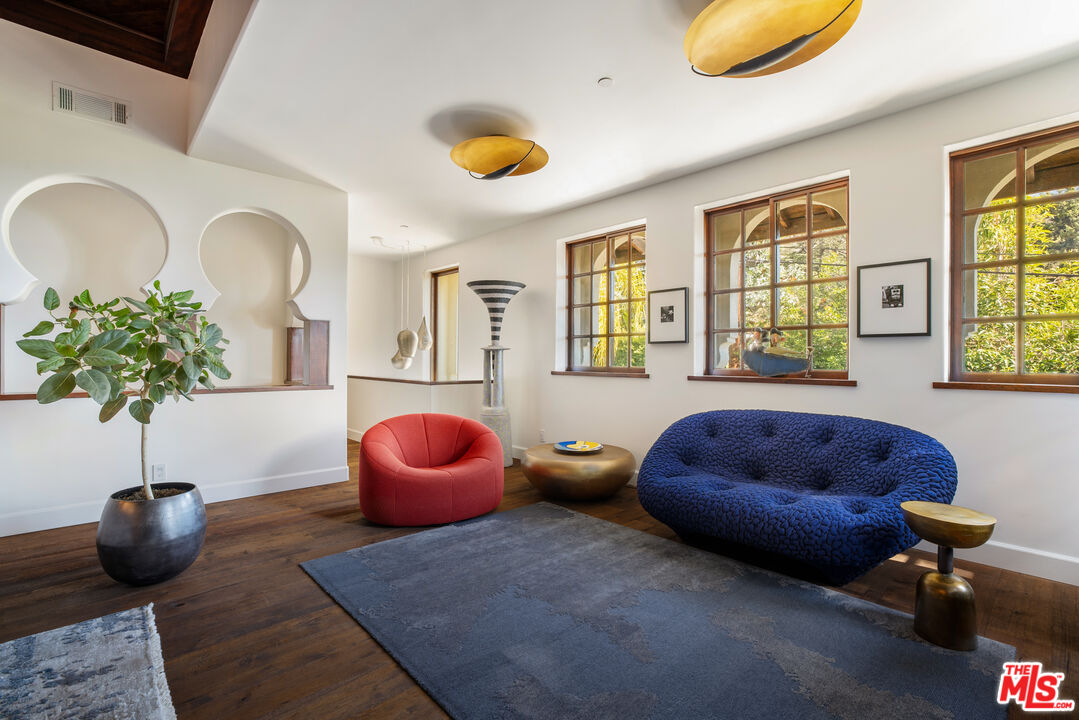 Set above the city yet moments from the trails of Runyon Canyon, this modern Moroccan masterpiece featured in The Wall Street Journal delivers a rare blend of Old World romance and modern reliability. Built in 2003, it pairs handcrafted detail with contemporary systems and an effortless indoor-outdoor flow. Arched doorways access a dramatic living room with 10-foot oak coffered ceilings, carved ironwork, and Moroccan lanterns that cast a warm dusk glow. The home spans approximately 3,177 square feet with three signature terraces, one capturing tranquil canyon views by day and glittering city lights by night. The kitchen, which opens to the dining room and the patio, boasts ample countertop space, an abundance of cabinetry and storage, a Viking range, a Sub-Zero refrigerator, and a Viking dishwasher. The fully equipped outdoor cucina perfect for quiet evenings, long conversations, and entertaining al fresco features a stainless steel grilling station, a stainless steel sink, a full-size refrigerator, a Bosch dishwasher, and generous prep space. Moroccan archways, Zellige tile, engineered European oak floors, custom ironwork, and three fireplaces create warmth and character throughout. A private guest space with its own entrance, kitchenette, bathroom, and parking adds impressive flexibility for guests or extended stays. Located near Runyon Canyon, the Wattles Mansion, the Hollywood Bowl, the Sunset Strip, The Grove, and Melrose Avenue, the residence sits at the intersection of nature, community, and Hollywood glamour. 1925 Curson Place is more than a home. It is a sanctuary, a retreat, and a rare fusion of timeless style and modern comfort.