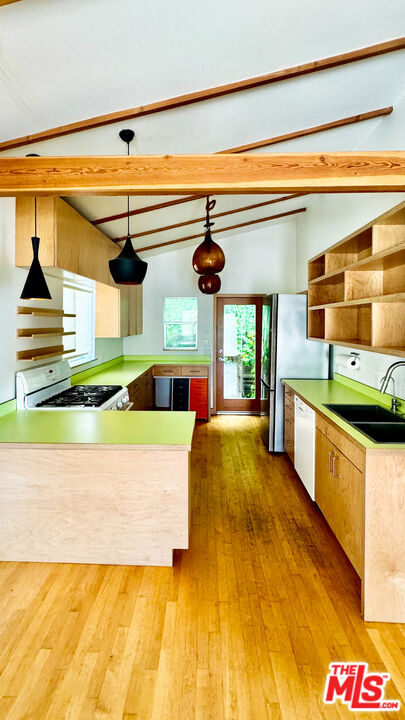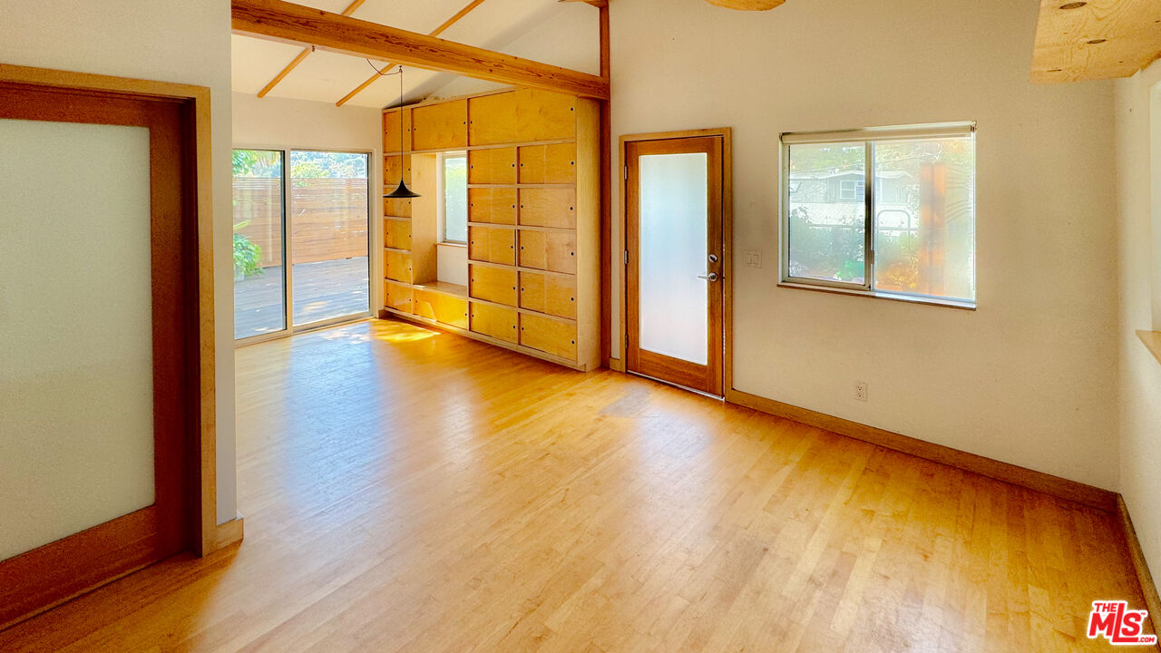 Two houses on a lot! 1920's California bungalow completely reimagined in 2011 by Los Angeles-based architect Leigh Jerrard. With pristine Scandinavian inspiration, these two homes on a lot exhibit clean organic modern elements coupled with a mountain retreat aesthetic. The lower residence is a one bedroom with vaulted ceilings and a large outdoor deck/patio. The upper residence is an open floor plan with its own deck, high vaulted ceilings, a built-in Murphy bed, canyon views, and is permitted as a rec room. Totaling 1024 sqft, it's a perfect live/work residence or a strong proven income property.