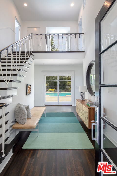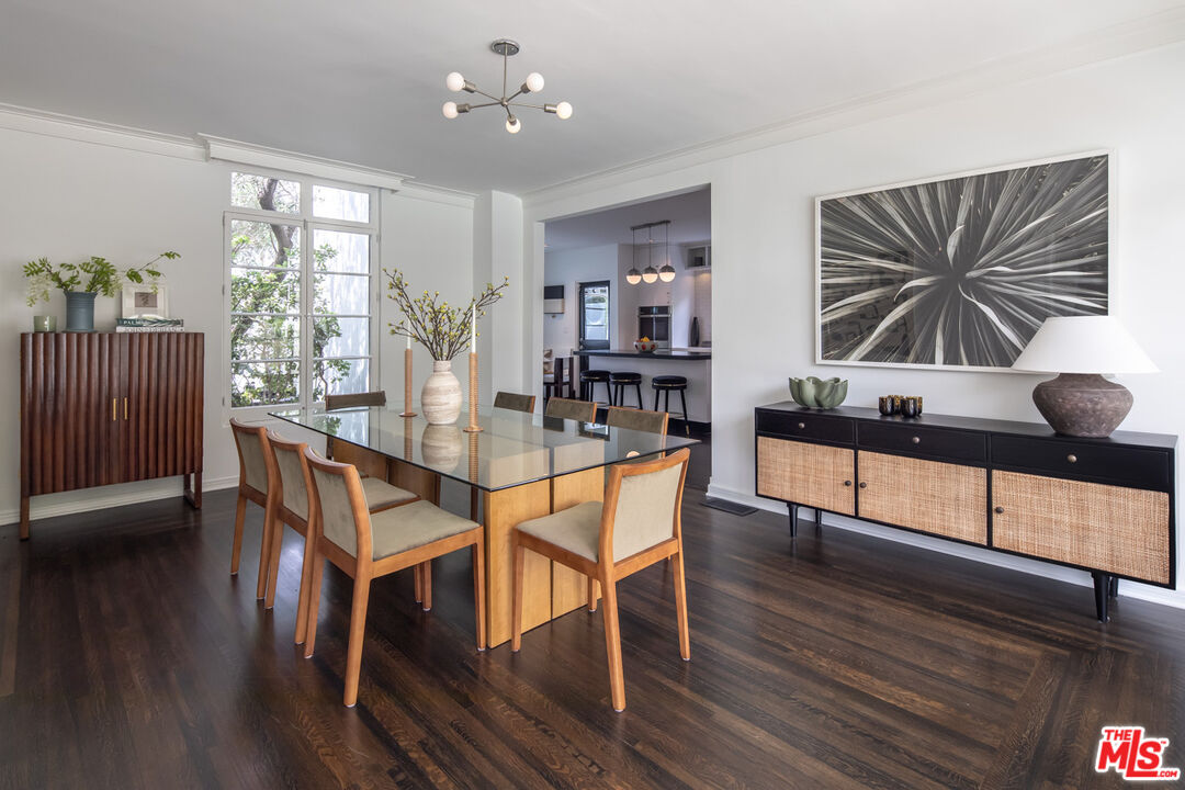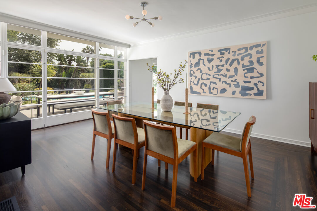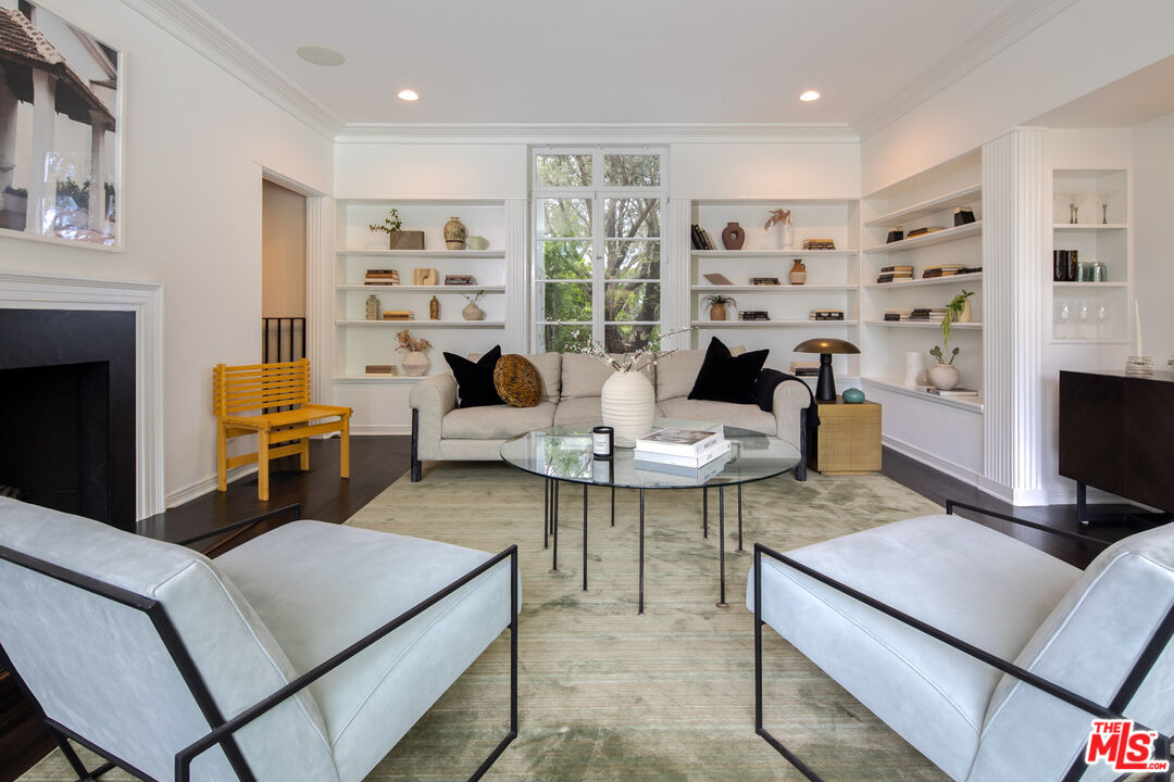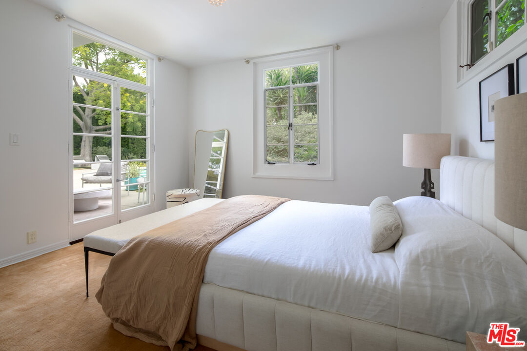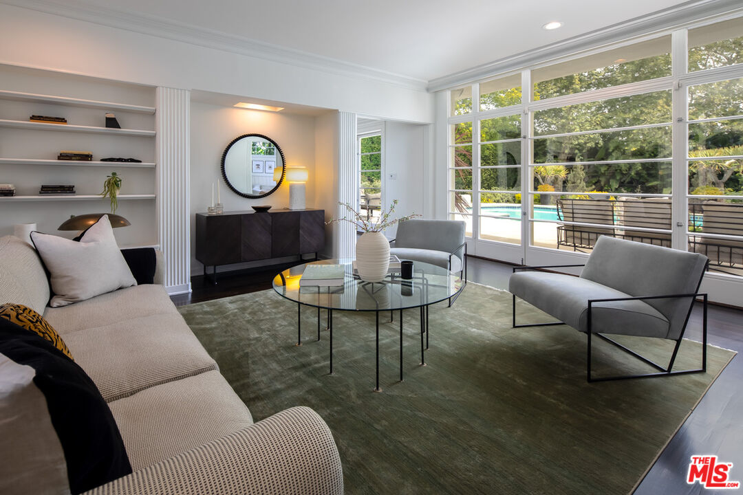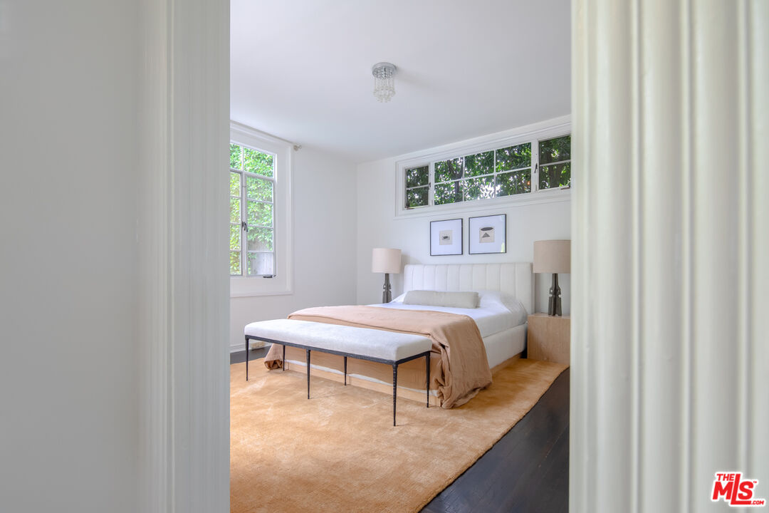 The Chapman House, designed by L. G. Scherer in 1936, stands as one of Silver Lake's most storied and glamorous estates. This four-bedroom Hollywood Regency residence sits atop a prime street on an expansive lot, offering sweeping views and exceptional privacy. Beyond its striking architecture, the property features one of the city's premier home music studios, an extraordinary opportunity for musicians or anyone seeking a true live-work creative environment. Lush, professionally designed gardens by Judy Kameon (published by the Wall Street Journal) surround the home, creating a serene and secluded setting. Enter through a gated, tiled Art Deco courtyard into a gracious foyer that opens to the expansive backyard. The main level includes formal living and dining rooms, a refined gourmet kitchen with built-in banquette and high-end appliances, an office, and a first-floor bedroom suite. Upstairs, two (or potentially three) bedrooms capture stunning views. Throughout, the home is rich in character and detail, featuring designer wallpaper, custom tile work, bespoke lighting, and distinctive Deco-inspired railings and windows. The generous outdoor space is equally impressive, with a pool and spa, built-in seating, and sprawling patios and lawns designed for entertaining. The professional music studio is accessible via a hidden interior stairway or private exterior entrance. Thoughtfully engineered, it includes a live room, control room, vocal booth, lounge with kitchen, writer's room, and two bathrooms. A timeless piece of old Hollywood, The Chapman House presents a truly unique opportunity.