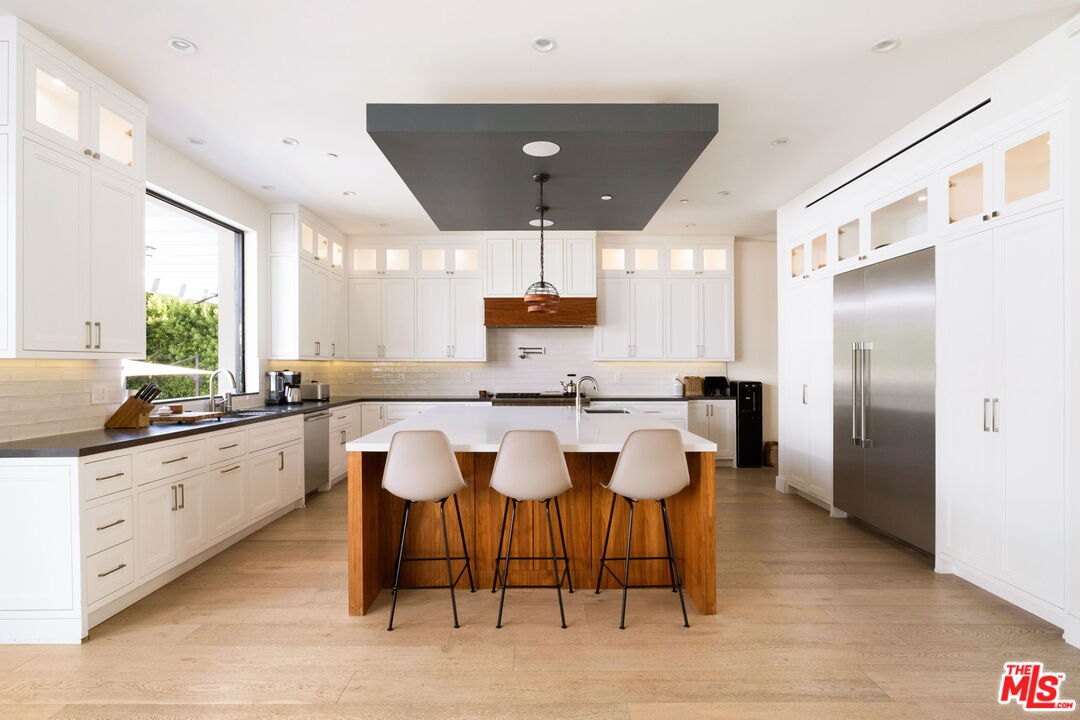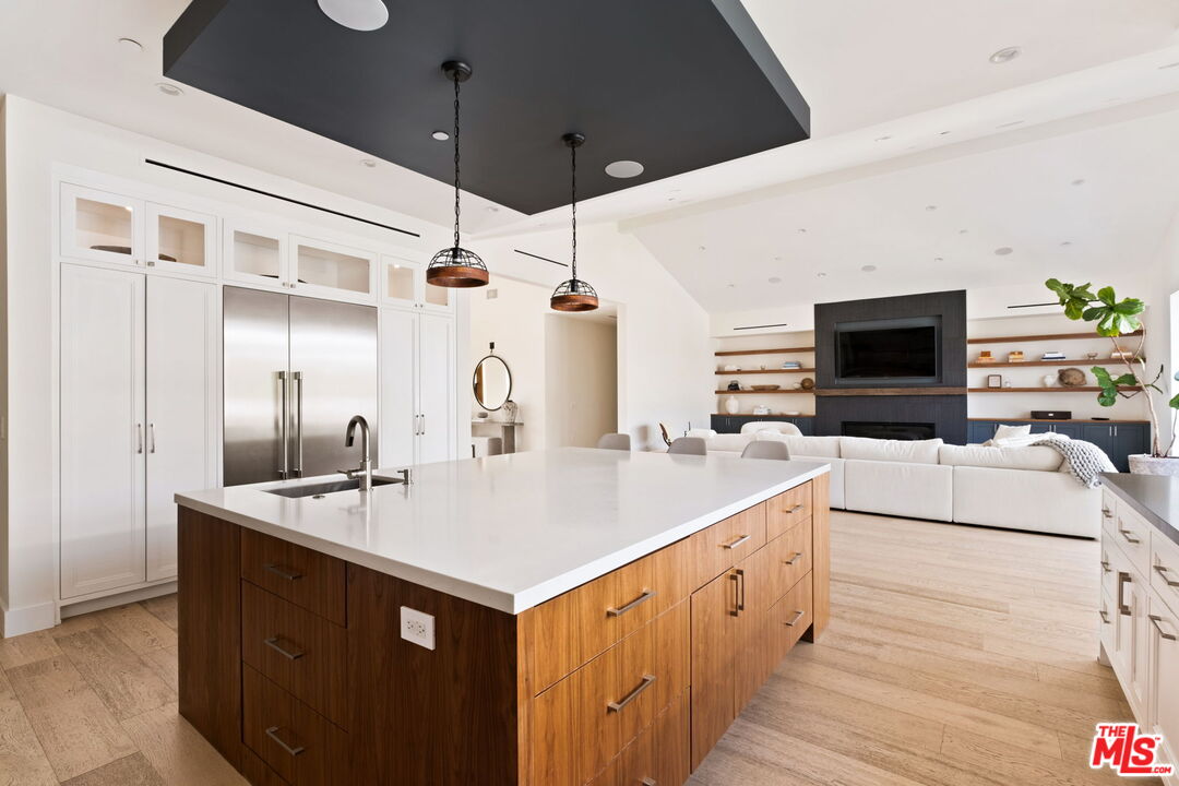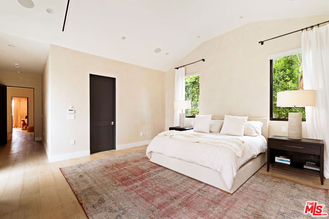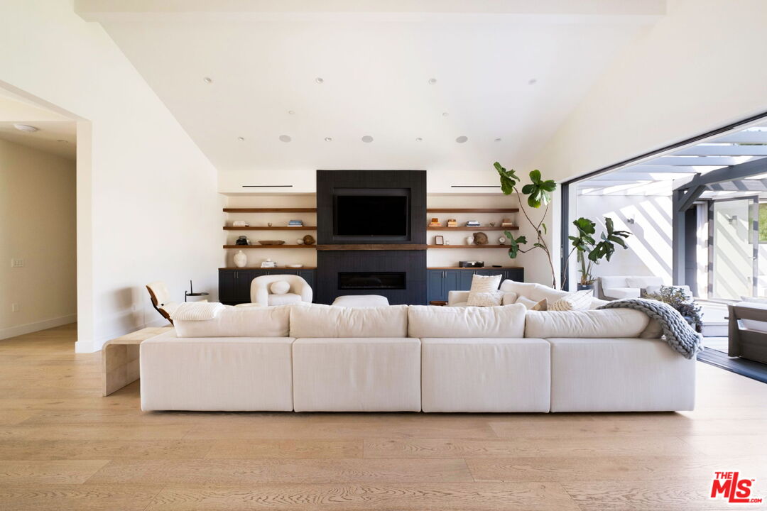 Presenting a stunning modern masterpiece, this newly constructed single-level residence, completed in 2020, embodies sophisticated luxury and timeless design. Perfectly positioned south of Ventura Boulevard on a picturesque, tree-lined street, this architectural showplace offers the ultimate in style, comfort, and California living.Behind private gates, this single-story residence showcases timeless curb appeal with smooth stucco, lush landscaping, and an expansive circular driveway leading to a covered entry. Inside, soaring vaulted ceilings, wide-plank European Oak floors, and custom built-ins create a seamless blend of warmth and sophistication.The gourmet chef's kitchen features sleek stone countertops, a large center island with breakfast bar, and top-of-the-line stainless steel appliances. The inviting great room flows effortlessly to the resort-style backyard, creating an ideal setting for entertaining and indoor-outdoor living.The serene primary suite was meticulously designed with designer Portola paint and a beautiful fireplace for a tranquil ambiance. It also offers direct access to the backyard, a spacious walk-in closet, and a luxurious spa-style bath with soaking tub, glass shower, and dual vanity. Two secondary bedrooms and a third private suite (all with ensuite bathrooms and walk in closets) perfectly situated for guests or a playroom complete the layout. A state-of-the-art movie theater with elevated seating and designer lighting provides the ultimate at-home entertainment experience.Step outside to your private oasis with a sparkling pool, elevated spa, outdoor BBQ kitchen, firepits, and a full pool bathroom with showerperfect for al fresco gatherings. Additional features include an attached two-car garage, owned solar panels with battery backup, and a Control4 smart home system controlling everything from lighting and security to music and window coverings all at the touch of a button or your phone. This exceptional gated property captures the essence of luxury and modern Los Angeles living with easy access to schools, trails, and the 101.