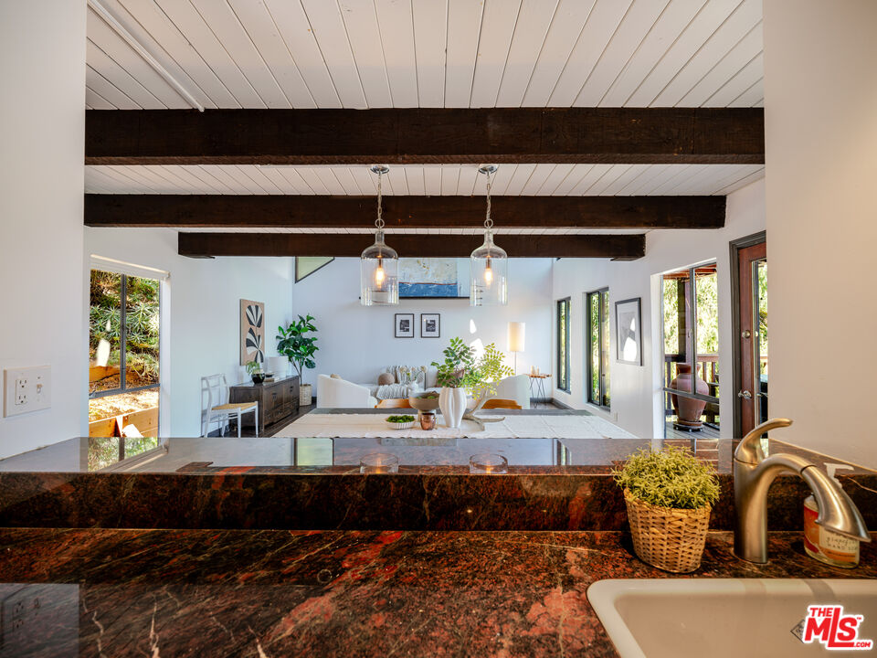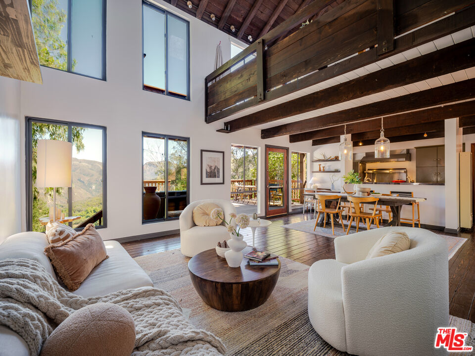Romantic 1970s Architectural with Guest House & Mountain ViewsPerched in Fernwood with uninterrupted views of Topanga State Park, this tri-level 1970s architectural blends vintage soul with modern comfort. The 2-bed, 2-bath main house and detached guest house sit on a rare double lot shaded by stately trees and cooled by ocean breezes.Inside, soaring ceilings, tongue-and-groove wood floors, French doors, and expansive windows flood the living spaces with light and frame the mountain vistas. The custom kitchen and remodeled baths balance timeless character with thoughtful updates. Located in Topanga's sought-after Fernwood area, with easy Westside access and just a short distance to the beach this is pure Topanga romance is ready for its next steward.