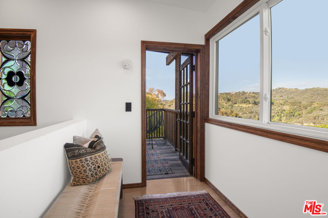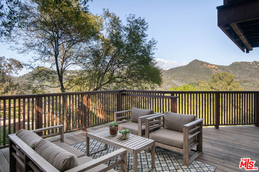Eagle's Nest is a quintessential Topanga retreat, where vintage charm meets thoughtful modern updates. Nestled in the coveted Fernwood enclave known for its ideal microclimate, this enchanting property captures some of the most breathtaking views Topanga Canyon has to offer.This recently remodeled three-bedroom, three-bath home seamlessly blends contemporary upgrades with the timeless character of the original cabin. The living room is the heart of the home, featuring expansive views, a stunning river rock fireplace, and wide-plank oak floors that bring warmth and texture throughout. The property also includes a detached approximately 600 sq. ft. guest house or studio with a generous view deck, along with a charming approximately 144 sq. ft. "baby" geodesic domeperfect for creative pursuits, play space, or a private retreat. Multiple terraces and expansive decks provide incredible vantage points for entertaining or simply soaking in the natural beauty. Embrace a more sustainable lifestyle with a screened in veggie beds, drought-tolerant landscaping, and majestic mature oak trees. Parking at street level and behind a gate. A rare Topanga gem with a proven Airbnb income history, this is canyon living at its finest.