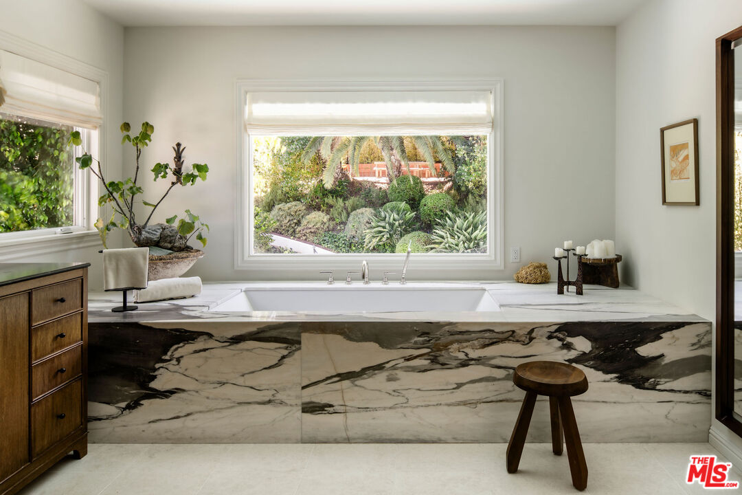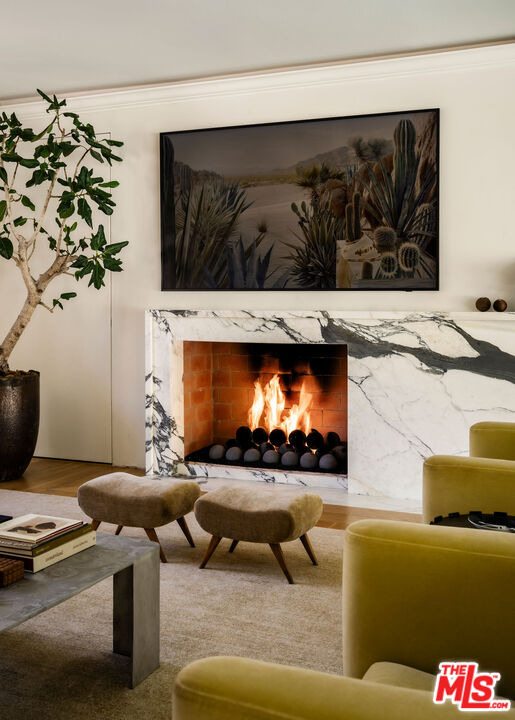 Welcome to 2003 El Cerrito Place, a beautifully reimagined 1938 residence nestled in the heart of Outpost Estates at the base of the Hollywood Hills. This timeless home seamlessly blends classic architectural charm with modern luxury, offering a thoughtful layout designed for both everyday living and elegant entertaining. Spanning approximately 4,207 square feet, the residence features expansive living spaces filled with natural light, rich textures, and sophisticated finishes. The grand living room with its striking marble fireplace flows into an inviting dining area, while the chef's kitchen is outfitted with premium appliances, a dedicated coffee pantry, pass-through window, and a custom temperature-controlled wine cellar ideal for hosting or effortless daily use.Generously sized bedrooms with custom-designed closets and six well-appointed bathrooms provide flexibility for guests, work-from-home needs, or multi-purpose living. French doors open to a private, resort-style backyard featuring a sparkling pool, outdoor kitchen with pizza oven, fire pit, and multiple patio areas framed by mature landscaping creating an ideal setting for relaxation, play, and gathering. Set on an approximately 11,355-square-foot lot, the property offers exceptional privacy while remaining moments from hiking trails, cultural landmarks, and the best of city living. The location also provides convenient access to a variety of highly regarded private schools and educational options nearby.A rare combination of historic character, modern comfort, and lifestyle-driven design, 2003 El Cerrito Place is an exceptional offering in one of Los Angeles' most sought-after neighborhoods.