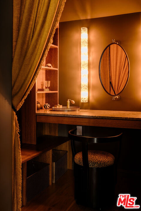 Welcome to this exquisitely reimagined 1938 residence, a timeless retreat nestled in the heart of Outpost Estates at the base of the Hollywood Hills. This designer-done estate masterfully blends Old Hollywood glamour with modern sophistication, offering a rare fusion of architectural integrity and contemporary luxury. Behind its romantic, historic faade lies a fully transformed interior, where no detail has been overlooked and no expense spared.The home unfolds across 4,207 square feet of refined living space, framed by natural textures and ultramodern finishes. A grand living room sets the tone with its striking Paonazzo Corchia marble fireplace, flowing seamlessly into an elegant dining area perfect for hosting. The chef's kitchen, with its own integrated coffee pantry, pass-through window and custom temperature-controlled wine cellar are ideal for curated entertaining.The spacious bedrooms all include custom designed closets, and with the six luxurious bathrooms, you're provided with flexibility for both family living and comfortable guest accommodations.A row of French doors open wide to reveal a resort-like backyard oasis, lushly landscaped and framed by mature palms and rose bushes. An outdoor kitchen with pizza oven, sparkling pool, fire pit, and expansive patios invite effortless indoor-outdoor living. Whether you're enjoying a quiet morning coffee or a lively evening under the stars, every corner of this estate feels like a curated escape.Additional highlights include the option to purchase the home fully furnished. With its mix of one of a kind vintage furniture, collectible contemporary, and bespoke pieces that are designed specifically to fit the space - It's a true turnkey opportunity. Set on an impressive 11,355-square-foot lot, the property offers a rare sense of privacy while remaining moments from the pulse of the city.A captivating expression of historic charm and modern elegance, this Outpost Estates gem is more than a home - it's a lifestyle.