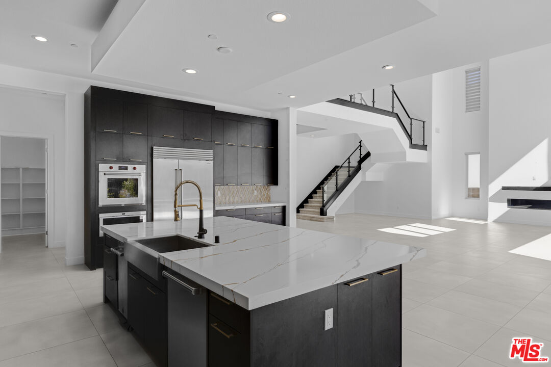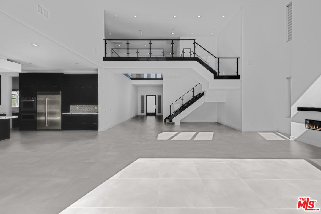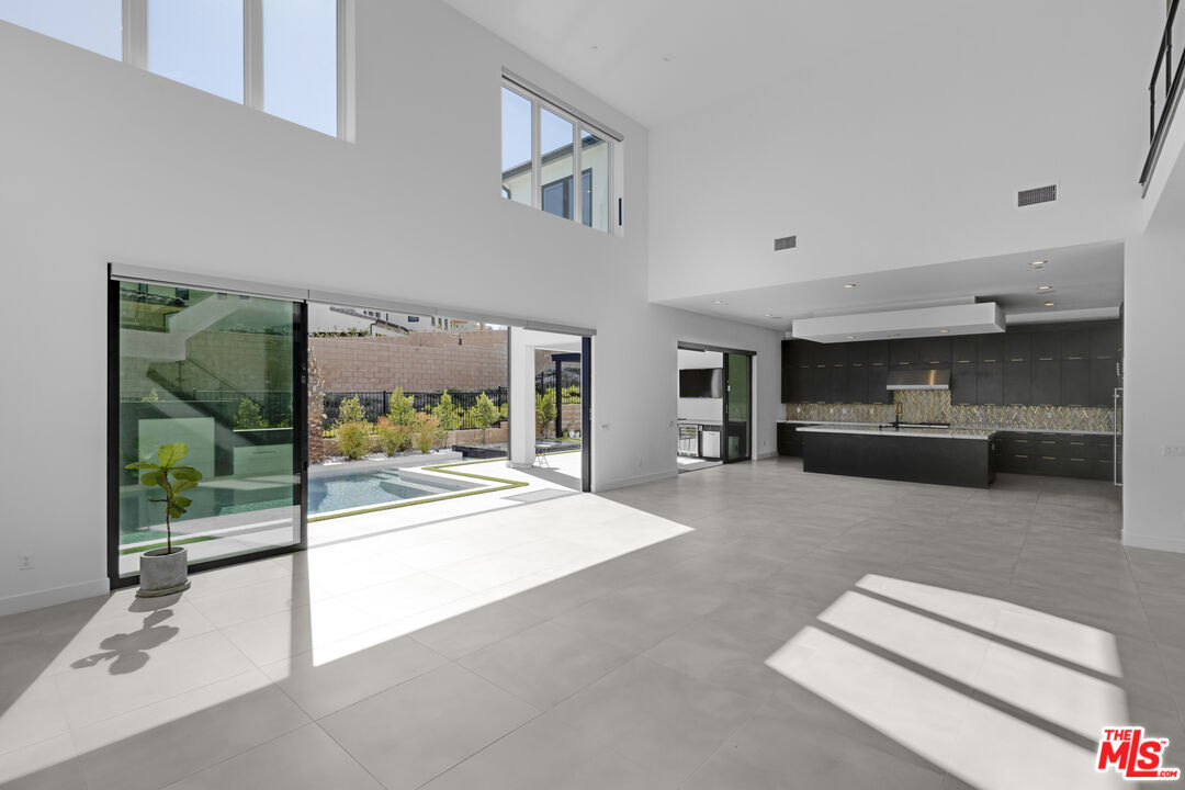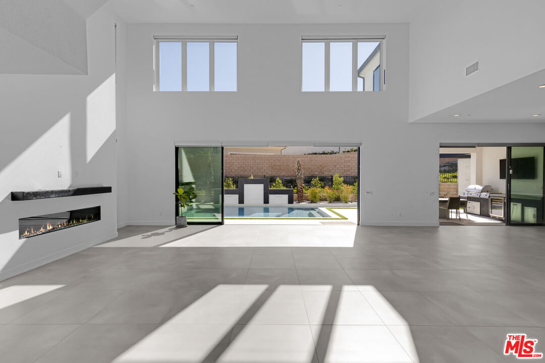 Ultra-Modern Two-Story Estate in Westcliffe, Porter Ranch. This extraordinary residence showcases the highly sought-after Santi floor plan from the prestigious Summit Collection in Porter Ranch's exclusive guard-gated Westcliffe community. Set on a private cul-de-sac and positioned on an oversized flat lot high in the hills, this spectacular estate offers luxury, privacy, and sophistication at every turn. This stunning open-concept home spans approximately 5,400 sq ft and features 5 bedrooms, 6 bathrooms, a spacious loft, flex space, and private office. What truly sets this estate apart is its unique location, expansive lot size, and incredible indoor-outdoor lifestyle. From the moment you enter, you're greeted by a majestic foyer with a dramatic glass staircase and exceptional designer finishes throughout. The home is filled with natural light, enhanced by expansive glass doors and oversized windows, showcasing the beautiful modern color palette and seamless flow. Highlights include stone tile flooring throughout the main level, an oversized great room with a striking 72-inch modern fireplace with color-changing crystals, and a showstopping chef's kitchen with a massive stone island, stone countertops, and top-of-the-line Sub-Zero and Wolf appliances. Elevating the living experience even further, the home is equipped with built-in speakers throughout for a seamless audio experience, electric window shades and owned solar panels.The luxurious primary suite is a true retreat, featuring a spacious sitting area, colossal walk-in closet, dressing area, and an exceptional spa-inspired designer bathroom. All four secondary bedrooms are ensuite, including one conveniently located on the first floor. Additional versatile spaces include an office/media room and fitness gym.Step outside to your own private resort. The spectacular backyard is designed for elevated entertaining and everyday enjoyment, complete with a luxury designer pool and jacuzzi, custom pergola creating the ultimate outdoor lounge..perfect for enjoying a movie under the stars or hosting unforgettable game nights in a resort-style setting, outdoor BBQ, large side area.. an expansive wraparound yard with ample space to relax, host, and enjoy the best of Southern California living. There is also generous parking space, adding to the home's rare functionality and appeal.Located in one of Porter Ranch's most affluent and sought-after communities, Westcliffe offers newly built luxury estates behind a guarded gate entrance. This prime location is just moments from The Vineyards at Porter Ranch, featuring Whole Foods, AMC luxury theater, Nordstrom Rack, fine dining, award-winning schools, and convenient access to the 118 freeway. Be sure to check out the virtual walkthrough video of this exceptional home.