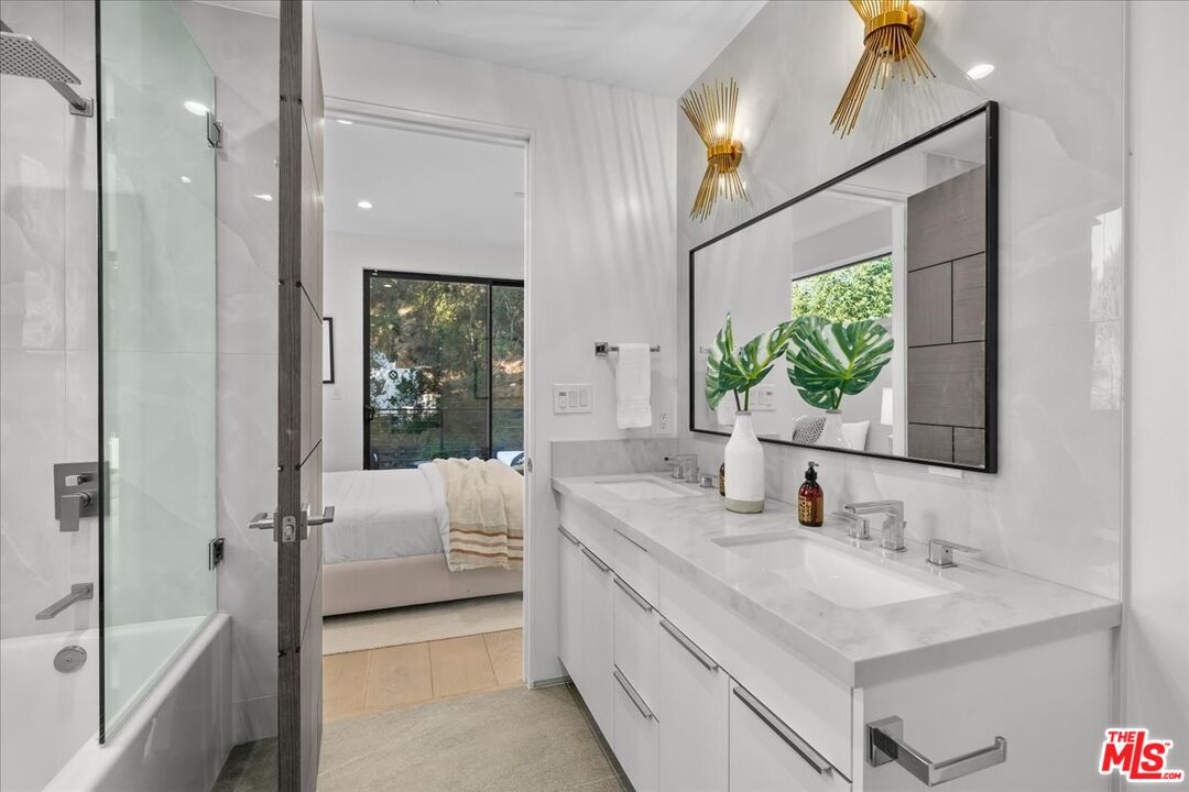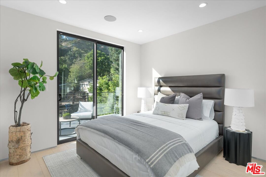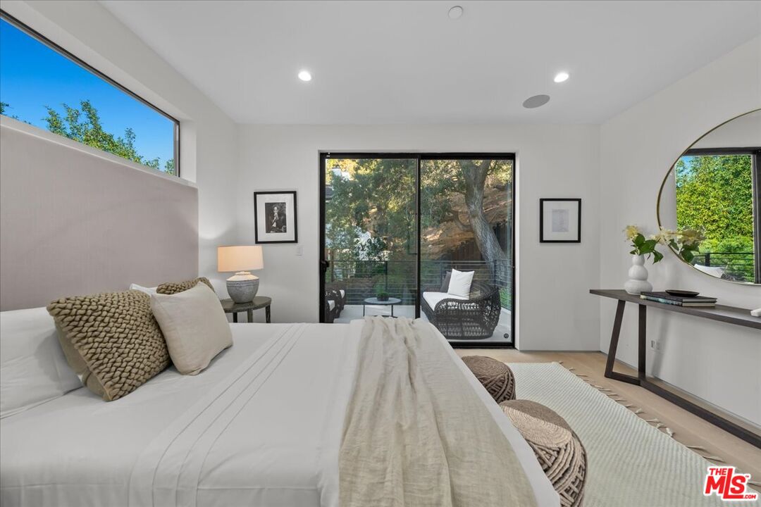 Located in the heart of Laurel Canyon, near coveted Wonderland Elementary school, this 3-bedroom, 4-bathroom contemporary residence was completely rebuilt in 2022 and offers a rare opportunity to own a turnkey modern home at an exceptional value in one of Los Angeles' most iconic hillside enclaves. The cozy home seamlessly blends privacy, design, and accessibility, within minutes from the Sunset Strip, West Hollywood, Hollywood studios, and with effortless access to the San Fernando Valley. A light-filled open floor plan is defined by soaring ceilings, wide-plank hardwood floors, and expansive walls of glass that create a seamless indoor-outdoor living experience. The main living spaces are both refined and inviting, anchored by a sleek fireplace and thoughtfully curated finishes throughout. The kitchen is designed for both elevated entertaining and everyday living, featuring premium stainless-steel appliances, custom cabinetry, quartz countertops, and a statement center island. Upstairs, two well-appointed bedroom suites open to private balconies with tranquil canyon vistas, while a flexible third bedroom on the entry level functions effortlessly as a guest suite, office, or creative space with direct access to the grounds. Surrounded by mature landscaping and a majestic oak tree, the outdoor spaces offer a true sense of retreat complete with a private patio and turfed yard ideal for al fresco dining and year-round enjoyment. Additional features include integrated smart home capabilities, a security system, a washer and dryer, and a detached one-car garage. Set within a storied neighborhood known for its artistic heritage and natural beauty, this residence offers proximity to locally loved Pace Restaurant, scenic hiking trails, and a sense of community all while remaining moments from the best of Los Angeles. A compelling offering that delivers modern finishes, lifestyle, and serenity in a highly sought-after location.