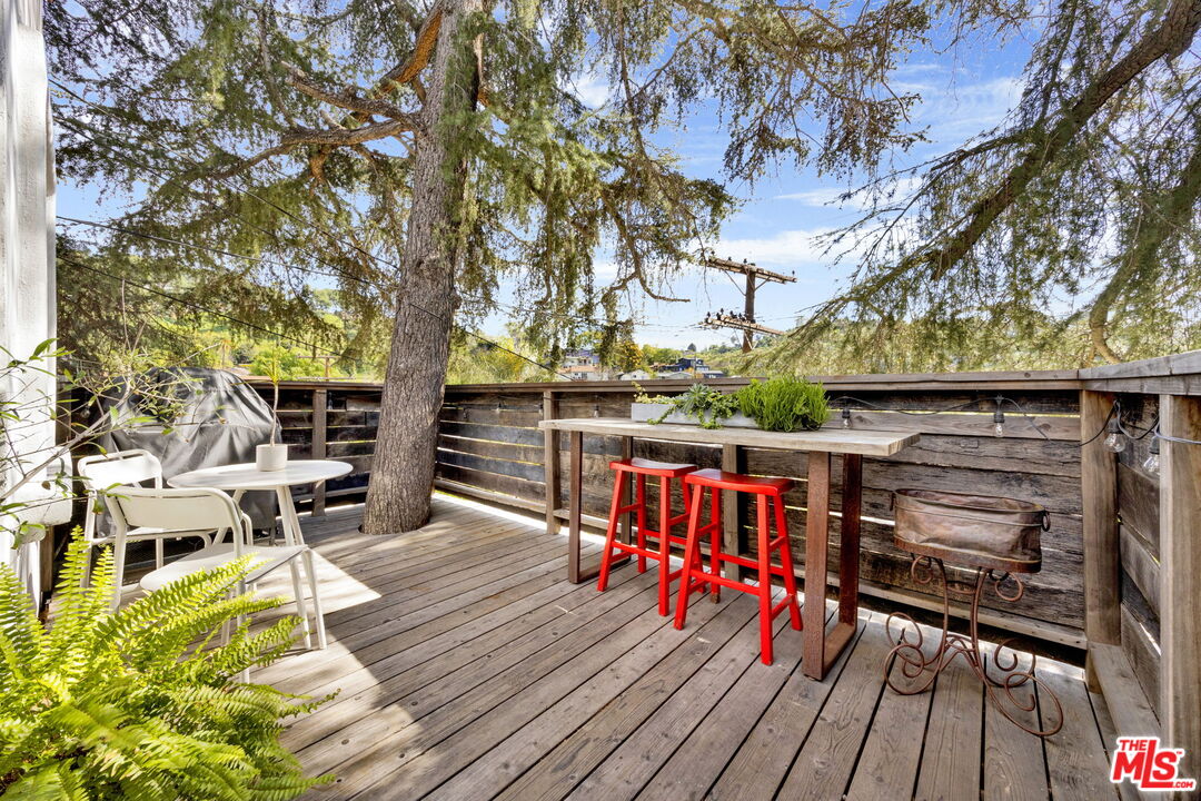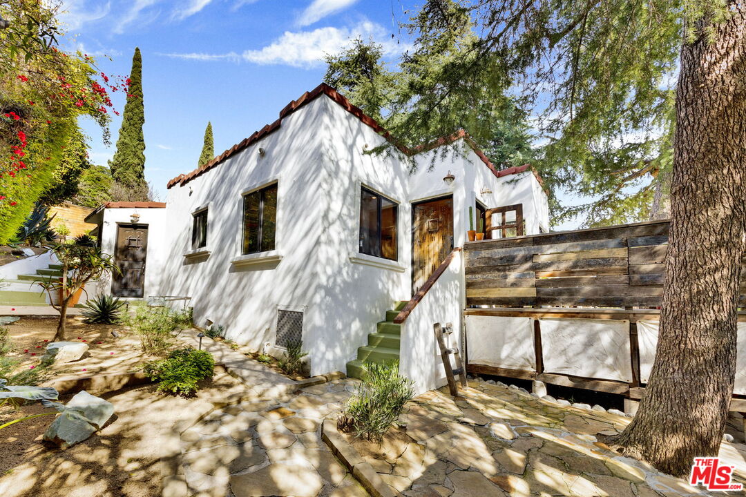 Escape to your own private sanctuary at 2021 Rome Street, a hidden gem in the heart of Glassell Park offering an unparalleled sense of privacy and a lifestyle defined by indoor-outdoor harmony. This meticulously maintained 2-bedroom, 2-bathroom residence is perfectly situated and walkable giving you the best of secluded living and urban convenience. Bathed in natural light that highlights gorgeous patina'd terracotta living room tile, the home features modern smart upgrades including lights on a wifi switch for effortless ambiance. The kitchen is a designer's dream with sleek concrete countertops and rustic shelving, while the stunning concrete bathroom with an overhead skylight and classic claw foot tub offers a spa-like retreat. The primary suite serves as a true cabin retreat designed for excellent airflow and peaceful ambient sounds, complemented by a remarkably versatile layout with a nursery or office space perfectly sized to accommodate a queen-sized bed. Experience a serene "treehouse" feeling on the front patio nestled within a large pine tree, the ideal spot for morning coffee or sunset wine. The crown jewel of this property is the expansive, tiered backyard featuring a fully functional fountain and a gardener's delight of mature, producing fruit trees including Lime, Blood Orange, Lemon, and Orange. Confidence comes standard with this move-in ready listing as the sellers have proactively handled major maintenance, including a brand-new front retaining wall, newly redone front steps, a brand-new back fence, a new rear wall, and professional remediation of past root intrusion with excellent drainage. This impeccably cared-for interior and its versatile outdoor spaces are ready for their next chapter.