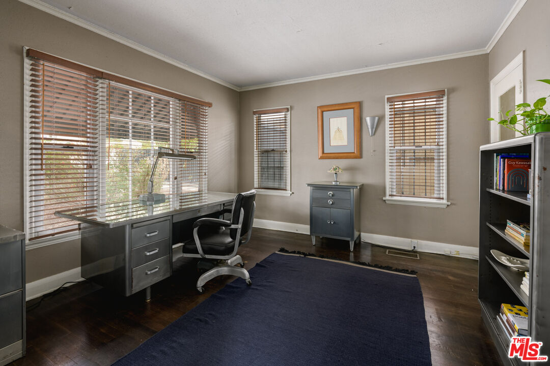 Nestled on a serene, tree-canopied street just south of Los Feliz Boulevard, this 1920s Spanish gem radiates soulful elegance and timeless warmth. Beyond its charming facade, this 3 BD, 2 BA haven unveils original hardwood floors, sun-drenched rooms, and delicate period details that whisper stories of a bygone era. The generous living room, centered around a decorative fireplace, flows effortlessly into a formal dining and reading nook perfect for cozy evenings or lively gatherings. A bright, airy kitchen with ample workspace flows into a picturesque breakfast room. Outside is a sprawling, flat backyard - a canvas for poolside dreams or future expansion, basking in the glow of Los Angeles' golden light. Spacious bedrooms, plus a versatile bonus space with its own entrance, offer endless possibilities: a home office, artist's retreat, or cozy den all wrapped in the home's inviting embrace. From the back bedroom, catch glimpses of Downtown's skyline, paired with a rare, open serenity throughout. A detached 2-car garage and abundant driveway parking seal the deal. Steps from the vibrant pulse of Los Feliz Village, Griffith Park's trails, and the city's finest haunts All Time, Figaro Bistro, Maru this home is a love letter to classic Los Feliz living, brimming with light, space, and enduring allure.