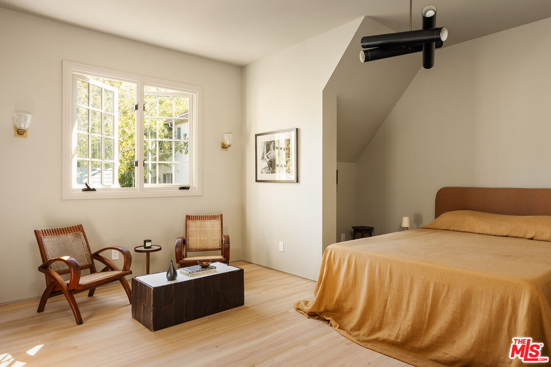 Set behind the private gates of Laughlin Park, one of Los Feliz's most coveted enclaves, this elegantly reimagined residence offers a timeless blend of artful craftsmanship and thoughtful design. Spanning over 4,600 square feet across a main house and guest house, the property has a masterful layout where each space flows effortlessly into the next, marked by warmth, intention, and ease. Inside, richly layered interiors reveal natural stone flooring, accordion-style doors, and curated finishes that speak to understated luxury. Oversized windows bathe the home in natural light, illuminating expansive yet inviting living spaces. The chef's kitchen features custom cabinetry, marble countertops, and top-tier appliances, offering both style and function. Upstairs, the formal living room, anchored by a stately fireplace and dramatic beamed ceiling, sets the tone for elegant entertaining. The primary suite serves as a private retreat serene, spacious, and refined with a large walk-in closet and dressing area, balancing the home's original character with modern comfort. Step outside to a private sanctuary. High hedges and layered landscaping create a tranquil backdrop for the glistening pool, with a seamless connection to the exceptional guest house. Just moments from Griffith Park and the vibrant eateries and shops of Los Feliz, this architectural gem offers a rare combination of sophistication, privacy, and authenticity in one of L.A.'s most desirable neighborhoods.