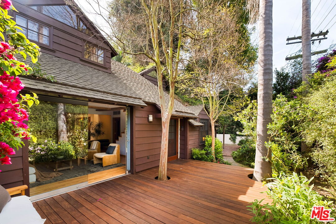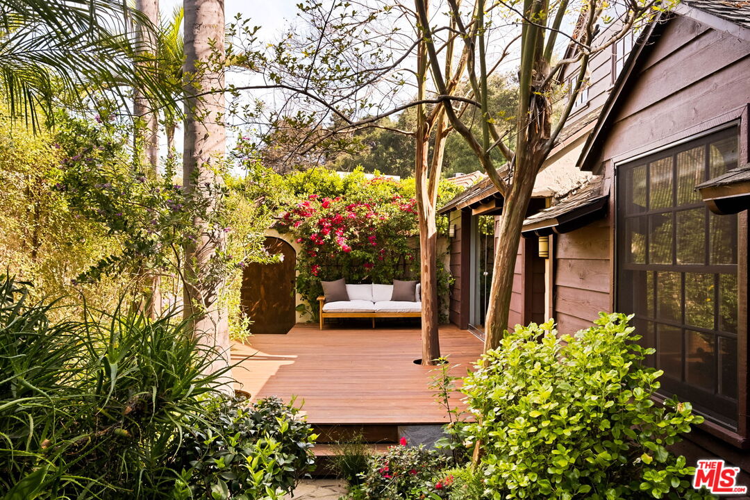 Tucked away in the serene hills of Beverly Hills, 2030 Benedict Canyon is a rare cottage-style retreat that feels worlds away from the city, yet minutes from everything. This one-of-a-kind residence blends timeless charm with thoughtful design, featuring soaring vaulted ceilings, custom built-ins, and an abundance of natural light pouring in through beautifully placed skylights. Every space in the home is warm, inviting, and rich with character creating a true sanctuary atmosphere. The architectural details and craftsmanship set this property apart, offering a unique alternative to traditional modern estates in the area. Surrounded by nature, the property offers three private outdoor deck areas perfect for entertaining or quiet relaxation, all set against a backdrop of lush greenery. A tranquil stream and pond further elevate the experience, creating a peaceful, storybook setting rarely found in Los Angeles. A hidden gem in one of the city's most iconic canyons, 2030 Benedict Canyon is ideal for those seeking charm, privacy, and a lifestyle that feels like a retreat without ever leaving the city.