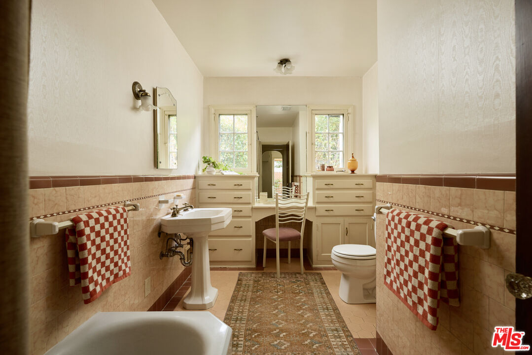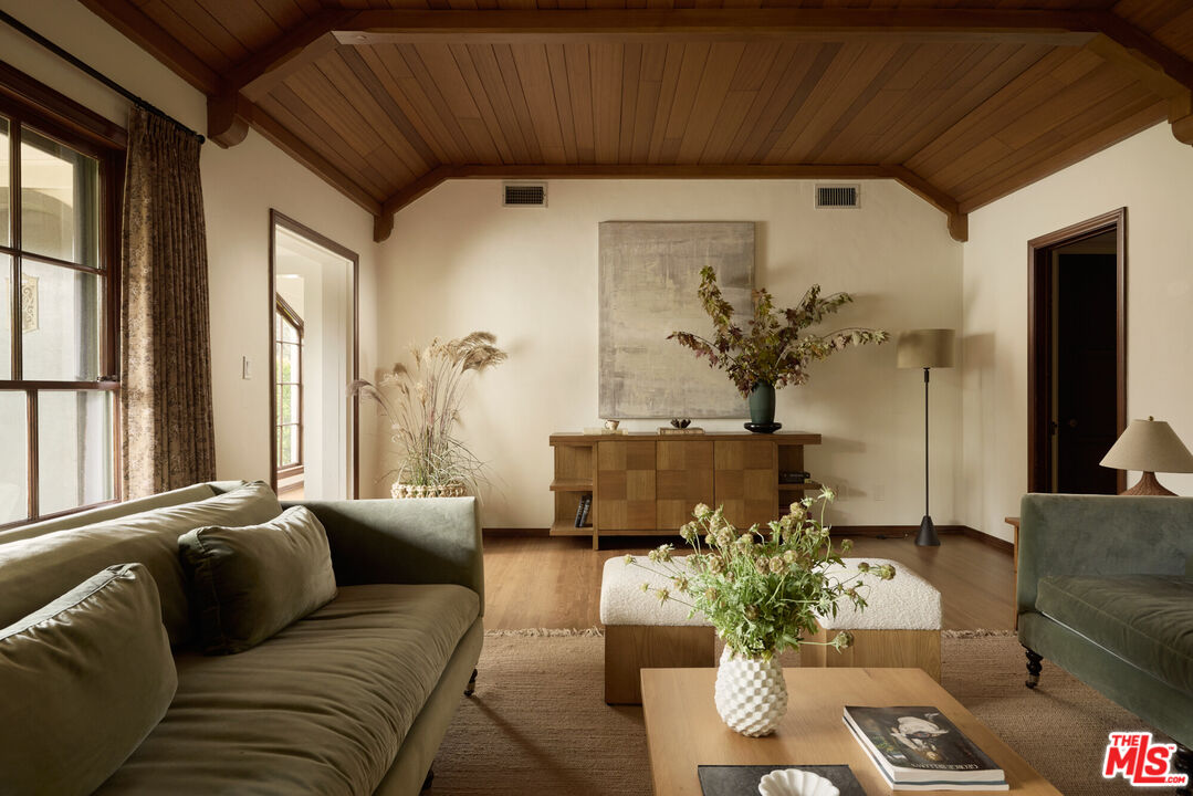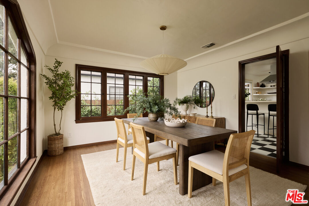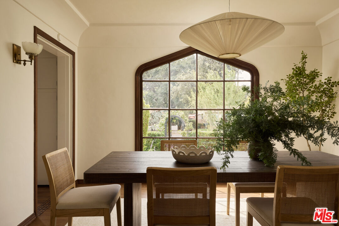 Description: Set behind a classic picket fence and framed by lush landscaping, this 1932 English Tudor radiates timeless character. A brick walkway guides you to the entry, where the interiors reveal a spacious living room filled with natural light. Original architectural details shine here, including a striking wood-paneled ceiling, vintage windows, and a fireplace accented by period lighting. The dining room is anchored by a dramatic arched window and connects to the eat-in kitchen with breakfast bar. Upstairs, a versatile bonus room offers the perfect retreat for work, play, or relaxation. The home provides three bedrooms and three bathrooms, two of which feature private en suite layouts. Outdoors, the whimsical grounds are designed for both beauty and leisure, with a pergola-shaded patio, a stone fountain, and mature fruit trees creating a serene setting. Completing the property is a detached garage draped in bougainvillea - ideal as a studio, office, or guest space. Recent updates include a new roof, HVAC, updated electrical, new insulation, tankless water heater, upgraded sewer line, electric car charger, and more. Adding to the home's character, a hidden wine cellar lies beneath the kitchen, completing this rare 2,000+ sq ft offering in Pasadena's cultural heart. Show all description