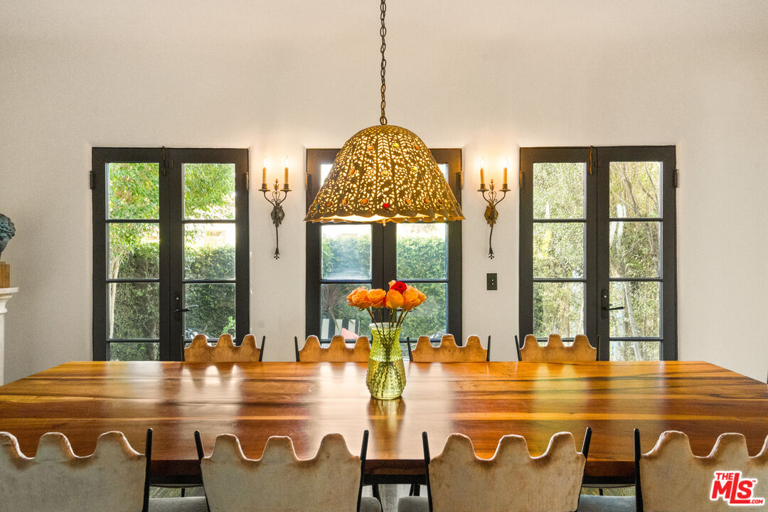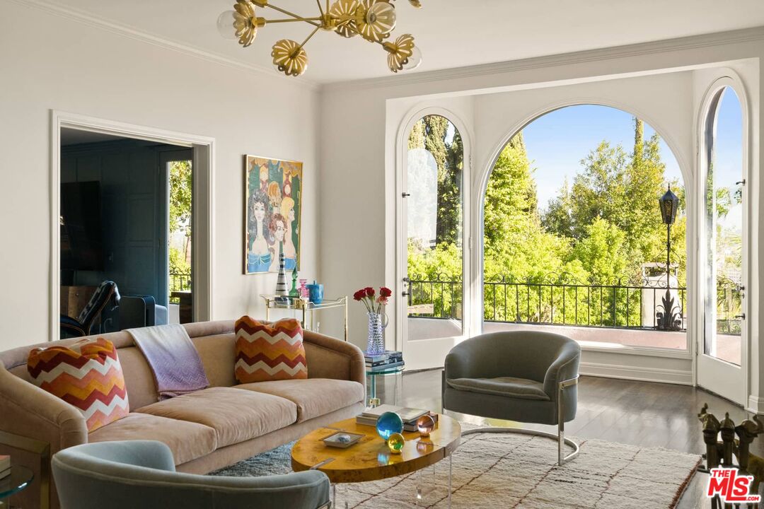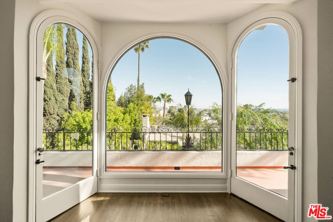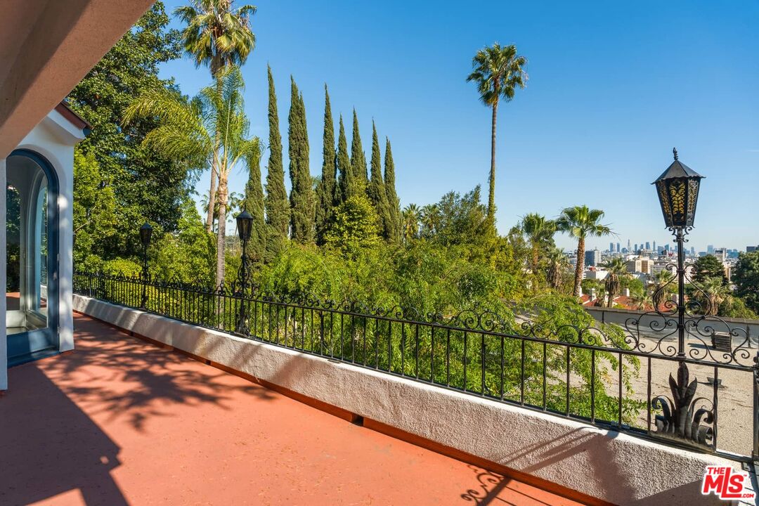 Presenting 2041 Grace Ave, the gem of Hollywood Hills' iconic enclave of Whitley Heights. Built in 1922 by H. L. Wilson, this expansive Mediterranean style estate captures all the glamour and romance of vintage Hollywood. Situated high above the city on an extremely rare double lot teeming with fruit, elm and magnolia trees, this historic home is an entertainers dream boasting impressive outdoor spaces, spacious rooms with high ceilings, breathtaking views of Los Angeles, and walled and gated grounds for added privacy. The entry opens to a formal living room, captivating upon arrival and drawing one outward to panoramic city skyline views. Light moves gently throughout the day, settling into a soft, luminous dusk. Formal dining sits just beyond with French doors opening to a private garden with seating and firepit, creating an effortless indoor-outdoor flow. A true cook's kitchen, centered by an island offers ample cabinetry and a quaint breakfast nook with built-in banquet. A generous den/media room and a dedicated office open to a terrace with perfect flow to the grounds with pool, spa and meditation alcove. Up a classic turret staircase, the upper floor reveals a dreamy primary suite with decorative fireplace, overlooking the grounds and the city beyond with views that stretch from DTLA to the ocean. Two additional bedrooms and a full bath complete this level. A lower level offers added flexibility with a bonus room currently used as a home gym, a private guest suite with bath and separate entrance, plus generous storage. Spend your days lounging by the solar heated pool in a lush garden and your nights having drinks in your prohibition speakeasy bar. This is your Hollywood dream!