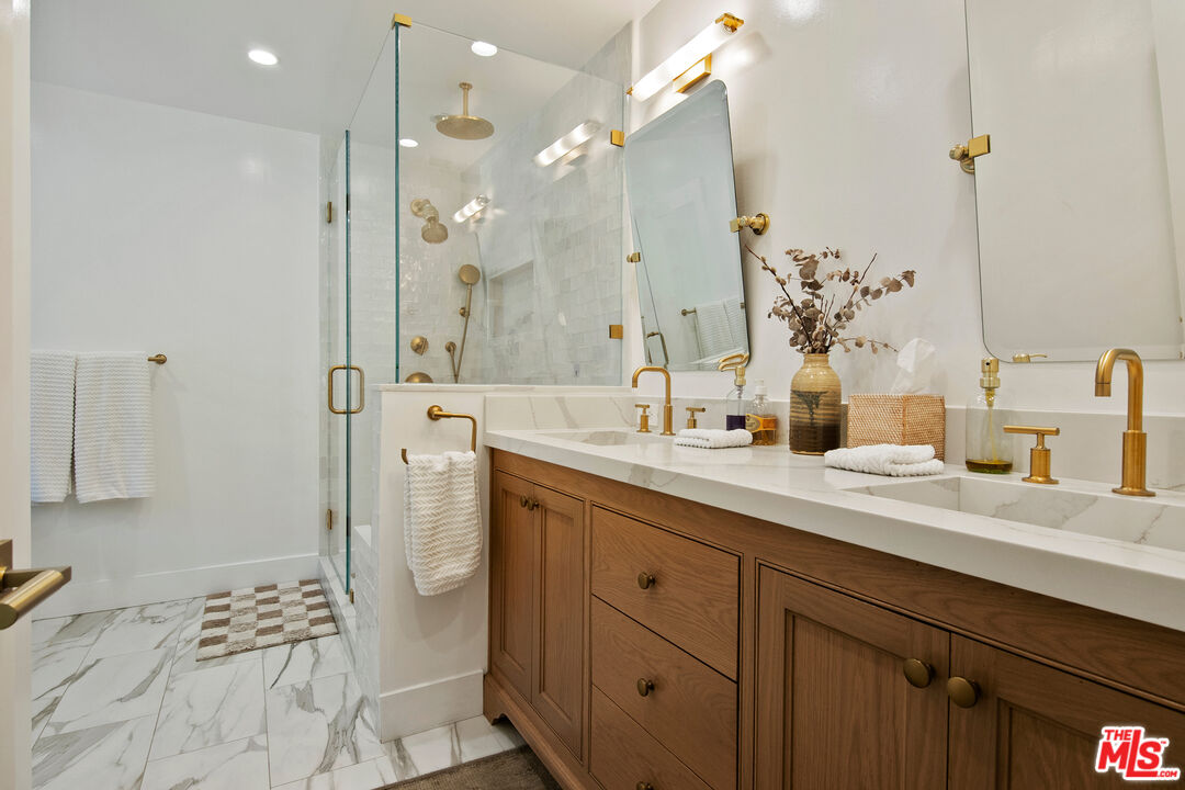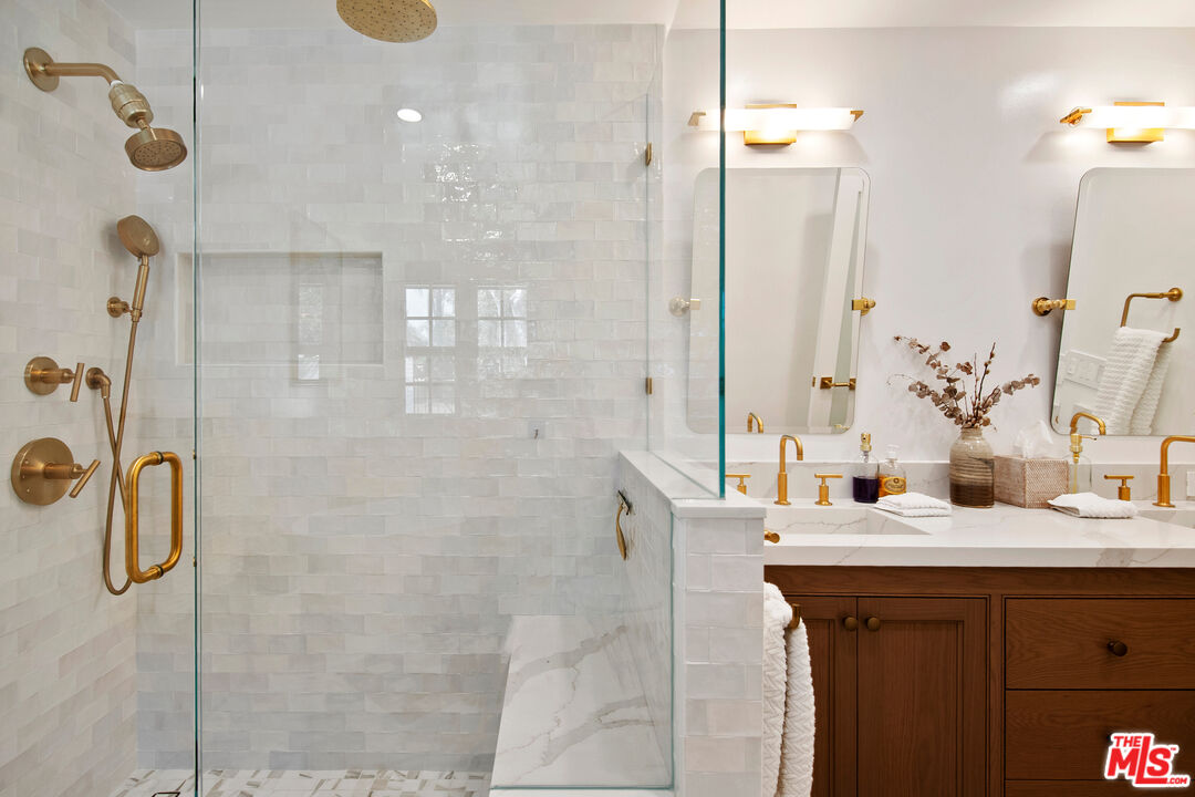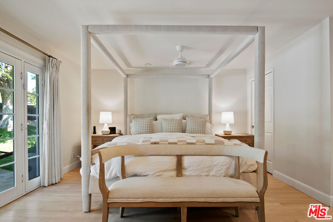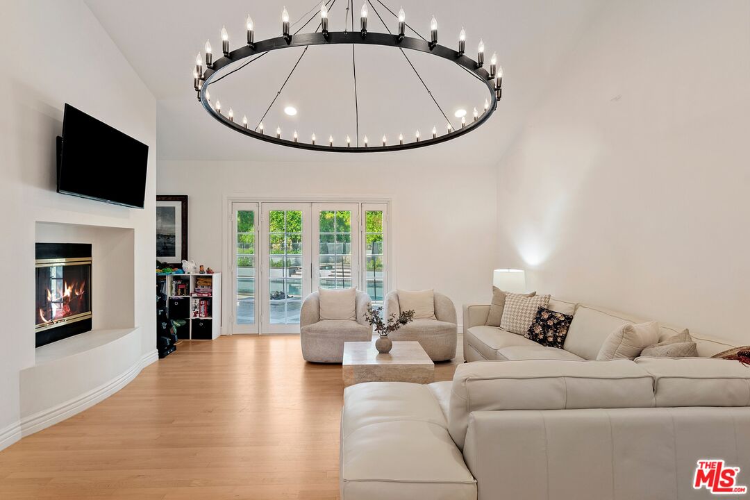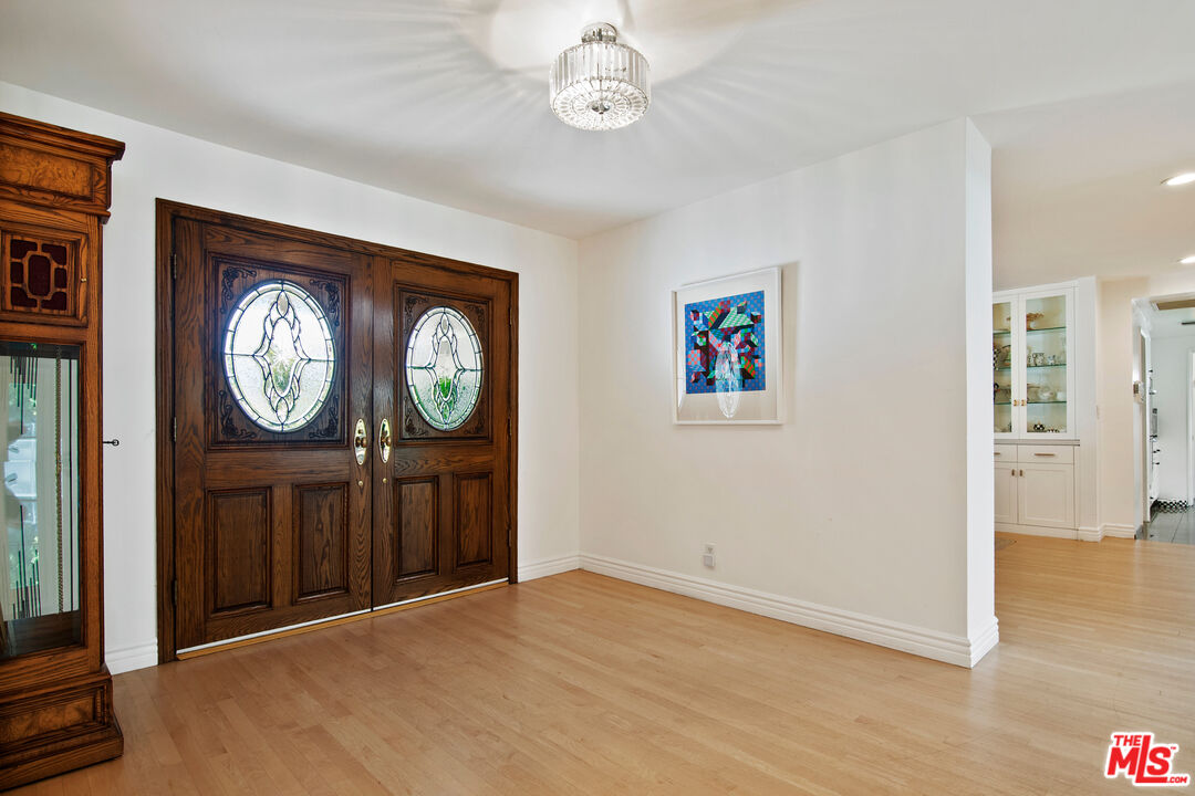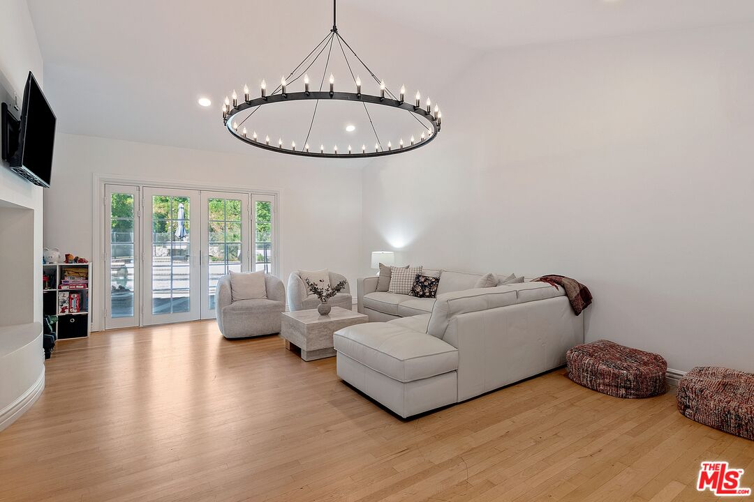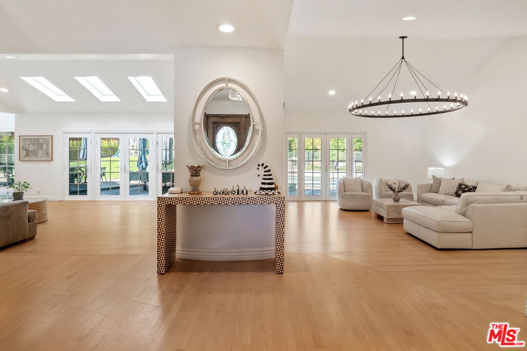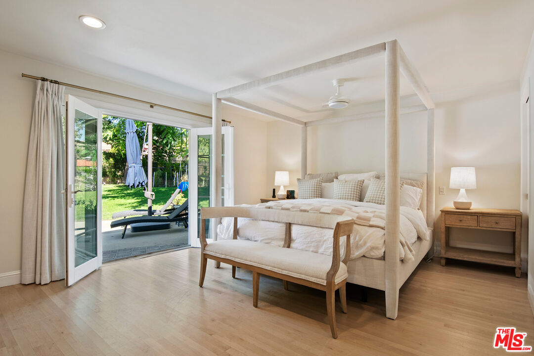 Welcome to this gorgeous single-story home on nearly half an acre, ideally situated on a corner lot in the highly sought-after Rancho de Caballeros community of Chatsworth. A true entertainer's dream, this 5 bedroom residence offers an incredible backyard retreat complete with a sparkling pool, spa, outdoor kitchen, and sport court. Step through double doors into a spacious entryway with light oak wood floors throughout and soaring ceilings that create an open, airy feel. The living spaces include a formal living room, elegant dining room with custom built-ins, and a family room featuring a double-sided fireplace and custom cabinetry with a wine fridge. The primary suite is a serene sanctuary with newer Milgard French doors leading to the backyard and a brand-new designer bathroom boasting ceramic tile, a freestanding tub, frameless glass shower with brass fixtures, and a double vanity. Three additional bedrooms are located down the hall, along with a beautifully renovated bathroom. On the opposite side of the home, the kitchen offers stainless steel appliances and a cozy breakfast area. A spacious laundry room and guest suite with pool access complete this thoughtfully designed layout.Located just a short walk to the community tennis courts, this home also enjoys proximity to premiere private schools including Sierra Canyon and Chaminade. Commuting is easy with quick access to the 118 Freeway and Topanga Canyon. The neighborhood is enriched by scenic open-space amenities explore the Santa Susana Pass State Historic Park, Chatsworth Trails Park, Stoney Point, Chatsworth Oaks Park, and nearby equestrian and hiking areas. This rare gem in Rancho de Caballeros delivers the lifestyle, location, and luxury you've been waiting for.