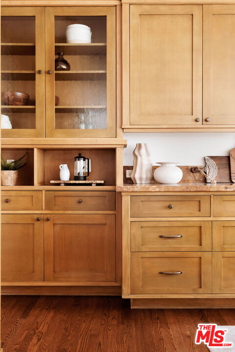A classic, beguiling, turn-key 1920s Country English positioned on a quiet, tree-lined street in South Pasadena. Spanning 2,200 square feet, the residence pairs preserved architectural detail and a rich sense of history with a floor plan that lives comfortably and easily today. Steps through the front garden lead to the domed entry portico, revealing a gracious formal parlor, a dining room suited for large gatherings, and views straight through to the sunny garden, deck, and pool beyond. The centerpiece of the main floor is an expansive open-concept island kitchen highlighted by professional series appliances, stone countertops, and abundant storage, extending seamlessly into the family room/Great Room and then directly into the private backyard. Two bedrooms with custom built-ins and generous closets, along with a period-style bath, complete the first floor. Upstairs, the primary suite offers a large walk-in closet and bath, plus a fourth bedroom and laundry. Anchored by a monumental old-growth native oak, the grounds present layered outdoor spaces including a vine-covered trellised dining pavilion, lap pool and spa, garden beds, and hardscape designed for gathering and play. A bonus space at the rear of the garage, complete with a 3/4 bath and accessed directly from the yard and pool, provides added flexibility and convenience. Located within the highly regarded South Pasadena Unified School District, including Marengo Elementary, and just moments from Alhambra Park and the shops and restaurants along Fair Oaks Avenue. A sensational package.