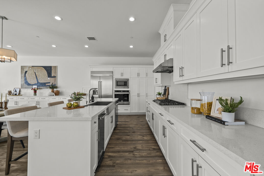 Welcome to luxury living in the prestigious gated community of the Peak Collection in The Canyons at Porter Ranch. This exceptional Toll Brothers residence is ideally situated in a community that showcases elegant Mediterranean-inspired architecture with sophisticated modern design. The thoughtfully designed open-concept floor plan offers expansive living spaces filled with natural light, soaring ceilings, and seamless indoor-outdoor flow ideal for both everyday living and entertaining. The chef's kitchen serves as the heart of the home, featuring a large center island, premium appliances, abundant cabinetry, and an inviting conservatory room that opens to the backyard for true California indoor-outdoor living. The luxurious primary suite provides a private retreat with a spa-inspired bath, dual vanity sinks, soaking tub, oversized walk-in shower, and a spacious walk-in closet. Additionally there is a downstairs bedroom & full bathroom that may offer flexible space for guests, or a home office. Step outside to a beautifully designed backyard perfect for relaxing or entertaining while enjoying the scenic hillside surroundings that make the Peak Collection one of Porter Ranch's most desirable enclaves.Residents enjoy access to resort-style amenities including a clubhouse, pool, parks, and miles of scenic trails, all just minutes from premier dining, shopping, and entertainment at The Vineyards at Porter Ranch. Experience elevated luxury living in one of Porter Ranch's most sought-after gated communities. No Mello Roos & Paid Solar.