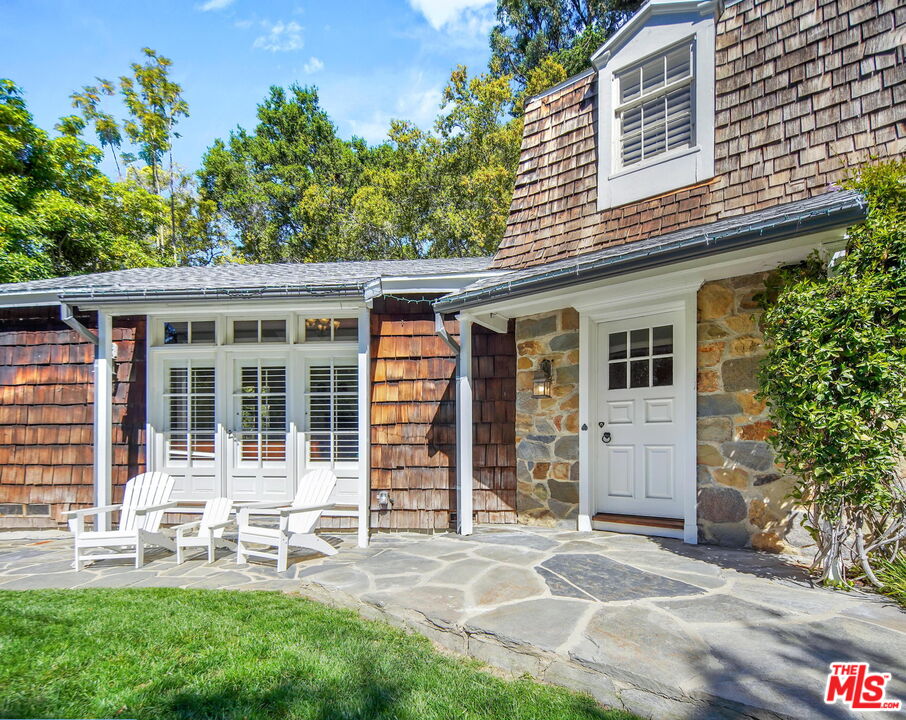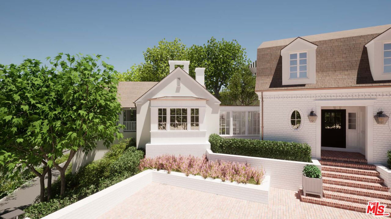 Nestled at the entrance to the ultra-exclusive Rivers Road in Brentwood, this rare John Byers Traditional Country Estate embodies timeless California charm on one of the neighborhood's most coveted gated corner parcels. Approached by a long private driveway, the property unfolds across more than 30,000 square feet of flat, horse-zoned land with majestic mature landscaping. Designed by legendary architect John Byers, the classic country farmhouse exudes warmth and understated elegance. Glorious natural light pours through every window,.The gracious living room with elegant fireplace sets the tone for intimate gatherings, while the gourmet chef's kitchen and adjacent dining area form the heart of the home. A separate guest studio with bath offers flexibility for visitors, a home office, or creative pursuits. Additional features include ample parking, a coveted horse zoning designation, and the extraordinary opportunity to either preserve and enjoy this architectural treasure as-is, expand the existing footprint, or build anew. RTI plans are nearly complete for a +/- 14,000 sqft. estate, with the added benefit of potentially re-addressing the property to prestigious Rivers Road where the gated driveway to the property is located.